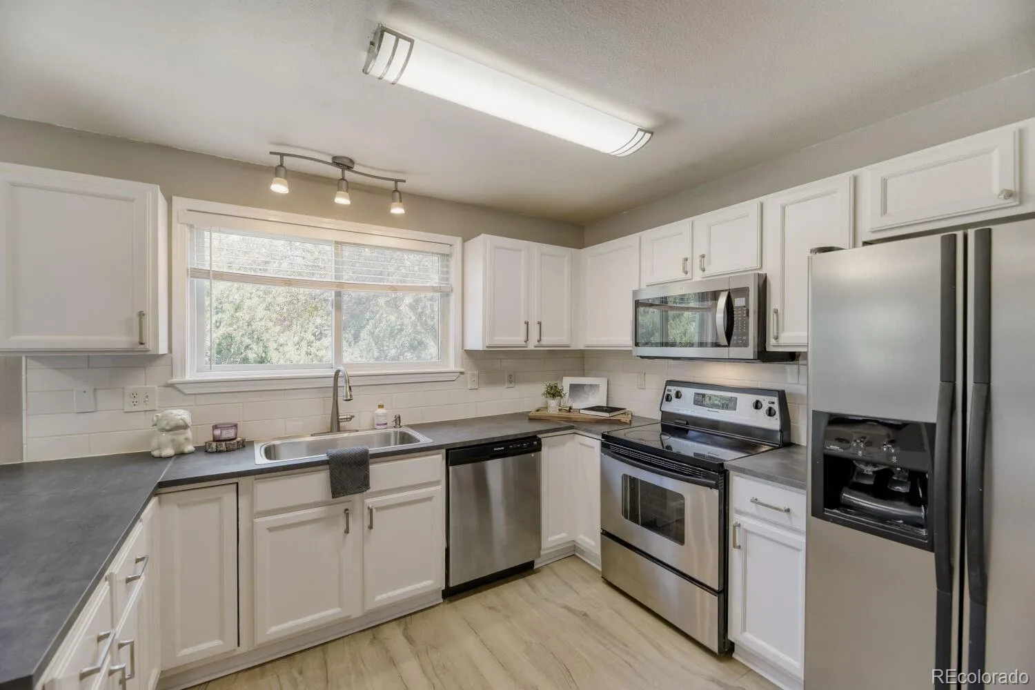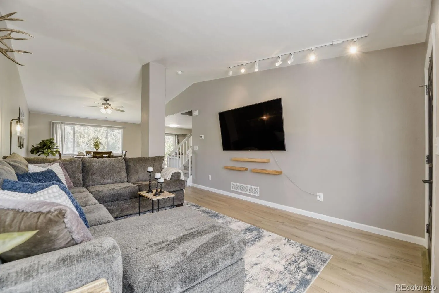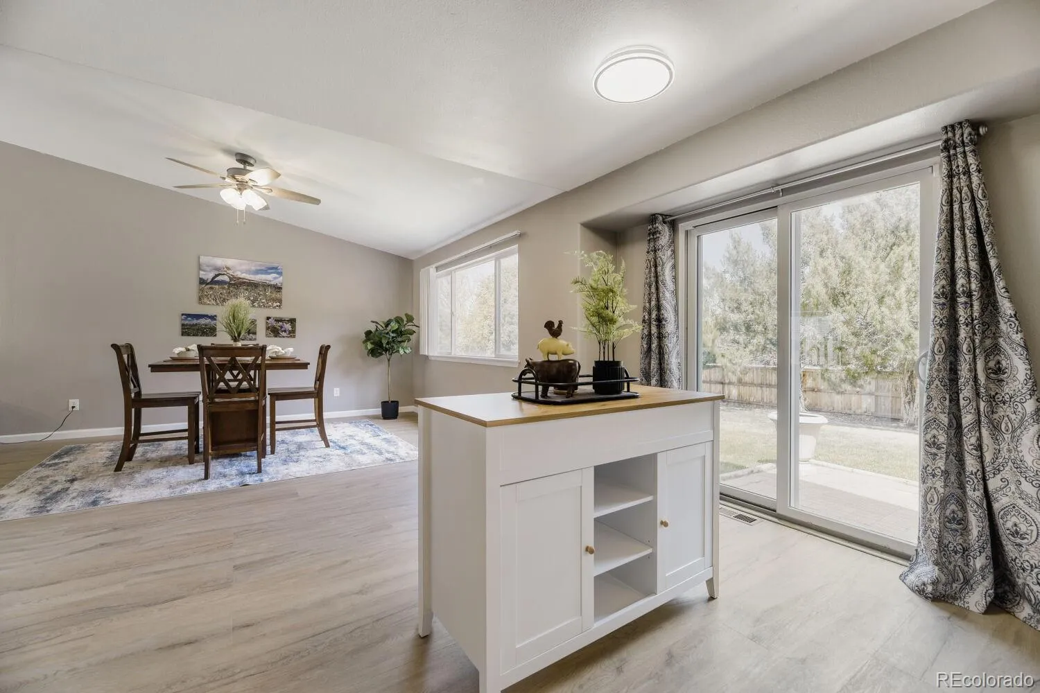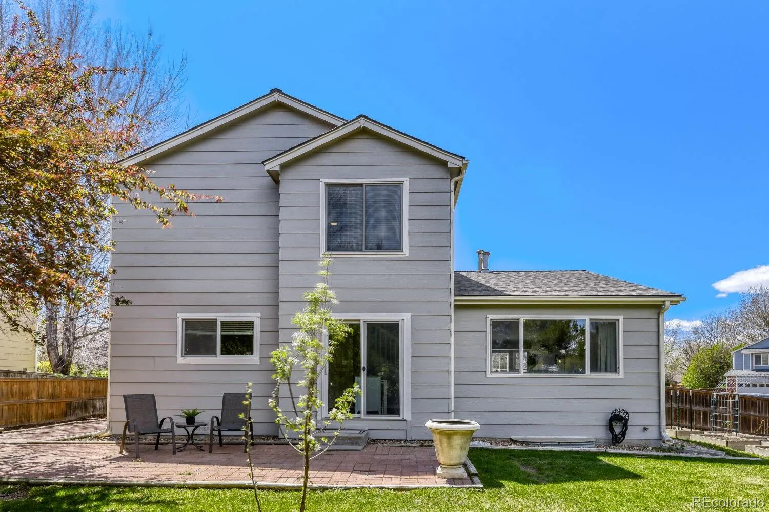 Tucked away on a quiet cul-de-sac, this charming home offers the perfect blend of modern style and cozy comfort. Soaring 13’ vaulted ceilings welcome you into a light-filled, open-concept layout that seamlessly connects the family room, dining area, and kitchen, ideal for both everyday living and entertaining. The spacious kitchen features an L-shaped island, abundant cabinetry, a full pantry, and a sunny breakfast nook, with easy access to the backyard through sliding glass doors. Upstairs, the inviting primary suite offers a peaceful retreat with a generous walk-in closet and full bath, accompanied by two additional bedrooms and another full bathroom. Luxury vinyl plank flooring and brand-new carpet flow throughout, adding a fresh, move-in-ready feel. The unfinished basement provides endless potential to customize to your needs. Step outside to your private outdoor oasis, complete with mature trees, a large brick paver patio, a spacious yard, and nine garden beds, perfect for relaxing or cultivating your own garden. Conveniently located just minutes from Parker Road, this home offers easy access to shopping, dining, and commuting.