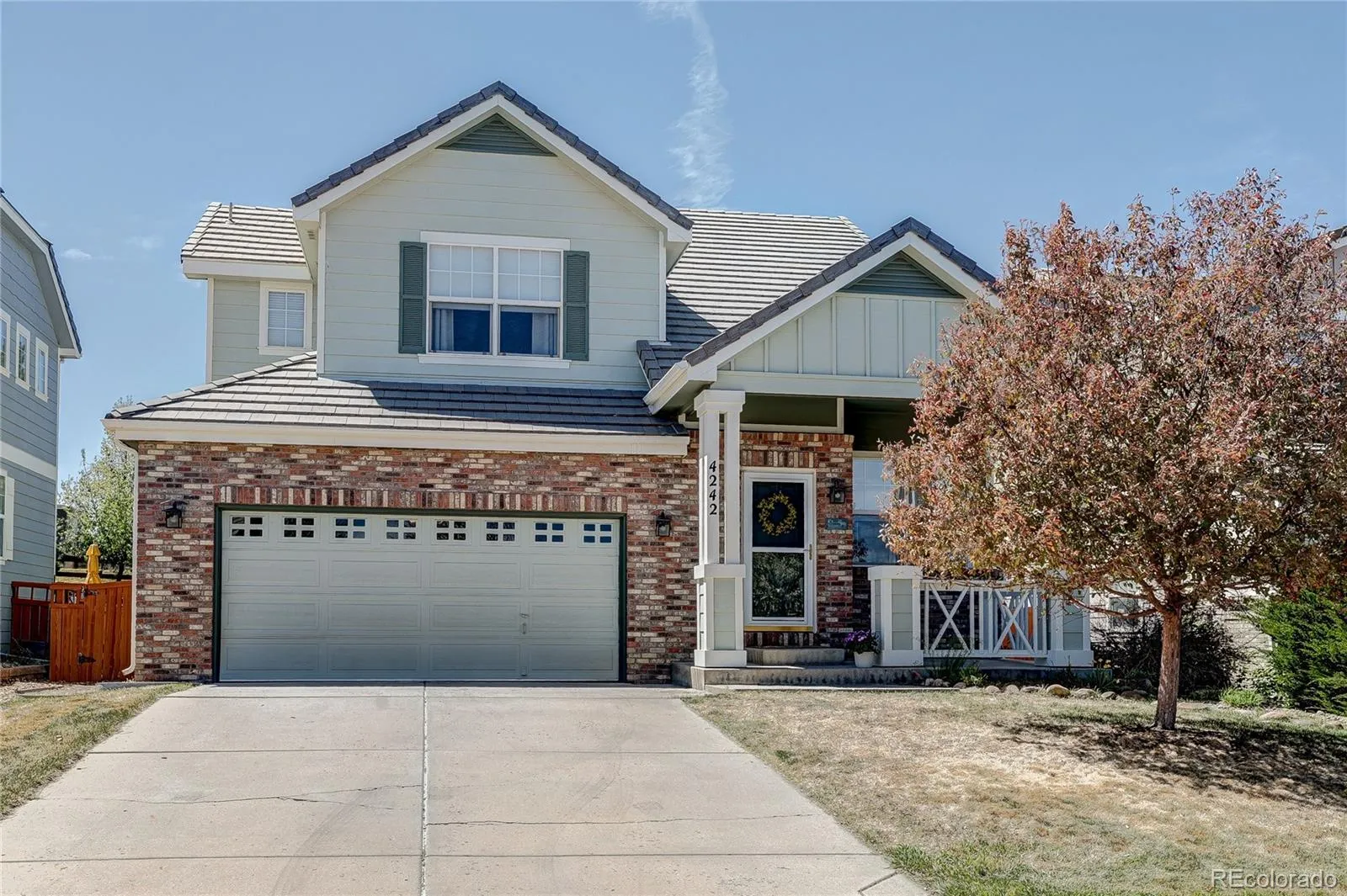 Pack your bike helmet and dinner reservations, because this charming Castle Rock gem puts everything you love right outside your door! Nestled in the highly sought-after Meadows community, this beautifully appointed home is tailor-made for the active, adventure-loving lifestyle you’ve been chasing. The solid frame and brick exterior with durable concrete tile roof means you’ll spend less time on maintenance and more time on the trails! Inside, new luxury vinyl plank flooring flows throughout, leading you into a sun-filled living room with soaring vaulted ceilings that open to an impressive upper loft — perfect for a cozy reading nook after a long ride on Ridgeline Trail. The kitchen shines with quartz countertops, crisp white tile backsplash, 42″ cabinets, and stainless-steel appliances — ideal for fueling up before hitting Red Hawk Ridge Golf Course or refueling after a concert night out! Gather around the gas log fireplace in the family room when the Colorado evenings cool down. Retreat upstairs to the spacious primary suite featuring a walk-in closet and a full en-suite bathroom with double vanity. The gorgeous tiered backyard with stone river and garden ledge is your personal oasis between adventures. The oversized 21’9″ x 20′ two-car garage easily fits bikes, paddleboards, golf bags — and still leaves room for your gear wall! The Meadows community delivers The Grange community center and pool just steps away, along with tennis and pickleball courts, parks, and miles of hiking and biking trails. Top-rated Douglas County schools, Paintbrush Park, AdventHealth Hospital, the Outlets at Castle Rock, local breweries, and fantastic restaurants round out this unbeatable location. Life’s too short to sit still — come live it here!