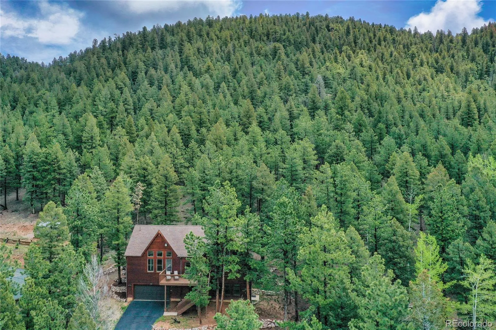 Welcome to “Forest’s Edge” — Where the Climb is Worth the View. Set high above the ordinary on 2.23 acres and backing directly to National Forest, this 3-bed, 3-bath mountain retreat offers privacy, presence, and a front-row seat to Colorado’s ever-changing beauty. As you make your way up the private, tree-lined drive, something subtle happens—the noise fades, the air feels a little crisper, and the views begin to open up. And then you arrive… to a newly expanded turnaround that makes coming and going easy, and a setting that simply wouldn’t be possible from below. Because up here, you don’t just live in the mountains—you see them. Homes tucked low can offer convenience… but they can’t offer this. Step inside and you’re welcomed by warm wood tones, an expansive living room anchored by a cozy stone-accented fireplace, and skylights that frame the forest like living artwork. Light filters through the aspens, dancing across the hardwood-look tile floors and creating a space that feels both grounded and alive. The heart of the home is a beautifully remodeled kitchen—designed for connection. Whether it’s slow mornings, shared meals, or a glass of wine that turns into a long conversation, this is where life happens. Out back, the experience continues. A private deck and hot tub invite you to soak under a canopy of stars, with nothing but the sounds of nature and the occasional visit from deer or elk. With National Forest as your backyard, your sense of space doesn’t stop at the property line—it expands. Inside, three spacious bedrooms, a thoughtfully updated layout, and a 2-car garage provide comfort and function, while outside, the land itself invites exploration, privacy, and room to breathe. This isn’t for everyone—and that’s exactly the point. For the buyer who understands that elevation brings perspective, that privacy is priceless, and that the best views are never at the bottom… Welcome home to Forest’s Edge.