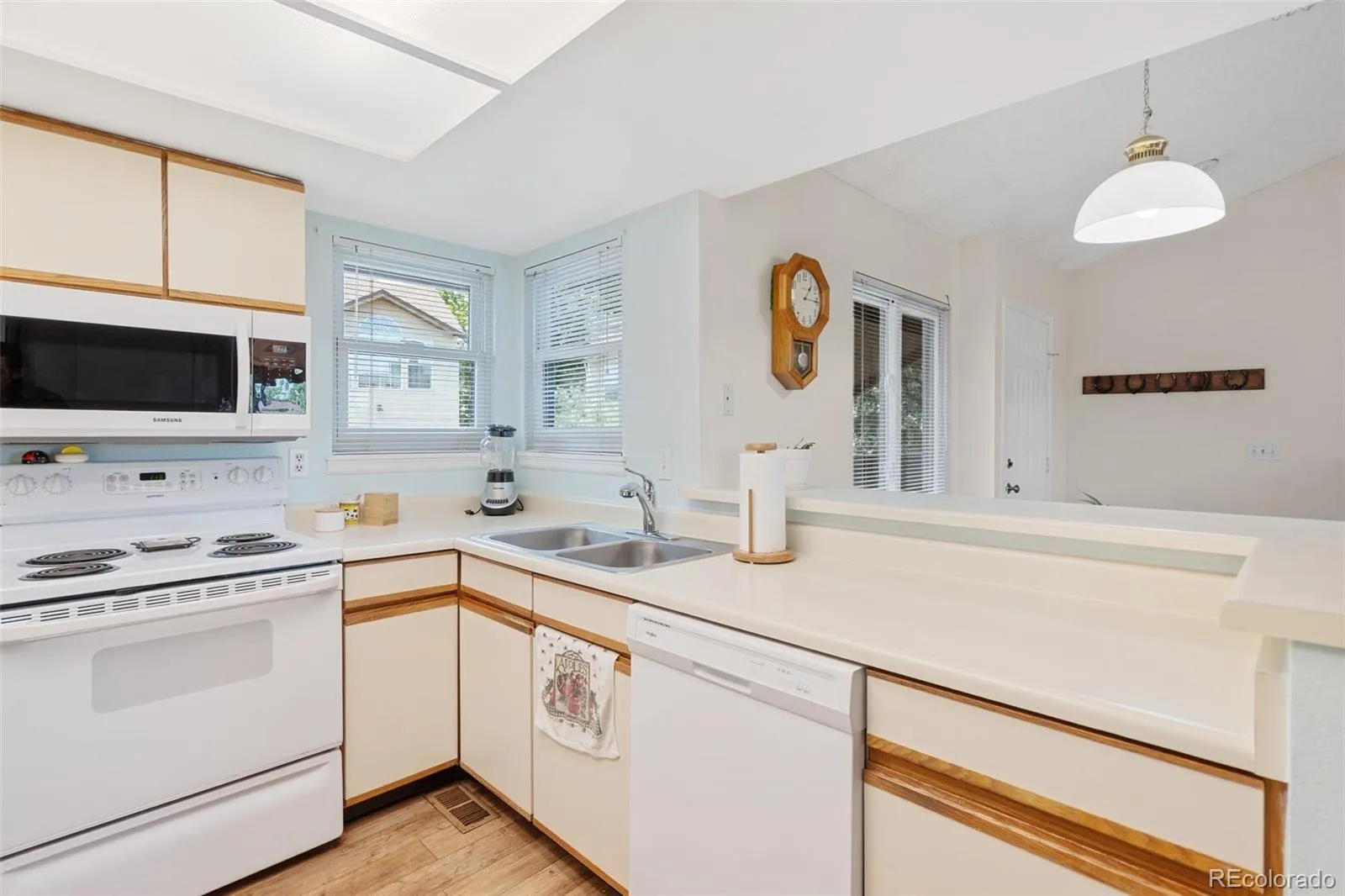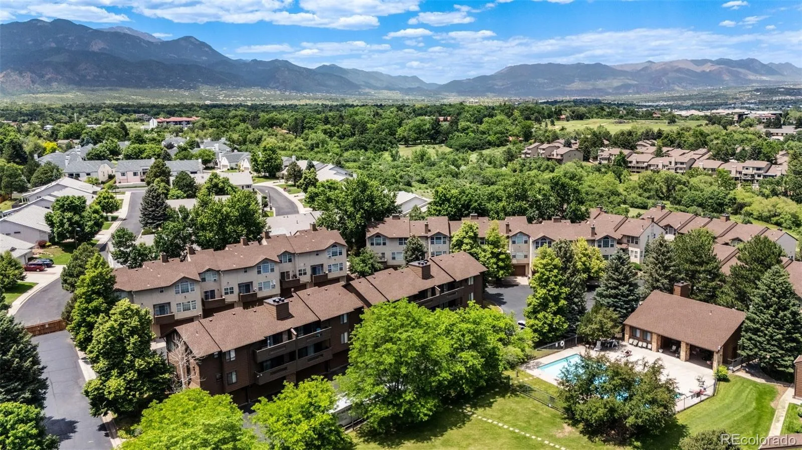 If you’ve been searching for a home that offers both a peaceful atmosphere & unbeatable access to Colorado Springs’ best recreation & amenities, this top-floor condo at The Broadmoorings is the perfect find. Tucked into a well maintained, quiet community, this residence offers sweeping views of the community pool & clubhouse from its elevated position in the treetops, & just beyond your doorstep, an abundance of activities awaits. Take a 5-minute stroll to Quail Lake to enjoy paddleboarding, fishing, walking trails, sand volleyball & basketball courts, all with the beauty of the Front Range as your backdrop. When it’s time to shop or dine, head over to the popular hubs along Cheyenne Mountain Blvd & Southgate Rd. For larger entertainment options, you’ll find World Arena, Cinemark Theater, The Broadmoor & Cheyenne Mountain Zoo all within a short drive. Commuters will love quick access to I-25 & local schools. Inside the condo, vaulted ceilings & large, energy-efficient, vinyl-clad wood Anderson windows fill the open-concept living/dining/kitchen areas with natural light & a bright, airy feel. The living room is highlighted by a cozy wood burning fireplace with decorative stone wall & built-in cabinets, adding warmth & charm to the space. The kitchen is especially