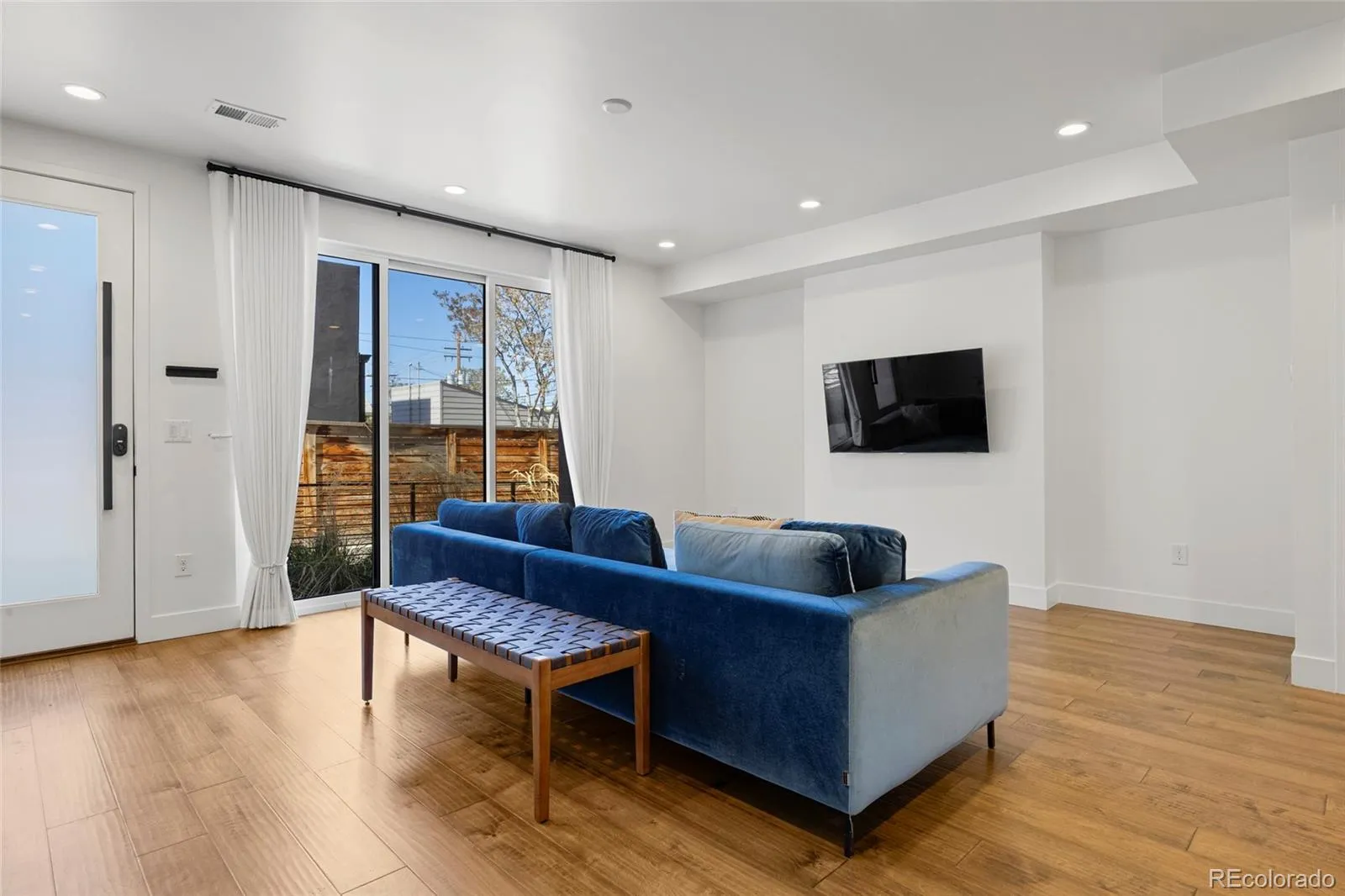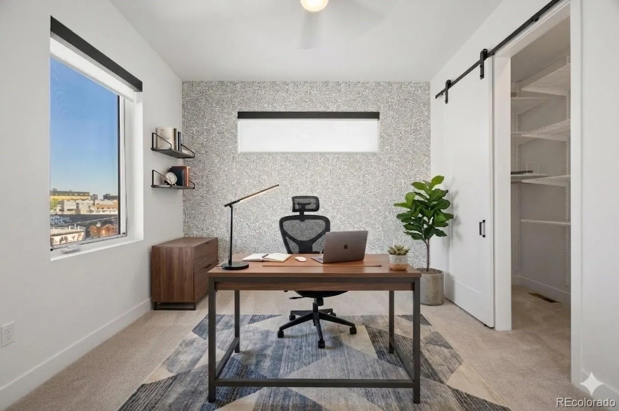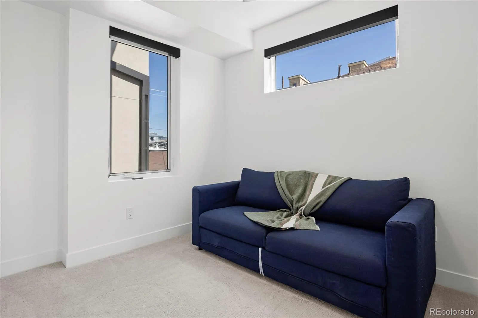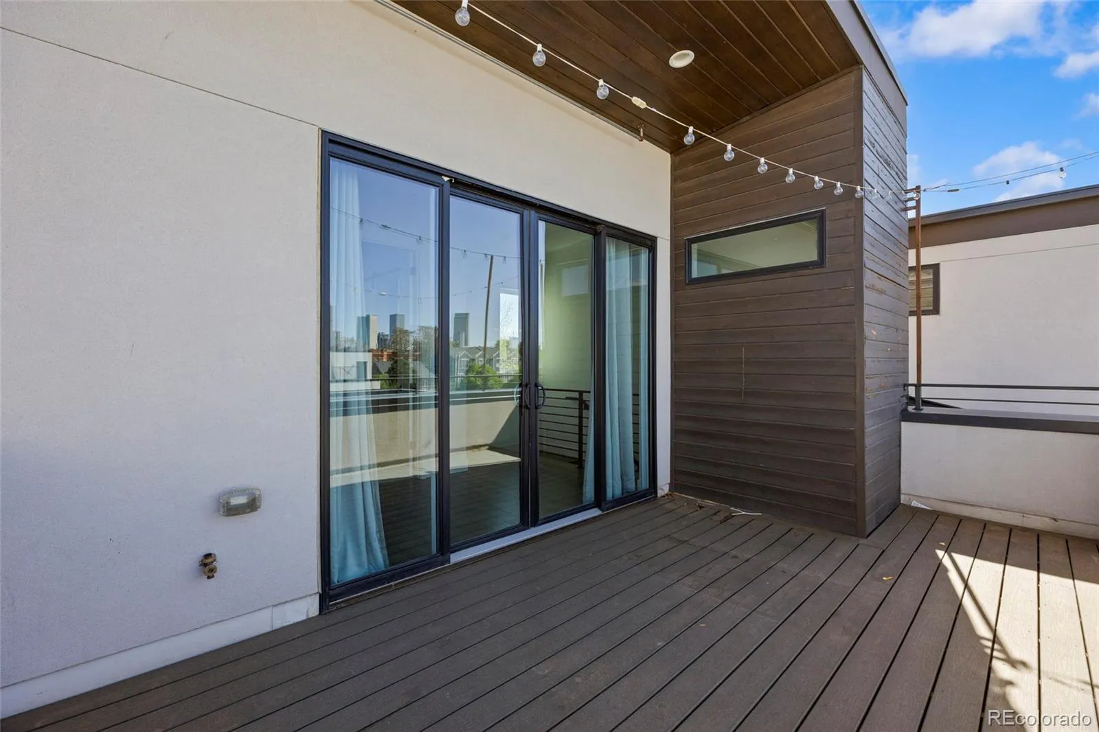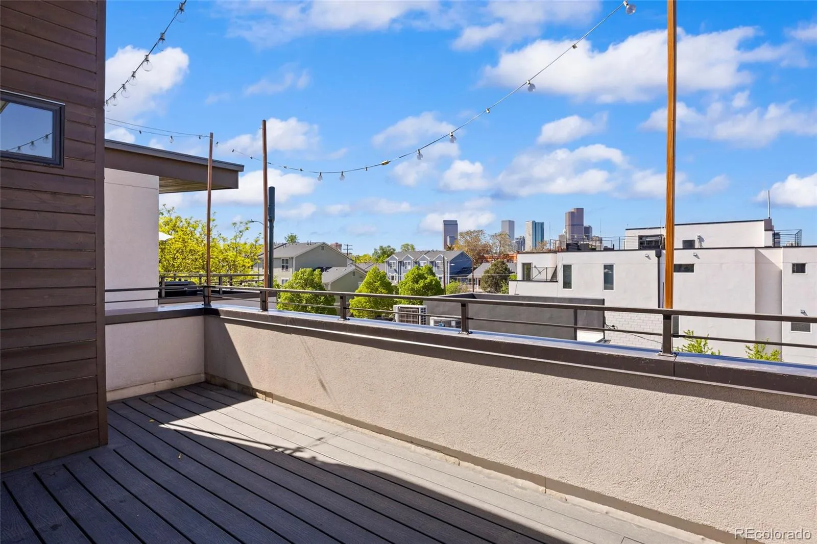 The third level offers exceptional versatility, highlighted by a spacious rooftop terrace with panoramic views of downtown Denver and the mountains. This level includes a flexible bedroom or office space, along with a convenient half bath—ideal for entertaining, working from home, or hosting overnight guests.
