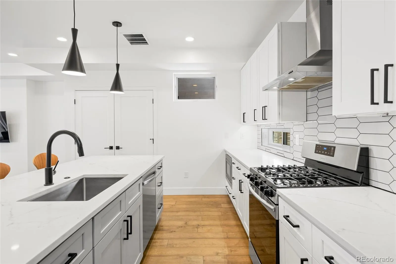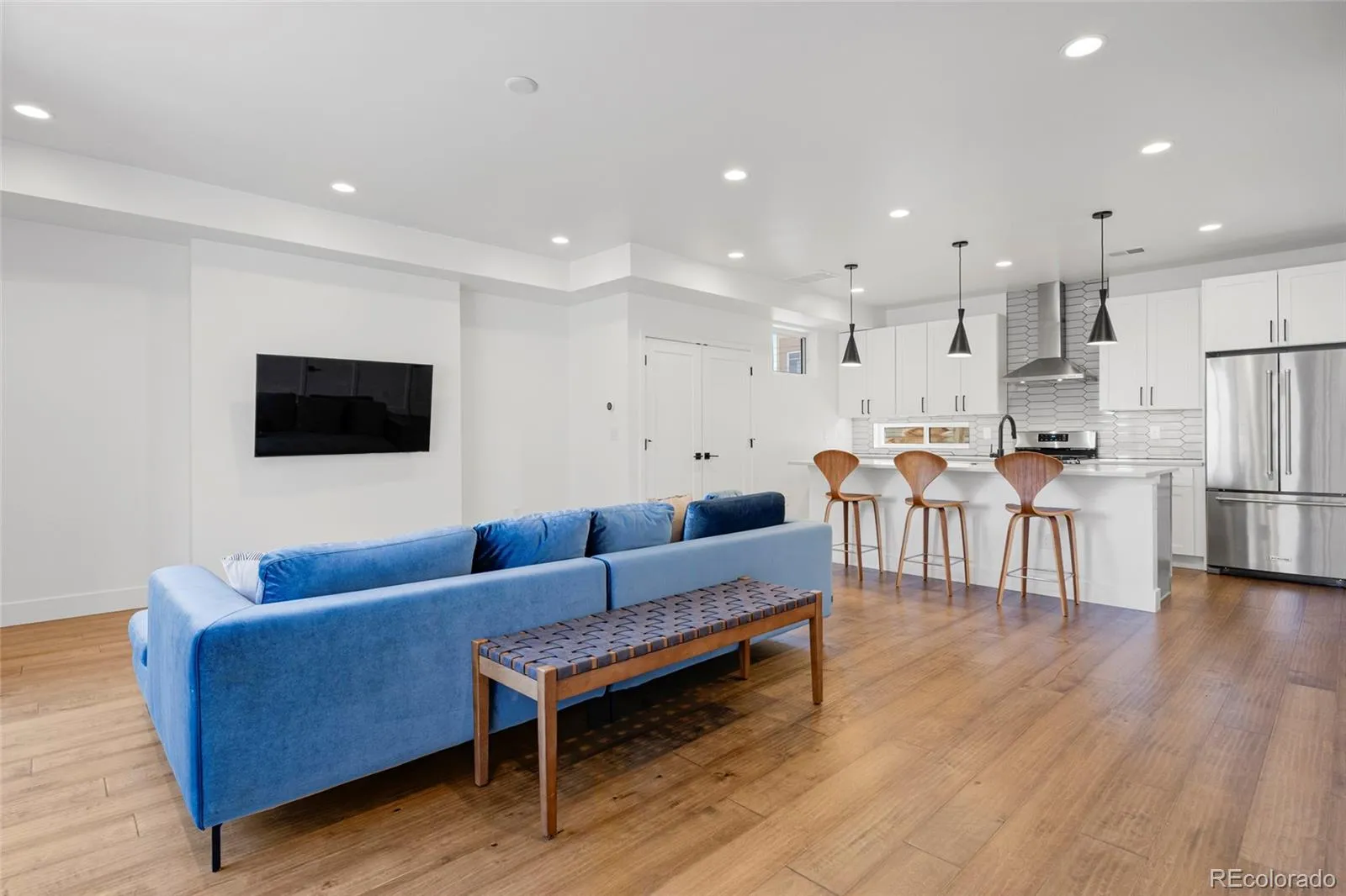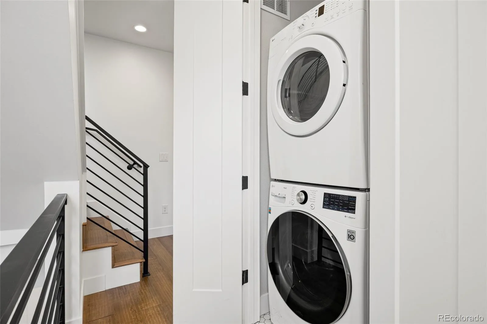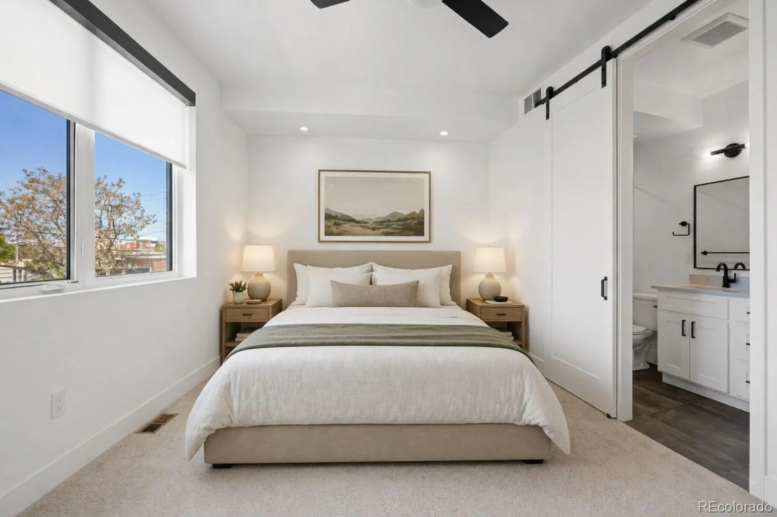 The third level offers exceptional versatility, highlighted by a spacious rooftop terrace with panoramic views of downtown Denver and the mountains. This level includes a flexible bedroom or office space, along with a convenient half bath—ideal for entertaining, working from home, or hosting overnight guests.
