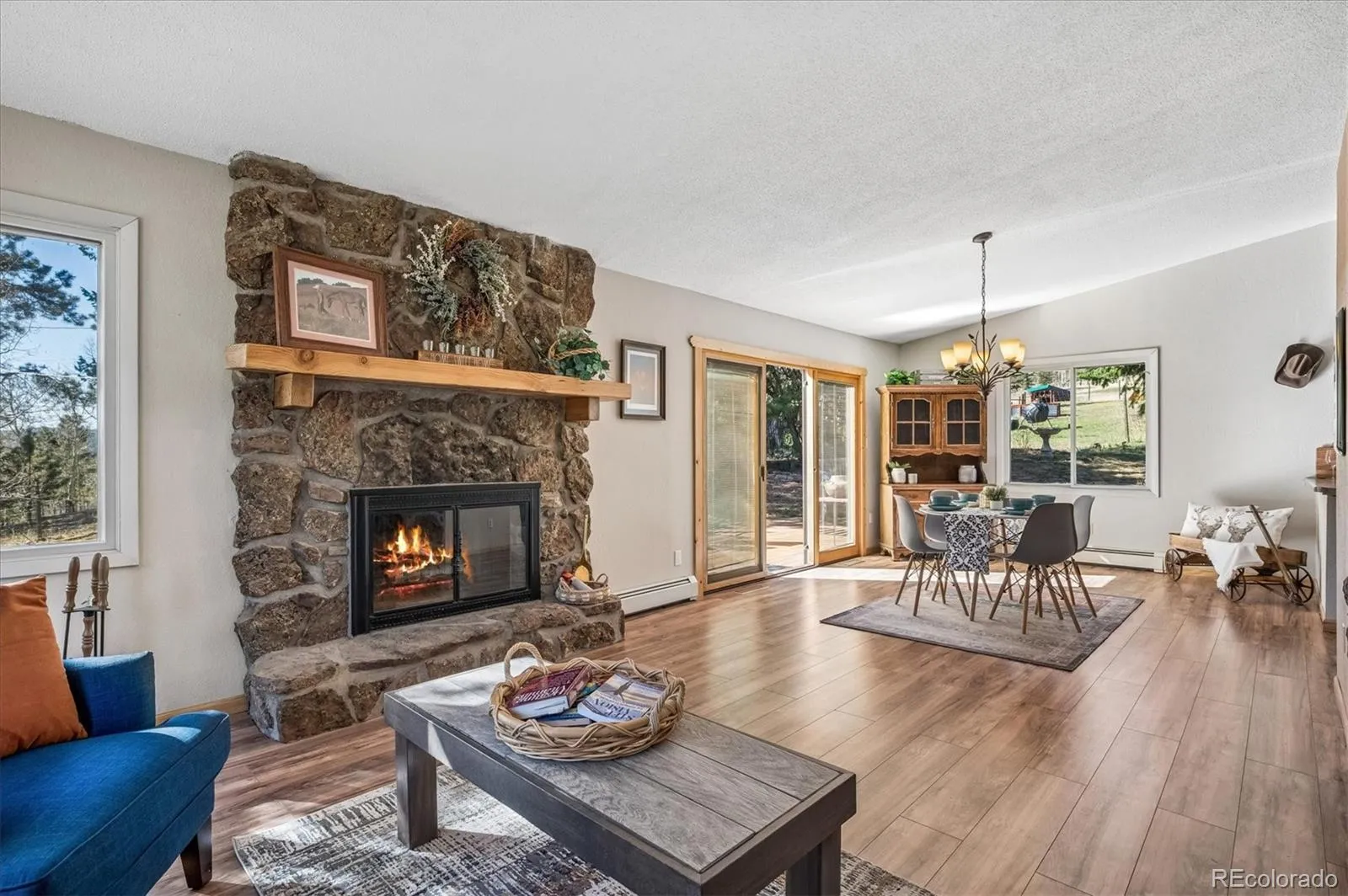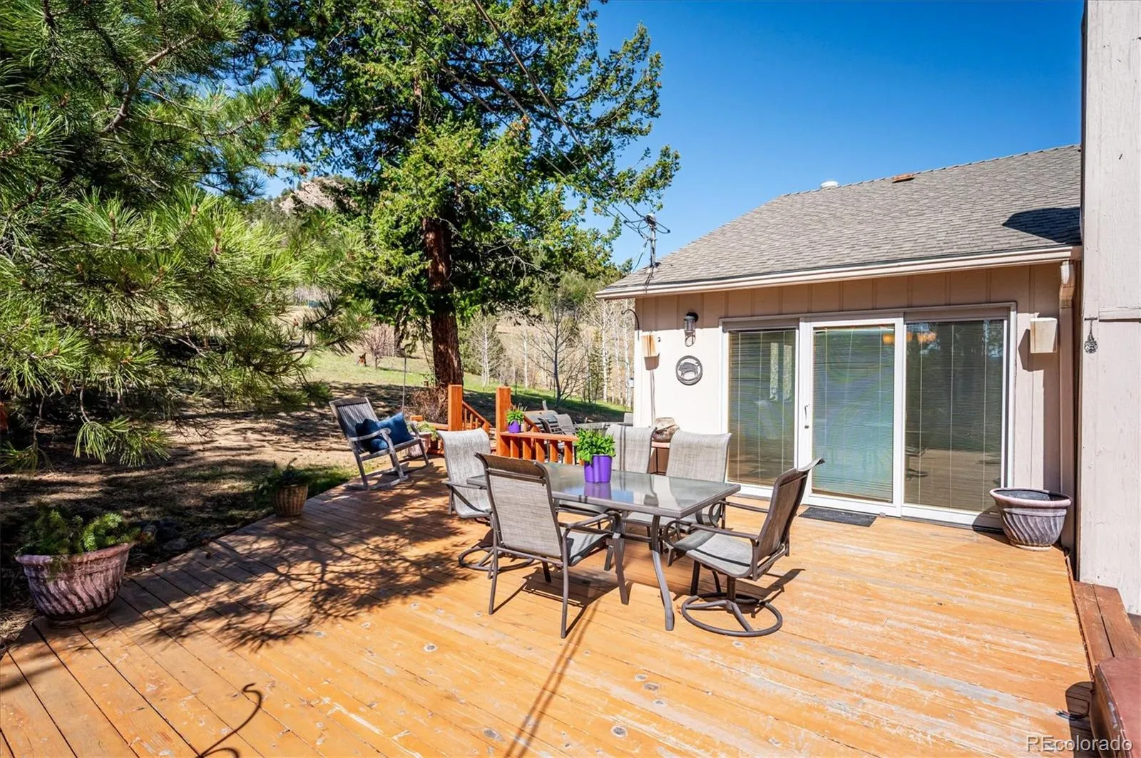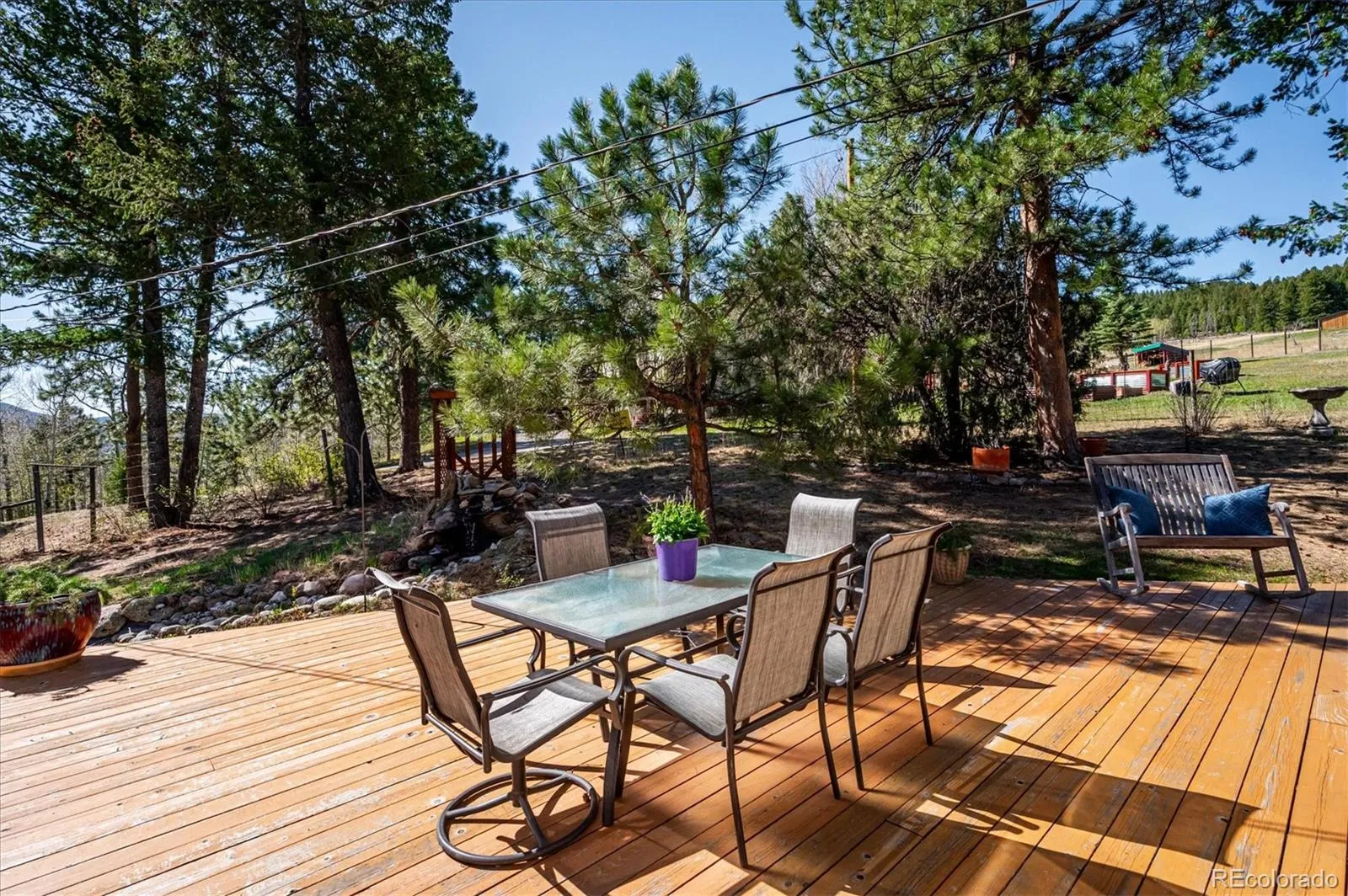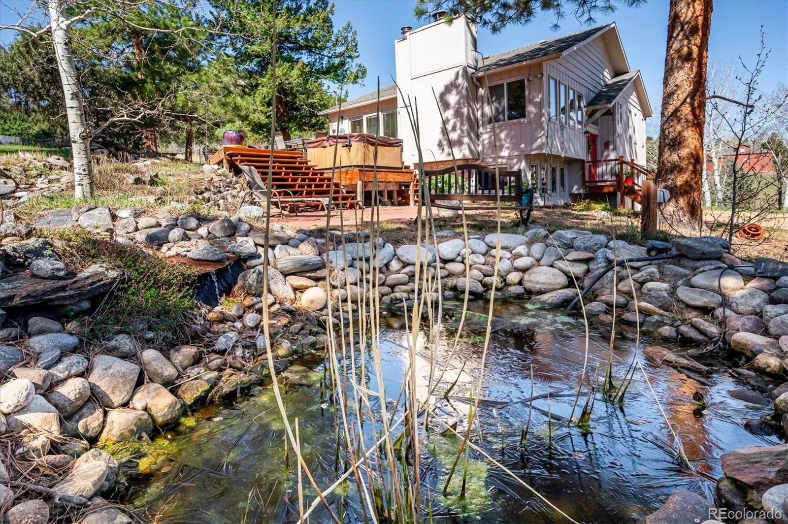 Tucked into an incredible location with sweeping, picturesque views, this charming mid-1970s home offers a rare opportunity to own a property with truly great bones on a beautiful 1.12-acre lot in the highly desirable Arapahoe Park Estates, just a short walk to the Arapahoe National Forest with 80 acres of gorgeous hiking and striking rock outcroppings, and only a quick drive to downtown Evergreen or Conifer. Inside, the upper level welcomes you with a light-filled living area anchored by a cozy fireplace, creating a warm and inviting space to gather. The thoughtfully updated kitchen features newer cabinetry, countertops, stainless steel appliances, a cheerful breakfast nook, and a spacious eating area, all with easy access to the expansive back deck—perfect for seamless indoor-outdoor living. The upper level is completed by a spacious primary suite with an adjacent 3/4 bath, along with two additional bedrooms that share a full bath. The lower level offers a giant, versatile family room with endless possibilities to create your own space, highlighted by a freestanding wood-burning stove (capable of heating the entire home) and brand new luxury carpet. This level also includes an additional 3/4 bath and a convenient mudroom/laundry area with utility sink and direct exterior access—an ideal setup for Colorado living. With spring in the air, the outdoor spaces are just beginning to come alive…hundreds of established perennials and wildflowers are on the verge of blooming, creating a vibrant and ever-changing landscape. The property is a true gardener’s dream, complete with a tranquil water feature, greenhouse, storage shed, fenced yard, and an expansive deck for relaxing and taking in the surrounding beauty. Convenient 2-Car Attached Garage. The property has been lovingly maintained, but has some features that hark back to the mid-70’s. This property will be sold “AS-IS” and offers an exceptional opportunity to personalize and build equity in a truly special setting.