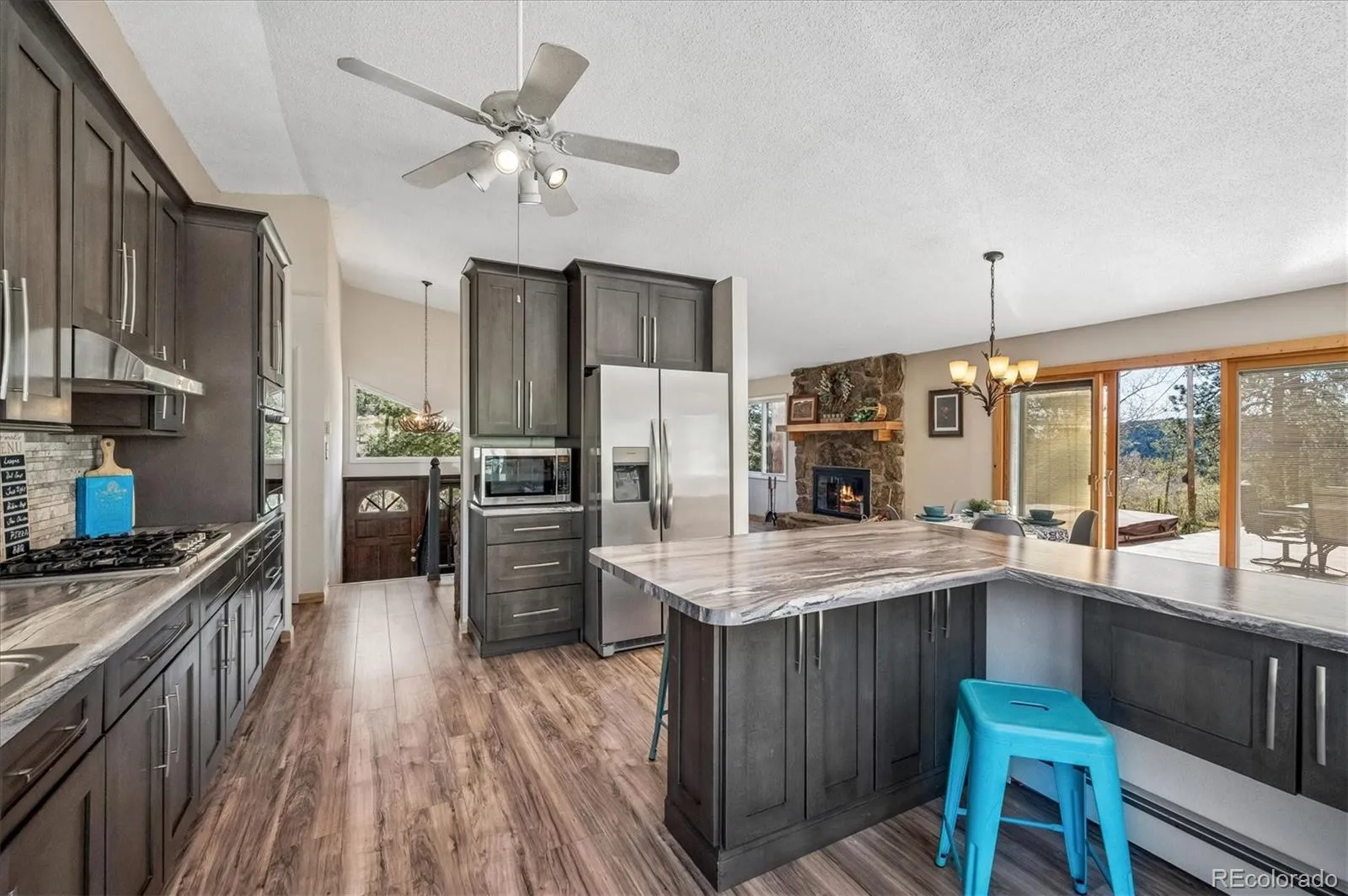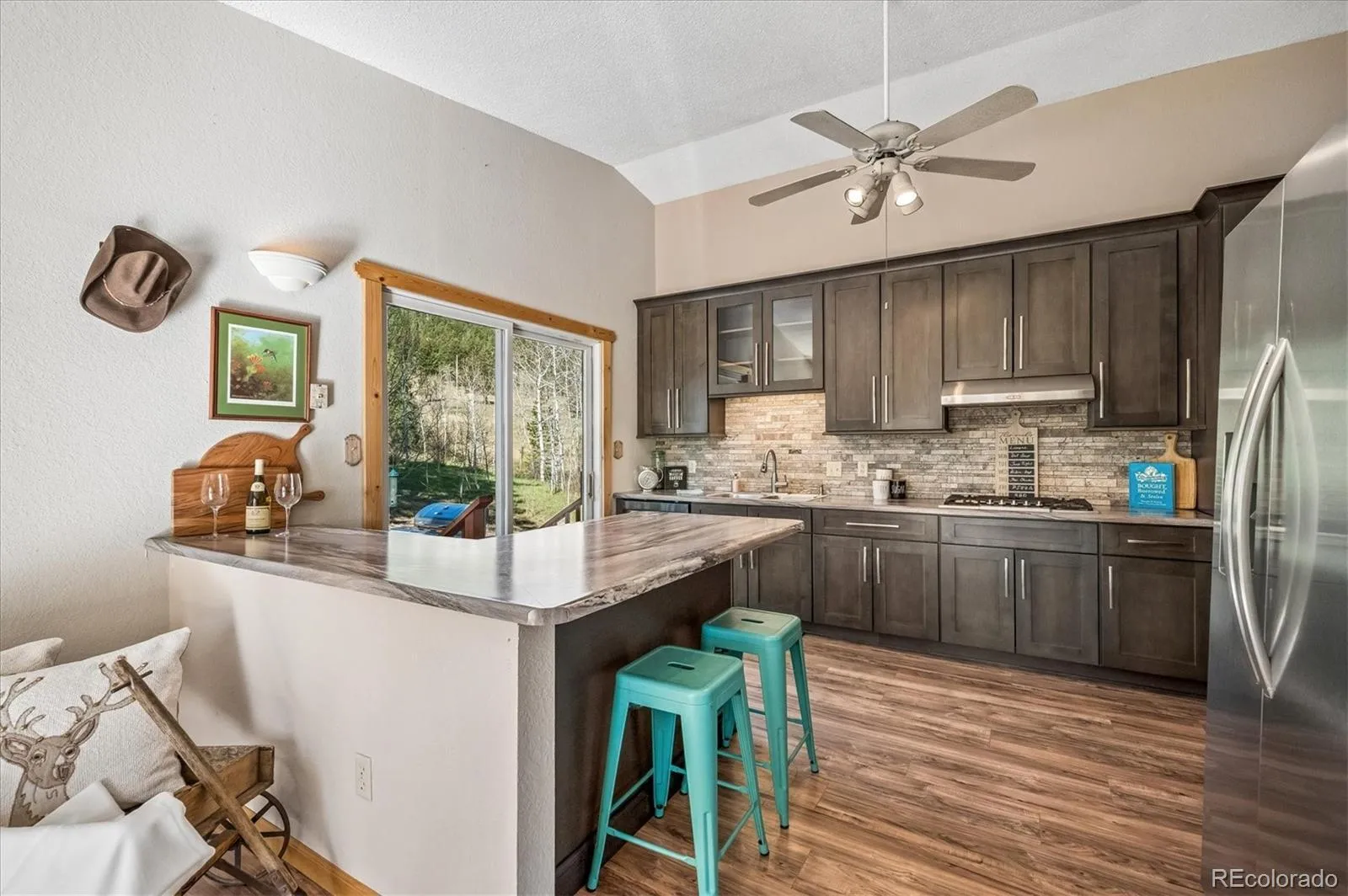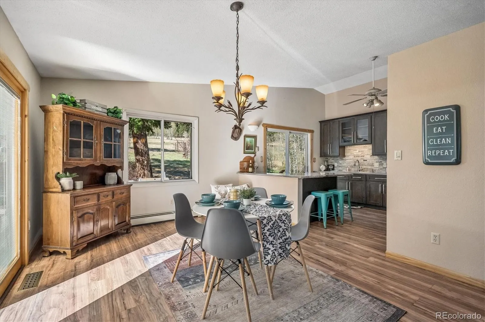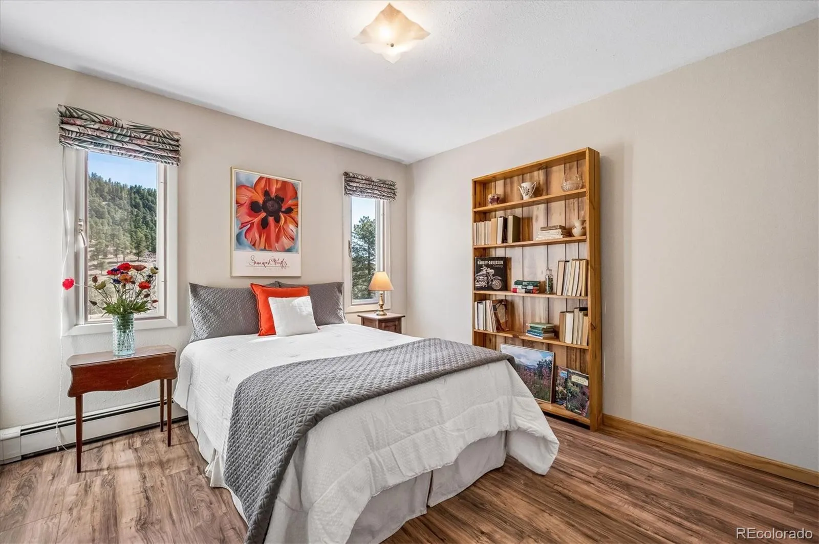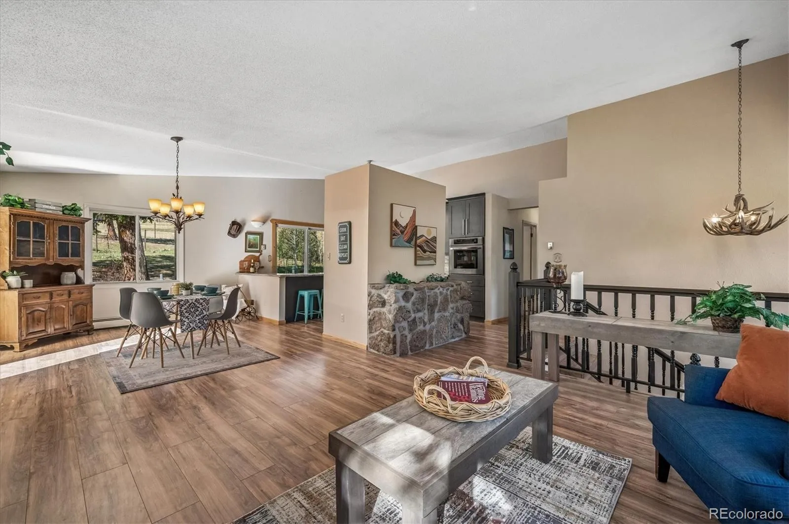 Tucked into an incredible location with sweeping, picturesque views, this charming mid-1970s home offers a rare opportunity to own a property with truly great bones on a beautiful 1.12-acre lot in the highly desirable Arapahoe Park Estates, just a short walk to the Arapahoe National Forest with 80 acres of gorgeous hiking and striking rock outcroppings, and only a quick drive to downtown Evergreen or Conifer. Inside, the upper level welcomes you with a light-filled living area anchored by a cozy fireplace, creating a warm and inviting space to gather. The thoughtfully updated kitchen features newer cabinetry, countertops, stainless steel appliances, a cheerful breakfast nook, and a spacious eating area, all with easy access to the expansive back deck—perfect for seamless indoor-outdoor living. The upper level is completed by a spacious primary suite with an adjacent 3/4 bath, along with two additional bedrooms that share a full bath. The lower level offers a giant, versatile family room with endless possibilities to create your own space, highlighted by a freestanding wood-burning stove (capable of heating the entire home) and brand new luxury carpet. This level also includes an additional 3/4 bath and a convenient mudroom/laundry area with utility sink and direct exterior access—an ideal setup for Colorado living. With spring in the air, the outdoor spaces are just beginning to come alive…hundreds of established perennials and wildflowers are on the verge of blooming, creating a vibrant and ever-changing landscape. The property is a true gardener’s dream, complete with a tranquil water feature, greenhouse, storage shed, fenced yard, and an expansive deck for relaxing and taking in the surrounding beauty. Convenient 2-Car Attached Garage. The property has been lovingly maintained, but has some features that hark back to the mid-70’s. This property will be sold “AS-IS” and offers an exceptional opportunity to personalize and build equity in a truly special setting.