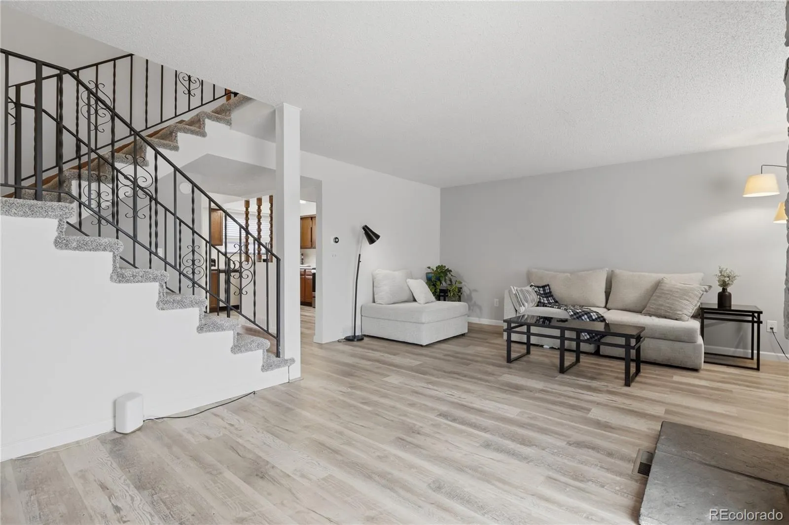 You’ll love the many updates completed in the past two years, including brand-new laminate flooring on the main level, new carpet upstairs, fresh interior paint, updated bathrooms, newer appliances, a new A/C, and more. The main level offers an open and functional layout with a large living room that backs to a greenbelt walkway, a comfortable dining area, and a kitchen with ample cabinet space.