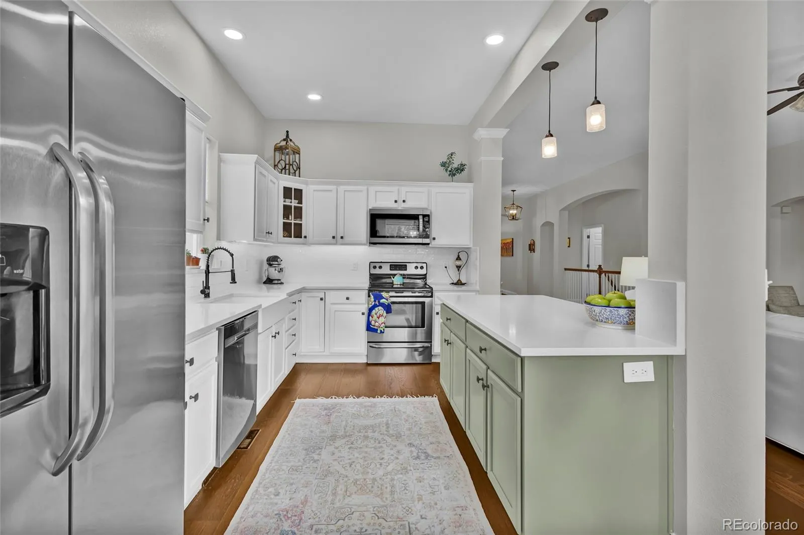 Inside, soaring 10’ ceilings and a bright open layout showcase designer finishes throughout. The fully remodeled kitchen features quartz countertops, stainless steel appliances, and a statement island, perfect for entertaining. Elegant architectural details and modern flooring add a refined touch across the main level.