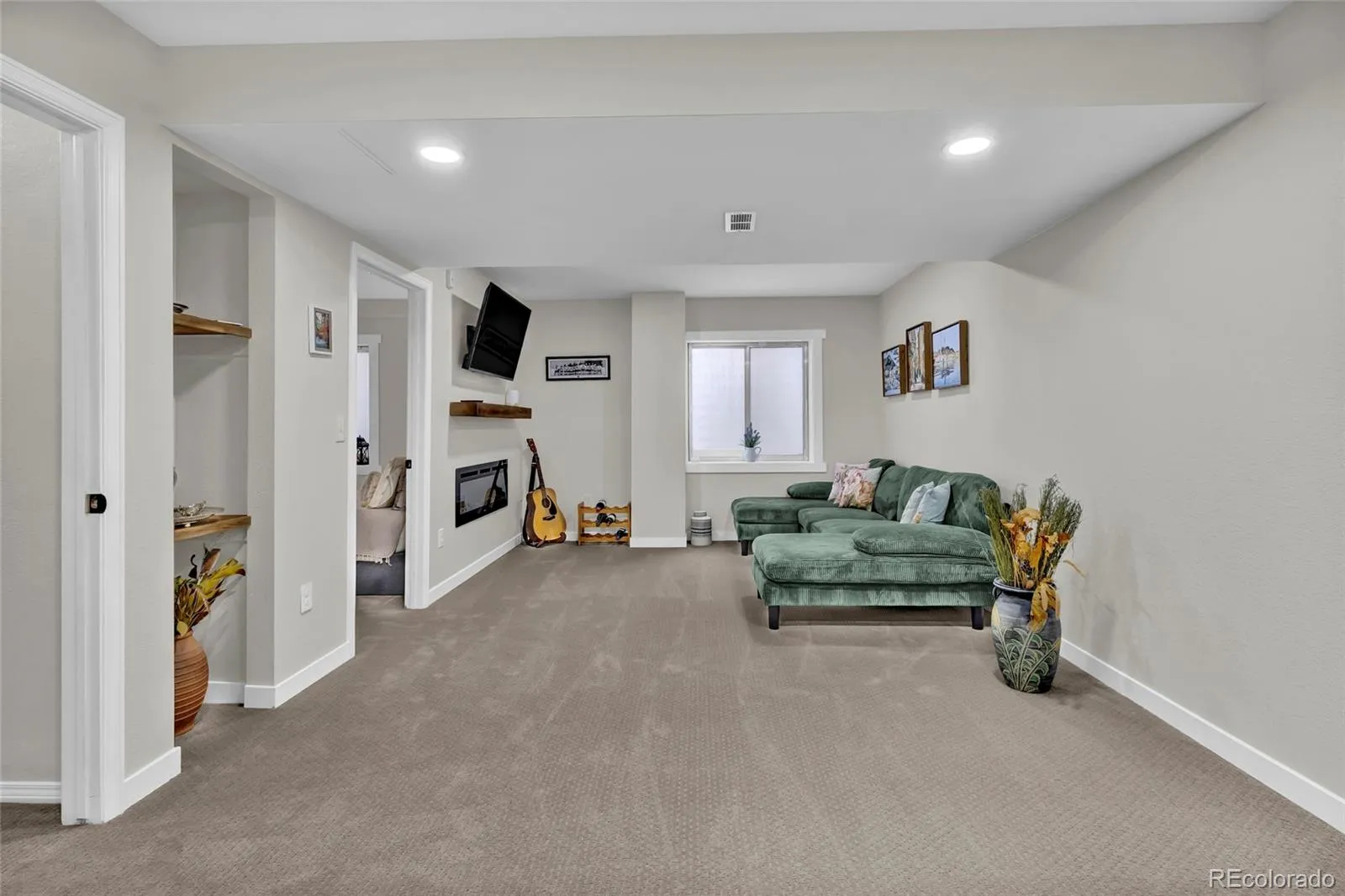The private primary suite offers a spa-inspired bath and walk-in closet, while a secondary bedroom and versatile study provide flexible living. Floor-to-ceiling frosted glass closet doors in the 2nd Bedroom add a sleek, modern aesthetic you won’t find in typical homes. The finished basement expands the home to 3 bedrooms and 3 bathrooms with an office.