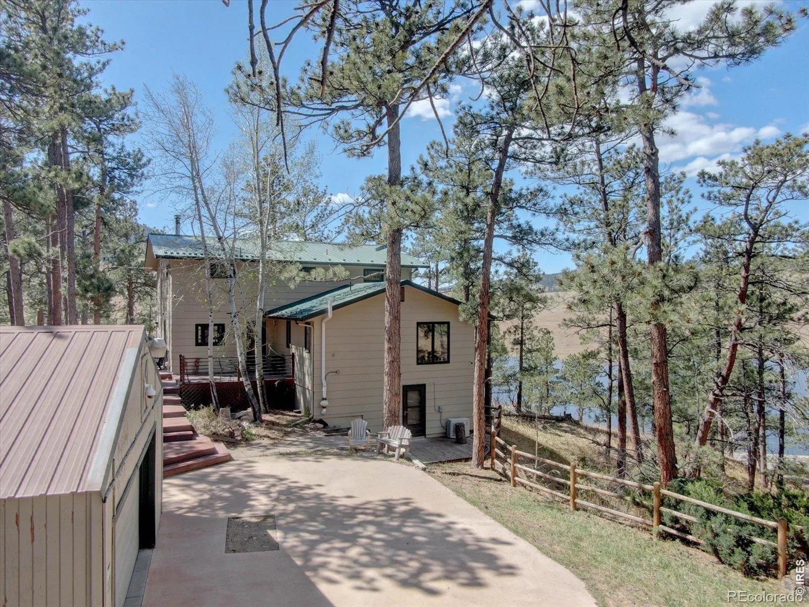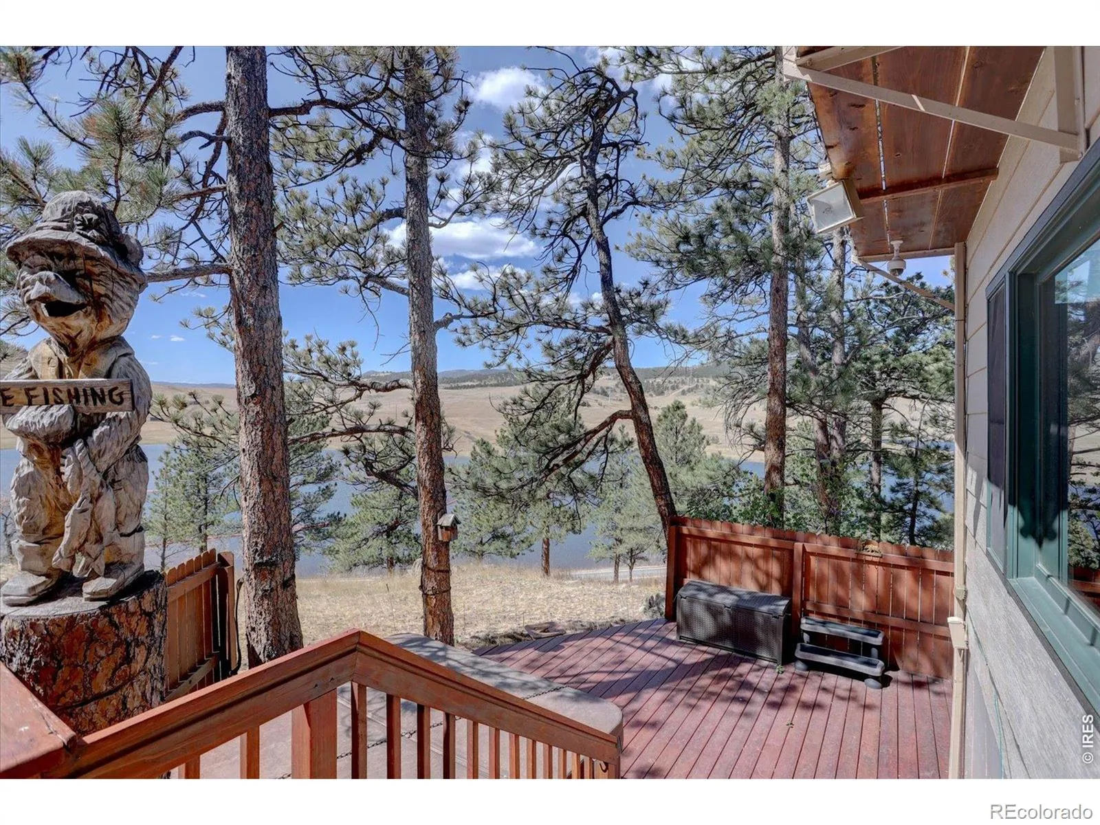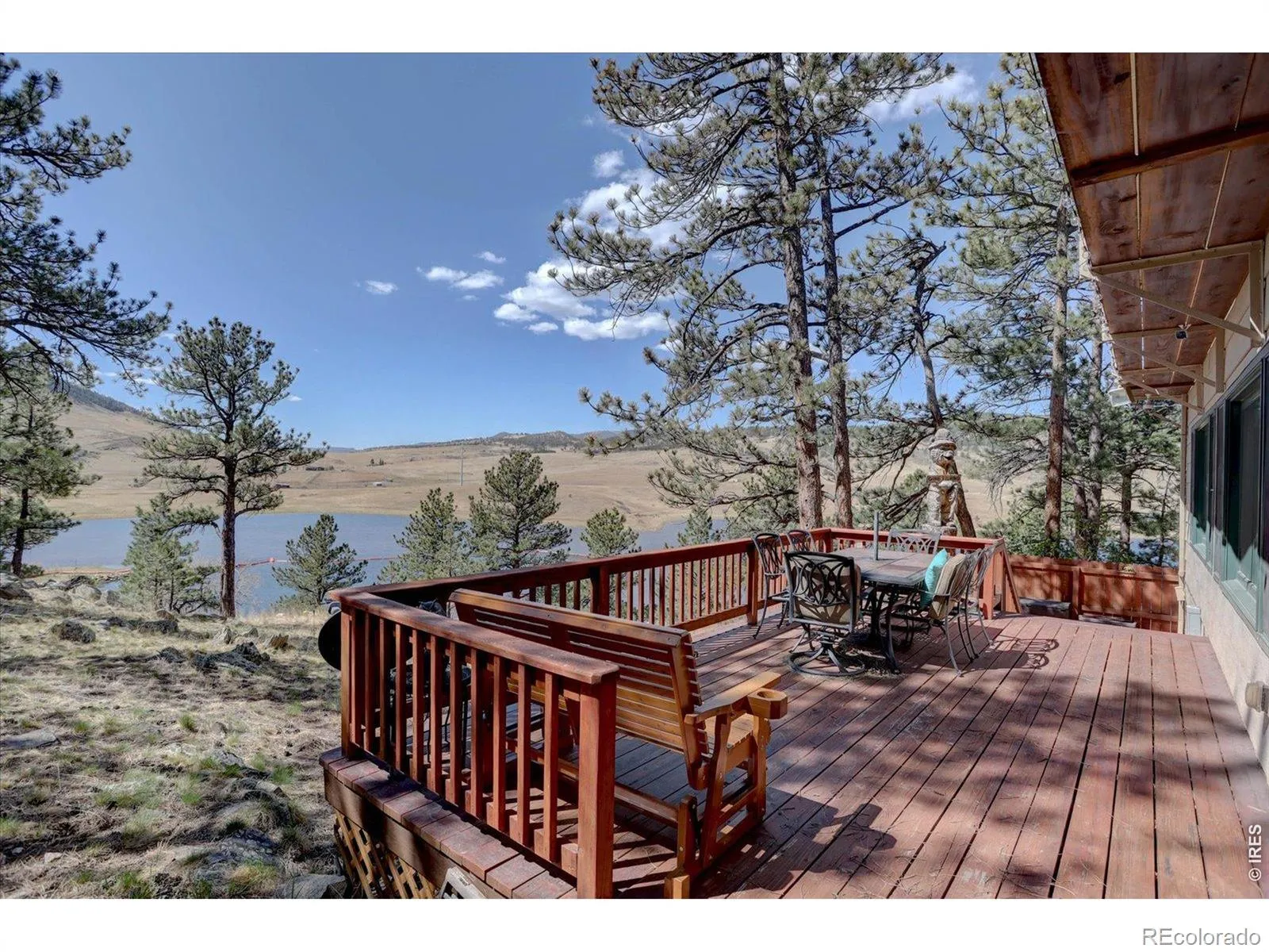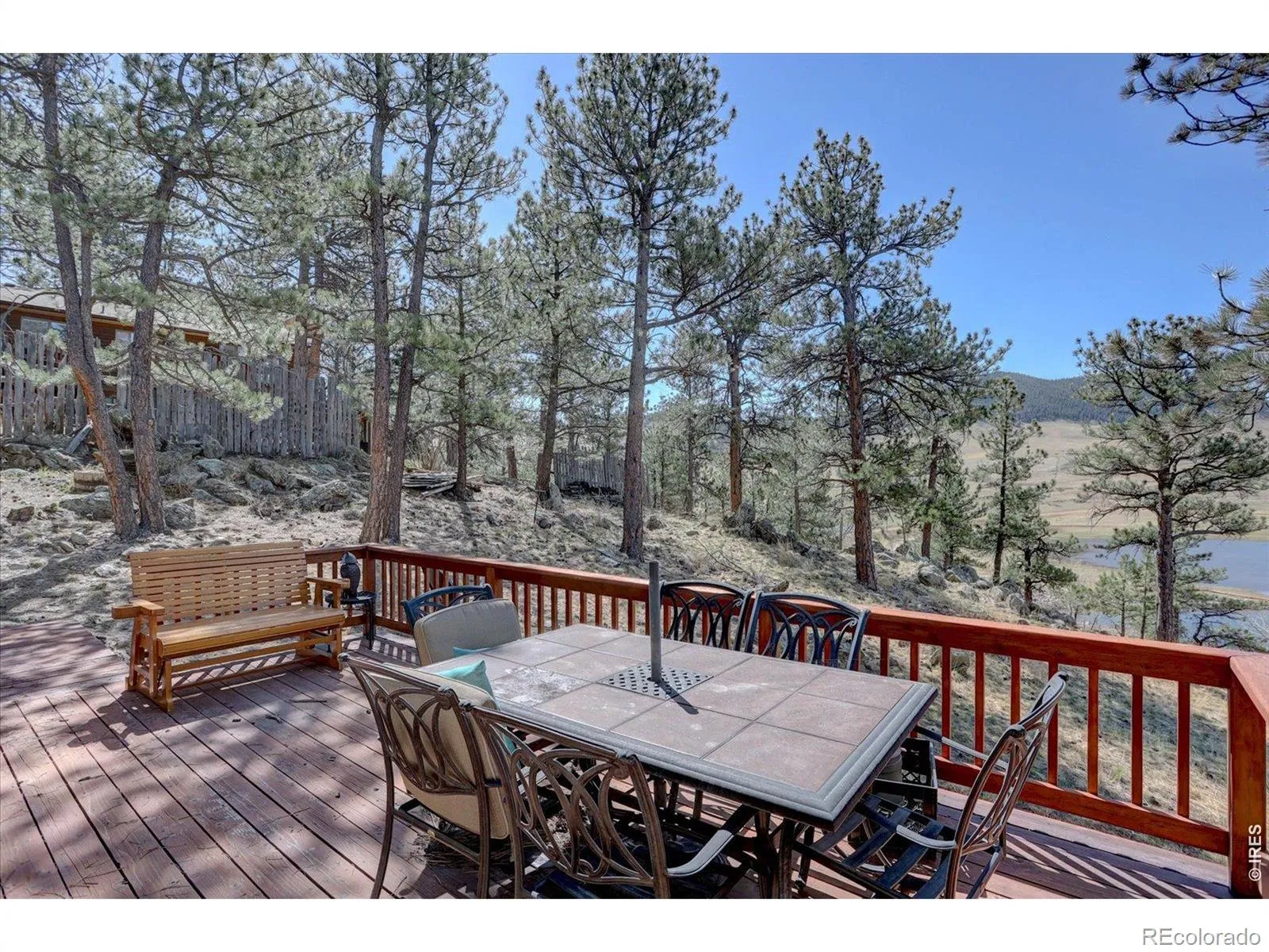 Imagine waking up every morning, grabbing a coffee and heading out to the wrap around deck where the deer bid you good morning as you gaze out onto Pine Needle Reservoir through a canopy of ponderosa pine and aspen with the Rocky Mountains stretched out on the horizon. That’s not a vacation. That’s your life here at this mountain retreat.This is the kind of place where you slow down and actually feel it. Relaxing on the deck as mist lifts off the water, soaking in a hot tub under the stars at night, and spending weekends the way they should be spent, completely unplugged and surrounded by nature and wildlife. Explore the outdoors right at your doorstep with the lake just yards away simply hop in a Kayak, cast your fishing pole, and admire the sunrise as it lifts over the mountains in the distant. No matter what your day brings it is a wonderful feeling to return to your sanctuary laced with knotty pine accents, heaps of natural light, breathtaking views of the lake,mountains and endless blue skies. Here’s three things you will love living here. First, a great room offering soaring ceilings, hand-hewn log posts and beams, walls of windows framing incredible views of Pine Needle Reservoir, and a river rock wood-burning stove that makes every evening feel like an event. Second, outdoor living here is year-round and effortless. Multiple decks, including a main entertaining deck and lower hot tub deck, putting those amazing lake and mountain views right at your fingertips year round. Step outside and it’s right there, the water, the mountains, the open sky, all of it. Third, there’s room for everyone and everything. Open main level including primary suite, huge kitchen and great room, the upper loft with log railings, the expansive lower level recreation room, media area, and fitness space, plus a detached oversized garage and workshop means this home lives way bigger than it looks. Properties like this don’t come around often, a retreat that actually feels like one.