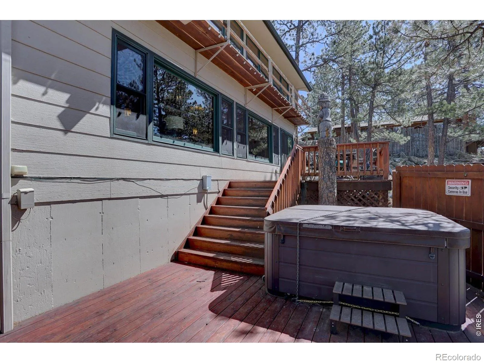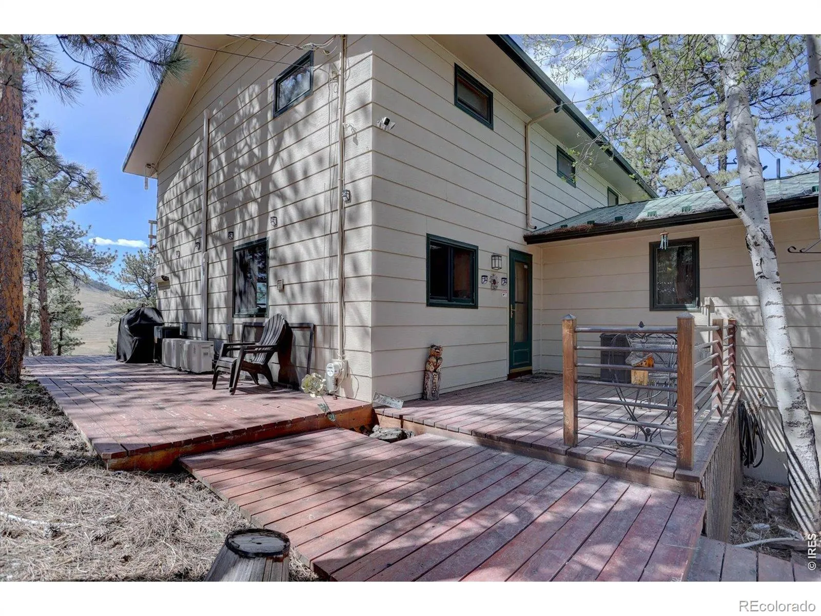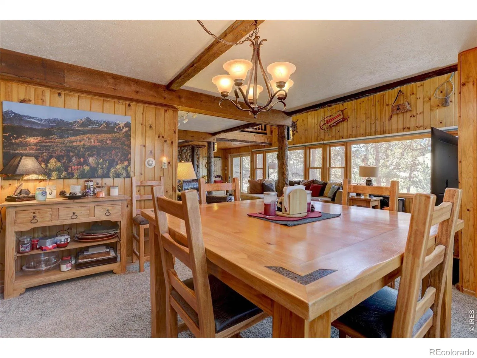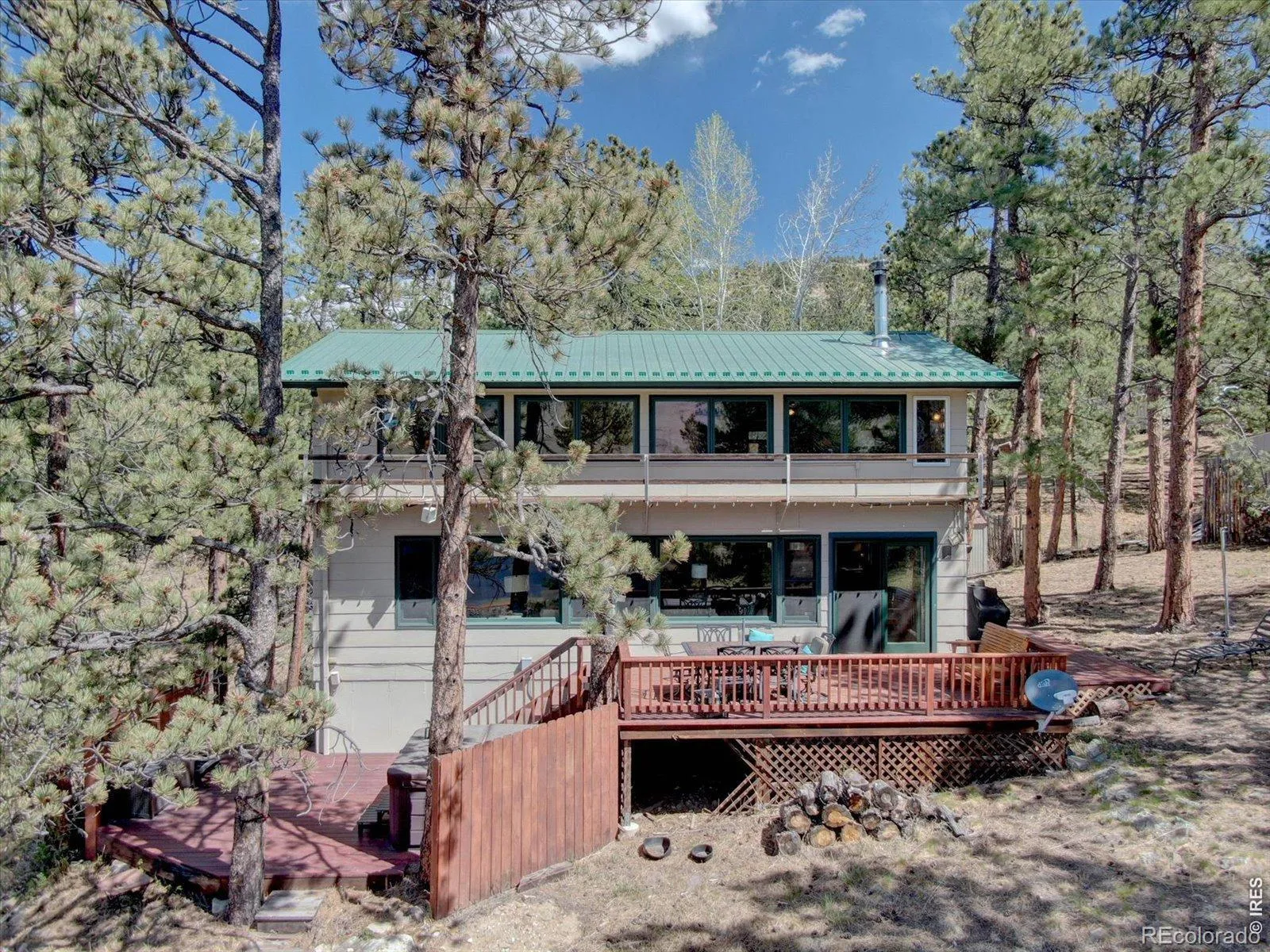 Imagine waking up every morning, grabbing a coffee and heading out to the wrap around deck where the deer bid you good morning as you gaze out onto Pine Needle Reservoir through a canopy of ponderosa pine and aspen with the Rocky Mountains stretched out on the horizon. That’s not a vacation. That’s your life here at this mountain retreat.This is the kind of place where you slow down and actually feel it. Relaxing on the deck as mist lifts off the water, soaking in a hot tub under the stars at night, and spending weekends the way they should be spent, completely unplugged and surrounded by nature and wildlife. Explore the outdoors right at your doorstep with the lake just yards away simply hop in a Kayak, cast your fishing pole, and admire the sunrise as it lifts over the mountains in the distant. No matter what your day brings it is a wonderful feeling to return to your sanctuary laced with knotty pine accents, heaps of natural light, breathtaking views of the lake,mountains and endless blue skies. Here’s three things you will love living here. First, a great room offering soaring ceilings, hand-hewn log posts and beams, walls of windows framing incredible views of Pine Needle Reservoir, and a river rock wood-burning stove that makes every evening feel like an event. Second, outdoor living here is year-round and effortless. Multiple decks, including a main entertaining deck and lower hot tub deck, putting those amazing lake and mountain views right at your fingertips year round. Step outside and it’s right there, the water, the mountains, the open sky, all of it. Third, there’s room for everyone and everything. Open main level including primary suite, huge kitchen and great room, the upper loft with log railings, the expansive lower level recreation room, media area, and fitness space, plus a detached oversized garage and workshop means this home lives way bigger than it looks. Properties like this don’t come around often, a retreat that actually feels like one.