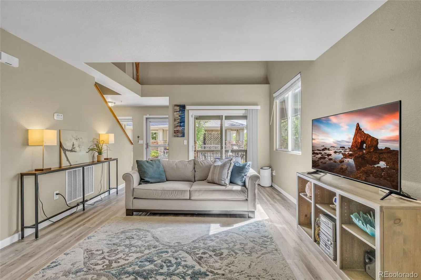 This gorgeous end unit backing to open space is GORGEOUS! You will love the location, and sitting on the quiet patio overlooking the large mature trees! This is a nicely updated Townhome style-condo, with vaulted ceilings and lots of natural light throughout. You will love the large family room that extends out to the patio, the eat in kitchen nook and open updated kitchen. Upstairs is the laundry closet and 2 bedrooms. The primary bedrooms is spacious with an ensuite that has been tastefully updated and a large walk in closet.