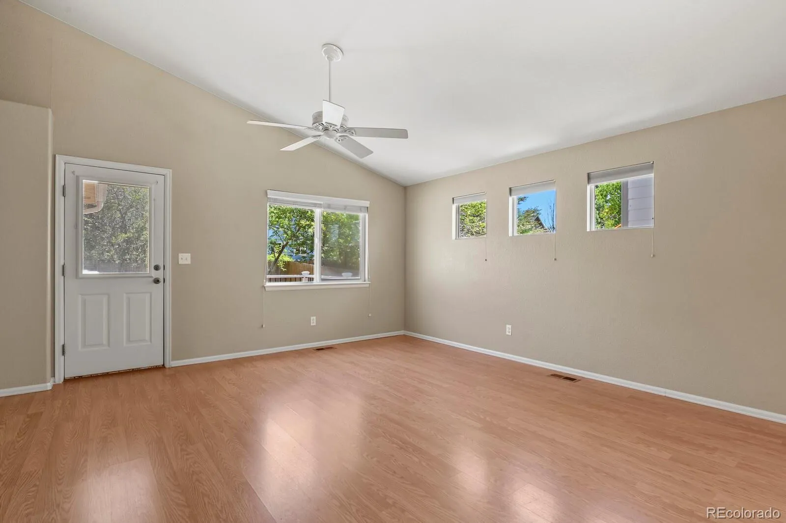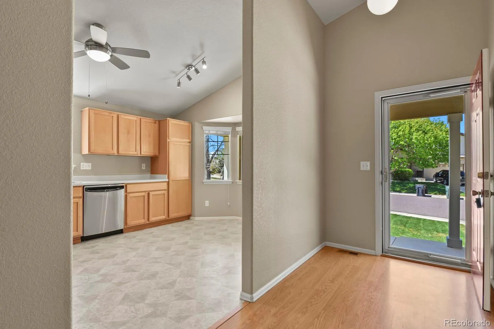 Welcome to this charming, affordable 3-bedroom, 2-bath ranch home with a 2-car attached garage, located in the highly desirable and quiet Quail Valley neighborhood. Enjoy the ease of true one-level living, with additional potential in the unfinished basement—perfect for future expansion, storage, or creating your dream space. The bright and open floor plan features vaulted ceilings and a spacious kitchen with a bay window in the breakfast nook, filling the home with natural light. The primary suite offers a walk-in closet and walk-in shower for added comfort and convenience. No carpet throughout—durable hardwood laminate flooring makes for easy maintenance. Relax on the inviting front porch and connect with friendly neighbors, or unwind in the privacy of the well-maintained backyard with a deck—ideal for outdoor enjoyment. Located in a peaceful setting, yet just minutes from E-470 and I-25 for an easy commute. Close to shopping, dining, and entertainment at Orchard Town Center with Lifetime Fitness and the Denver Premium Outlets. A wonderful opportunity to own a move-in ready home in a great location with room to grow!