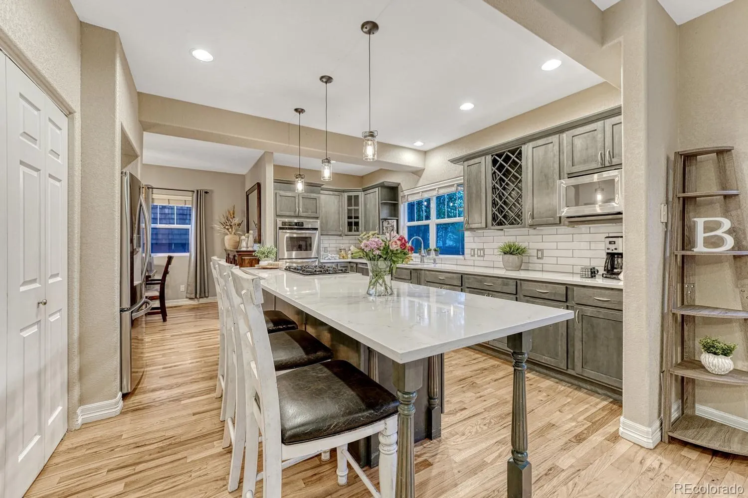 A rare opportunity to own a beautifully updated Craftsman in one of the area’s most picturesque boutique neighborhoods, where tree-lined streets, open space and timeless architecture. create an exceptional lifestyle. Surrounded by scenic trails and a charming neighborhood park, the setting offers both tranquility and connection. This stunning home showcases a classic Craftsman design with a welcoming wraparound porch and two upper level balconies..perfect for enjoying quiet mornings or evening sunsets. Inside, the open floor plan is designed for both everyday living and effortless entertaining anchored by a fully renovated kitchen featuring a large island and upscale finishes. The finished basement adds incredible versatility with a custom bar, creating an ideal space for hosting memorable gathering. Situated on a generously sized homesite, the expansive backyard is a true retreat, complete with a custom patio designed for outdoor living and entertaining. Recent updates include new exterior paint and a newer furnace, while the oversized garage with impressive 12′ doors provide exceptional functionality and storage..an uncommon and highly desirable feature for the neighborhood.