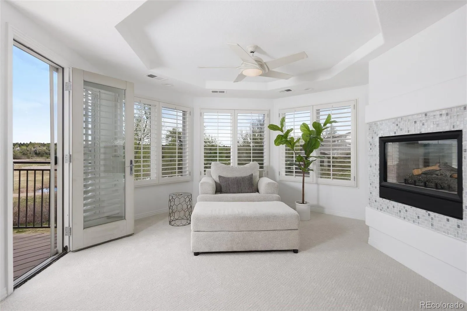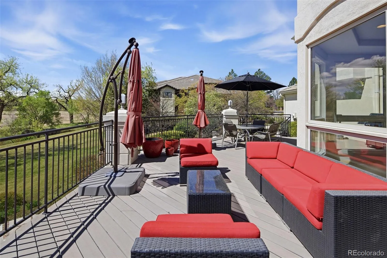 Backing directly to the stunning Marjorie Perry Nature Preserve and the High Line Canal, this immaculate custom build presents an exceptional blend of modern luxury and natural beauty, showcasing breathtaking open space views. Hand-selected by renowned builder Abe Suderman for its unparalleled setting, this home truly delivers an elevated Colorado lifestyle. Recently refreshed with new paint and flooring throughout, it boasts a versatile main floor featuring a dramatic two-story entry, two powder rooms, formal living and dining rooms, a cozy family room, and a dedicated study. The upper level hosts a luxurious primary bedroom suite with a private balcony and sitting area, along with three generously sized ensuite bedrooms, each with its own bath, window seat, and spacious walk-in closet. The open contemporary kitchen showcases an expansive center island, granite countertops, a walk-in pantry, and professional-grade appliances—all offering unobstructed views of the 58 acres of vibrant natural landscape. Designed for both relaxation and entertaining, the outdoor living spaces are equally impressive, featuring professionally landscaped, low-maintenance grounds with multiple patios, a covered gazebo complete with a stylish outdoor fireplace, and a tranquil fountain—all seamlessly opening to the High Line Canal Trail and the serene expanse of the Nature Preserve. The walk-out basement expands the home’s lifestyle offerings, featuring a true private home theater with stadium seating, a full custom bar, and a dedicated exercise room. A state-of-the-art home automation system ensures effortless control throughout the entire property. Enjoy exclusive access to The Preserve’s premier amenities, including an Olympic-sized pool, tennis and sport courts, clubhouse, and playground. Located within the highly acclaimed Cherry Creek School District and just minutes from DTC, this is an incredible opportunity for luxury living in one of Greenwood Village’s most coveted settings.