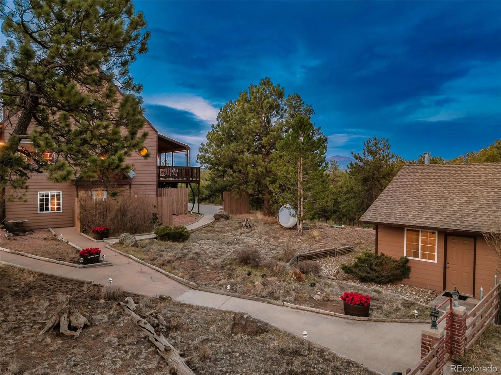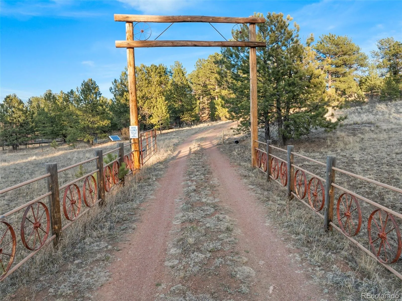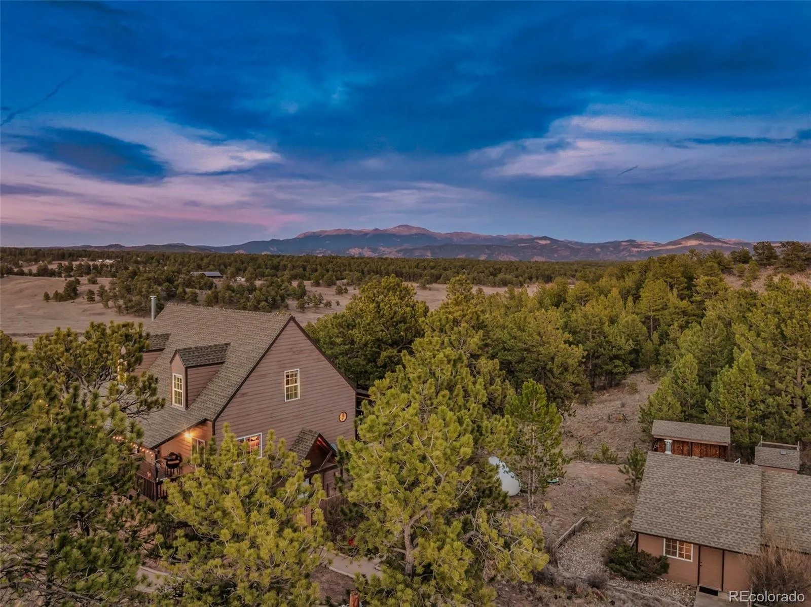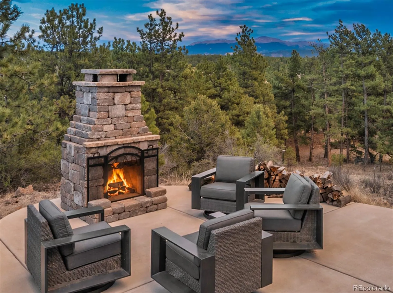 Tucked into a sun dappled forest of towering Ponderosa pines on 35 pristine acres this beautifully maintained and functionally perfect mountain retreat offers what may well be the finest views of Pikes Peak imaginable. Just a short distance off paved County road 102 and protected behind a private locked gate, the home blends luxurious comfort with profound seclusion….every window framing a living postcard of rugged peaks, sweeping valleys and endless blue skies. At the heart of this rambling residence lies a truly enchanting country kitchen — cozy yet modern, with a generous eat-in bar. This warm and functional space beautifully blends cooking, casual dining, and socializing into one inviting hub. Just steps away, the kitchen opens into a charming formal dining room, creating a perfect flow for both everyday family meals and larger gatherings. Together, the kitchen, dining room, and living room form the true social core of the home— an inviting hub ideal for everything from quick breakfasts at the bar to holiday dinners and relaxed evenings. The main level contemporary master suite feels like a high-end alpine retreat—sleek, minimalist and luxurious, with a strong emphasis on natural materials, dramatic views, and seamless indoor-outdoor living that perfectly complements the raw beauty of the Rocky Mountains. An expansive patio creates a generous, open-air living space that feels like an additional great room outdoors, with an 15′ X 8″ Gazebo, firepit and comfy patio seating, your evenings will be magical as direct sunlight fades and the iconic 14,115-foot summit catches the indirect rays scattering through the atmosphere, igniting in a stunning display of alpenglow. This beautiful home comes completely turnkey — fully furnished down to the glassware in the cabinets — so you can move in and start enjoying mountain living immediately.