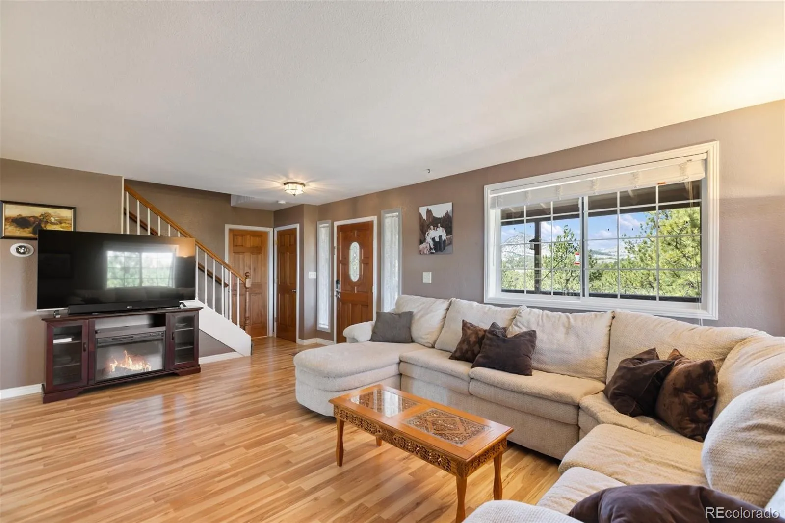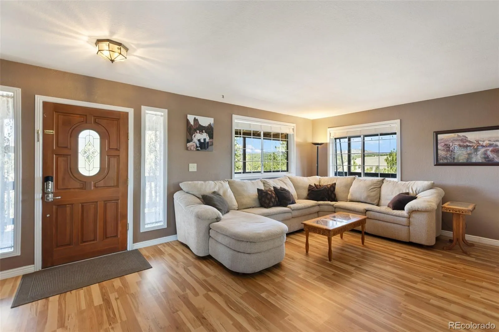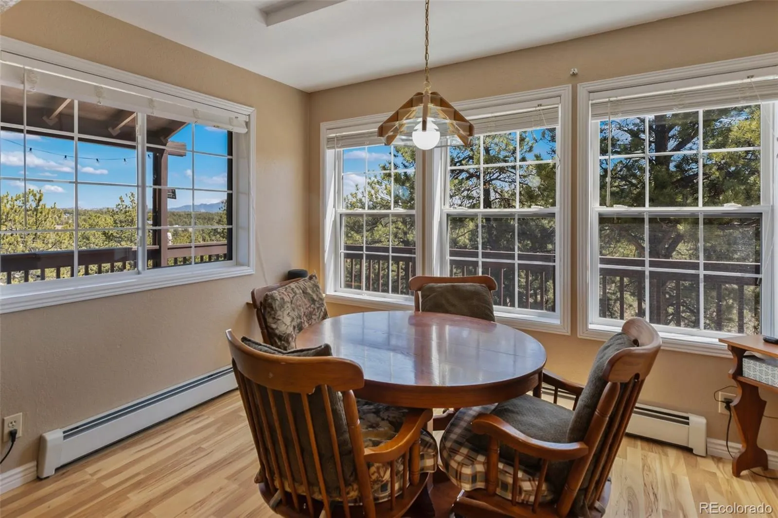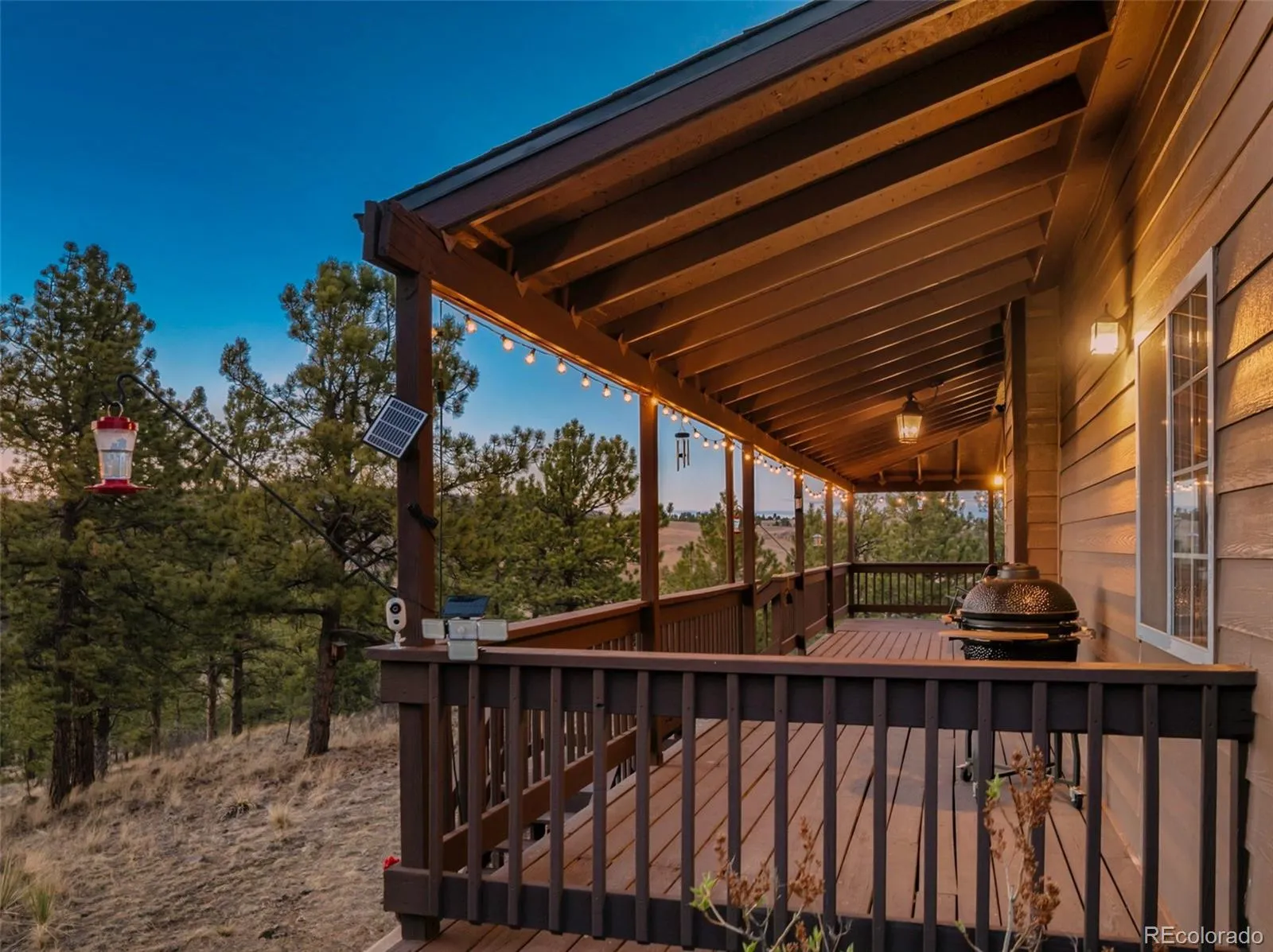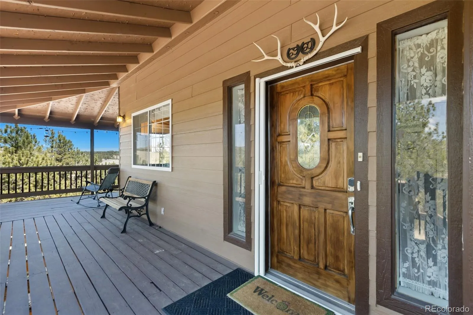 Tucked into a sun dappled forest of towering Ponderosa pines on 35 pristine acres this beautifully maintained and functionally perfect mountain retreat offers what may well be the finest views of Pikes Peak imaginable. Just a short distance off paved County road 102 and protected behind a private locked gate, the home blends luxurious comfort with profound seclusion….every window framing a living postcard of rugged peaks, sweeping valleys and endless blue skies. At the heart of this rambling residence lies a truly enchanting country kitchen — cozy yet modern, with a generous eat-in bar. This warm and functional space beautifully blends cooking, casual dining, and socializing into one inviting hub. Just steps away, the kitchen opens into a charming formal dining room, creating a perfect flow for both everyday family meals and larger gatherings. Together, the kitchen, dining room, and living room form the true social core of the home— an inviting hub ideal for everything from quick breakfasts at the bar to holiday dinners and relaxed evenings. The main level contemporary master suite feels like a high-end alpine retreat—sleek, minimalist and luxurious, with a strong emphasis on natural materials, dramatic views, and seamless indoor-outdoor living that perfectly complements the raw beauty of the Rocky Mountains. An expansive patio creates a generous, open-air living space that feels like an additional great room outdoors, with an 15′ X 8″ Gazebo, firepit and comfy patio seating, your evenings will be magical as direct sunlight fades and the iconic 14,115-foot summit catches the indirect rays scattering through the atmosphere, igniting in a stunning display of alpenglow. This beautiful home comes completely turnkey — fully furnished down to the glassware in the cabinets — so you can move in and start enjoying mountain living immediately.