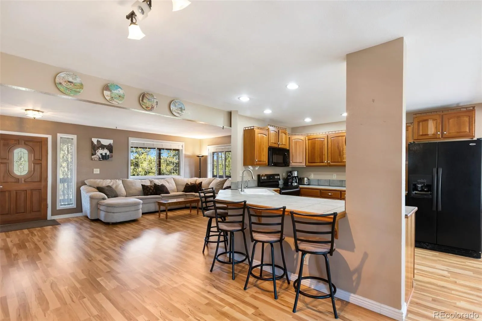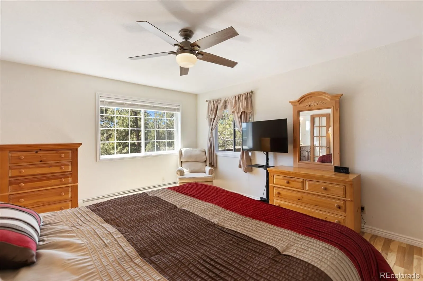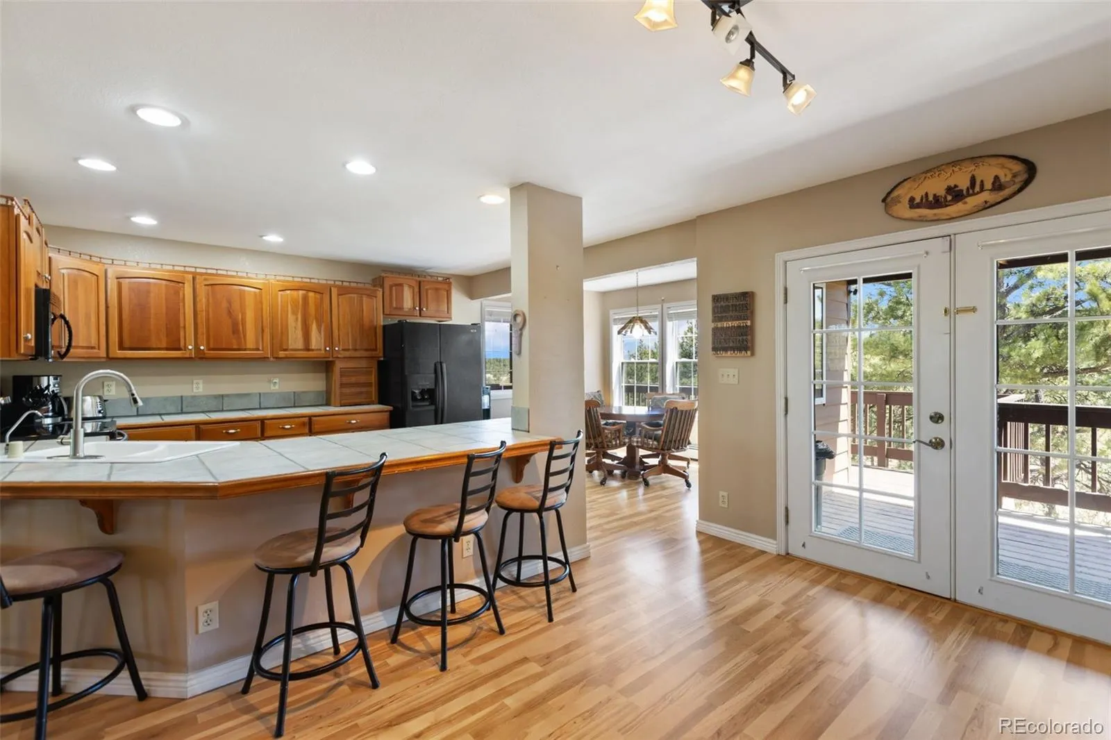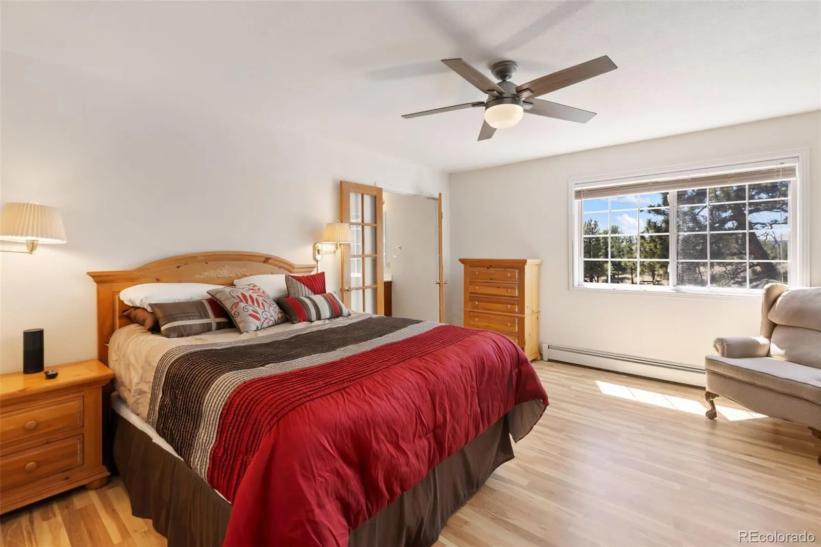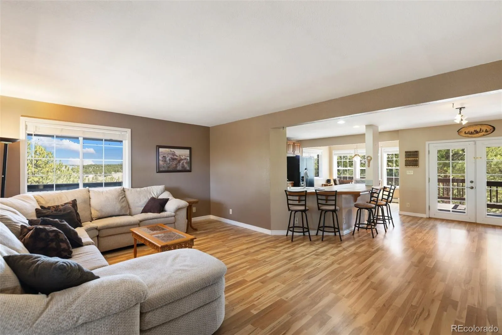 Tucked into a sun dappled forest of towering Ponderosa pines on 35 pristine acres this beautifully maintained and functionally perfect mountain retreat offers what may well be the finest views of Pikes Peak imaginable. Just a short distance off paved County road 102 and protected behind a private locked gate, the home blends luxurious comfort with profound seclusion….every window framing a living postcard of rugged peaks, sweeping valleys and endless blue skies. At the heart of this rambling residence lies a truly enchanting country kitchen — cozy yet modern, with a generous eat-in bar. This warm and functional space beautifully blends cooking, casual dining, and socializing into one inviting hub. Just steps away, the kitchen opens into a charming formal dining room, creating a perfect flow for both everyday family meals and larger gatherings. Together, the kitchen, dining room, and living room form the true social core of the home— an inviting hub ideal for everything from quick breakfasts at the bar to holiday dinners and relaxed evenings. The main level contemporary master suite feels like a high-end alpine retreat—sleek, minimalist and luxurious, with a strong emphasis on natural materials, dramatic views, and seamless indoor-outdoor living that perfectly complements the raw beauty of the Rocky Mountains. An expansive patio creates a generous, open-air living space that feels like an additional great room outdoors, with an 15′ X 8″ Gazebo, firepit and comfy patio seating, your evenings will be magical as direct sunlight fades and the iconic 14,115-foot summit catches the indirect rays scattering through the atmosphere, igniting in a stunning display of alpenglow. This beautiful home comes completely turnkey — fully furnished down to the glassware in the cabinets — so you can move in and start enjoying mountain living immediately.