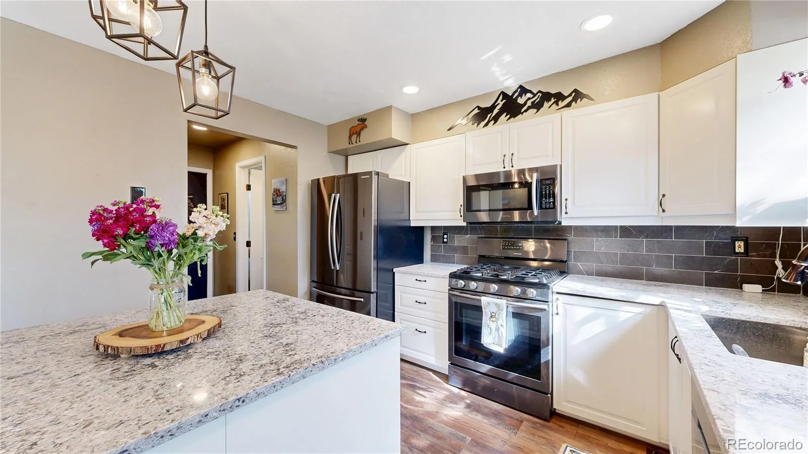 Welcome to this charming 2-story home in Roxborough Village! The vaulted great room is filled with natural light and features luxury vinyl plank flooring and a cozy gas log fireplace, creating a warm and inviting gathering space. The beautifully remodeled eat-in kitchen showcases white cabinetry, quartz countertops, a center island, black stainless steel appliances, and a pantry, offering both style and functionality. An updated powder bath completes the main level.