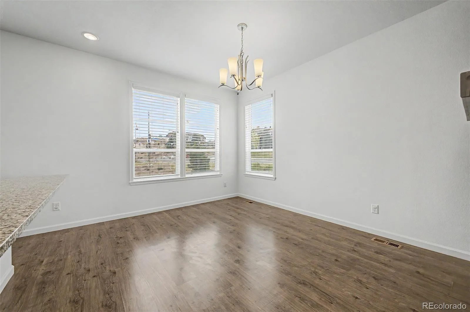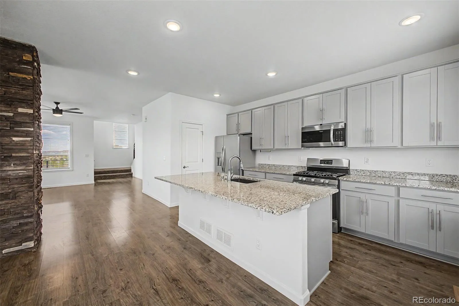 Stunning end-unit townhome showcasing incredible views and abundant natural light throughout. The gourmet kitchen features 42” cabinetry, stainless steel appliances, a pantry, and ample cabinet space. The main level offers a dining area and a spacious great room with breathtaking views, plenty of sunlight, access to the balcony, and a convenient bathroom.