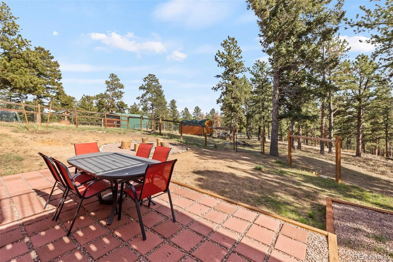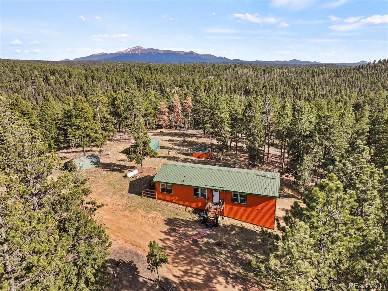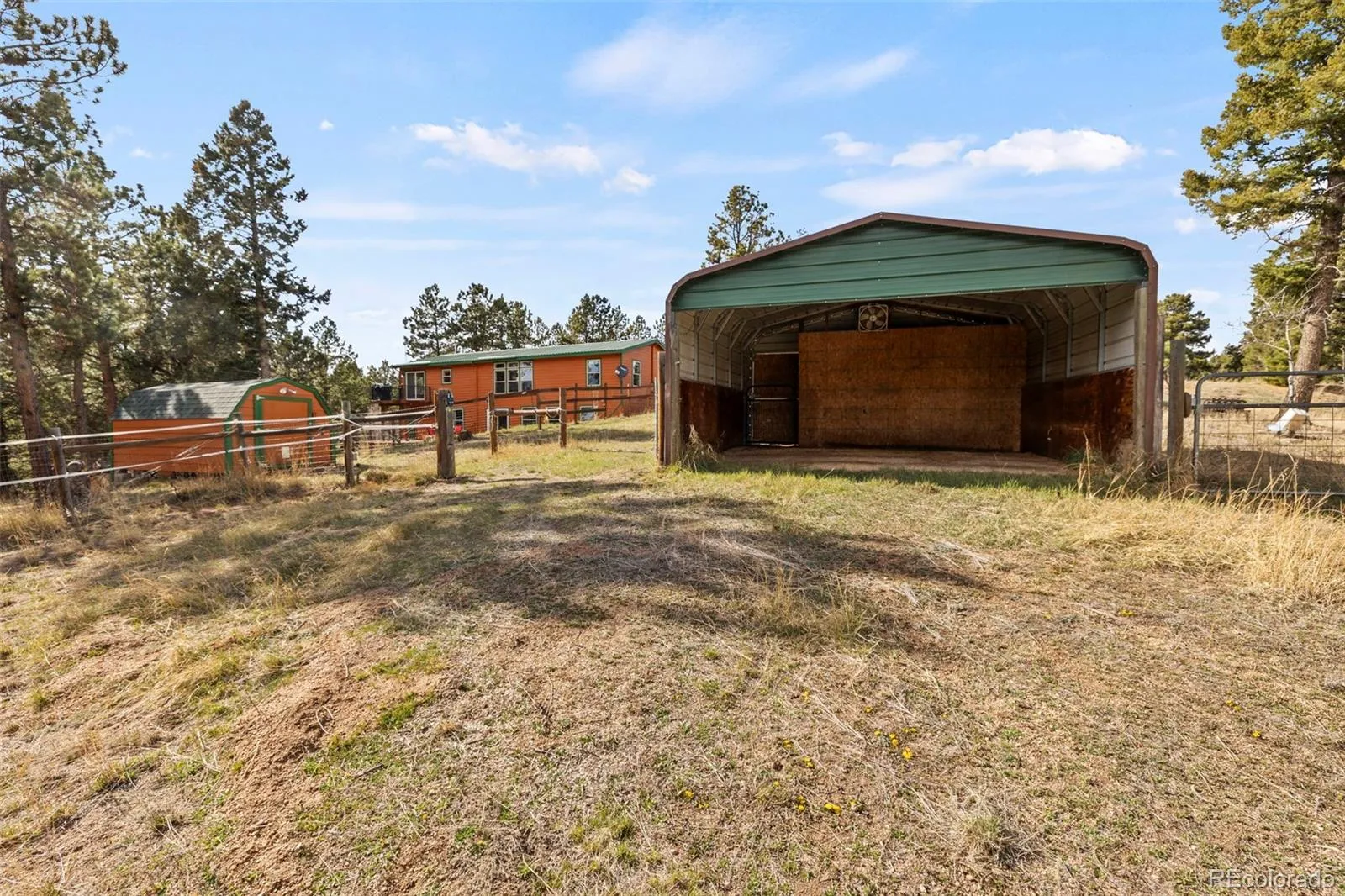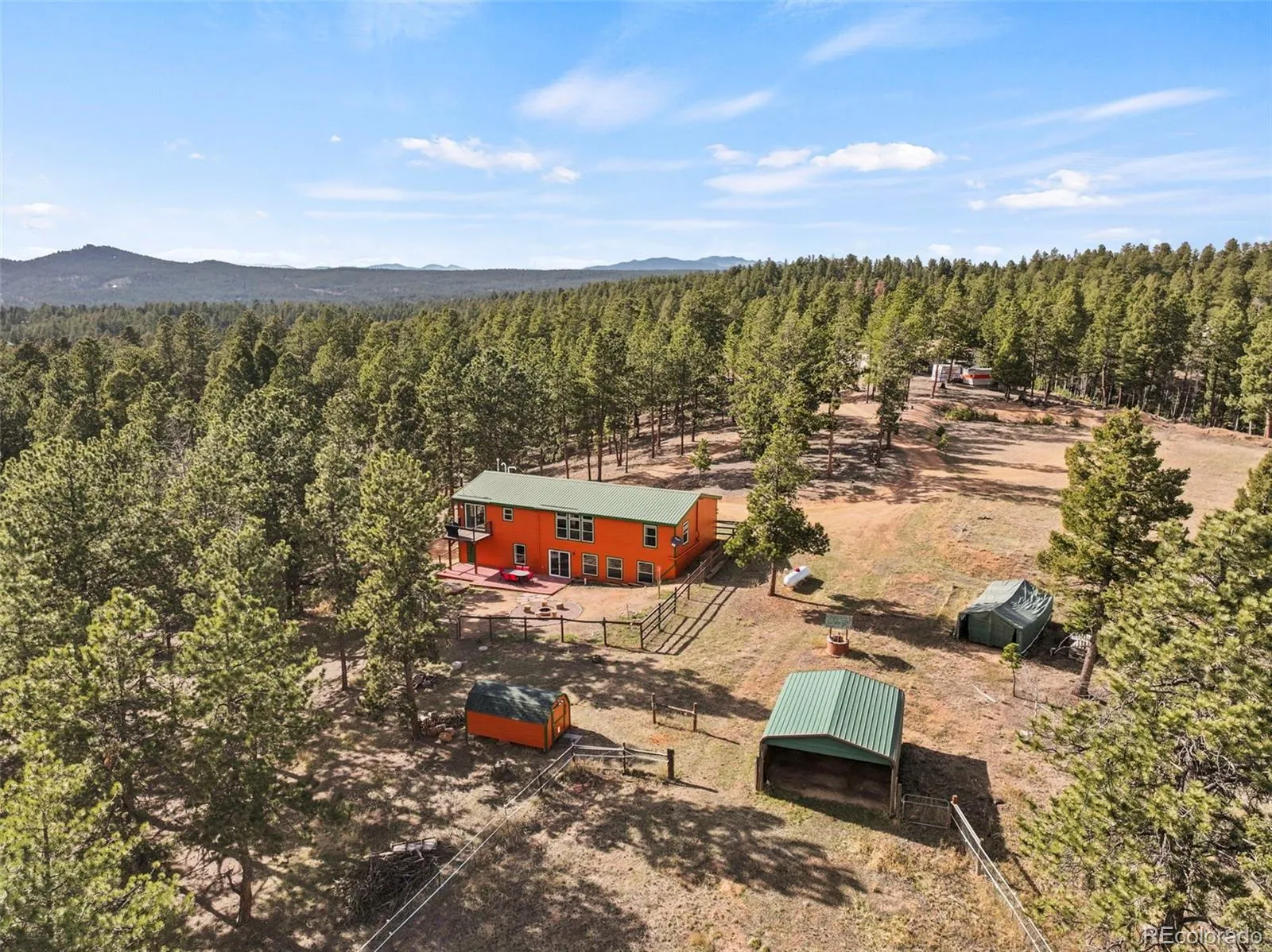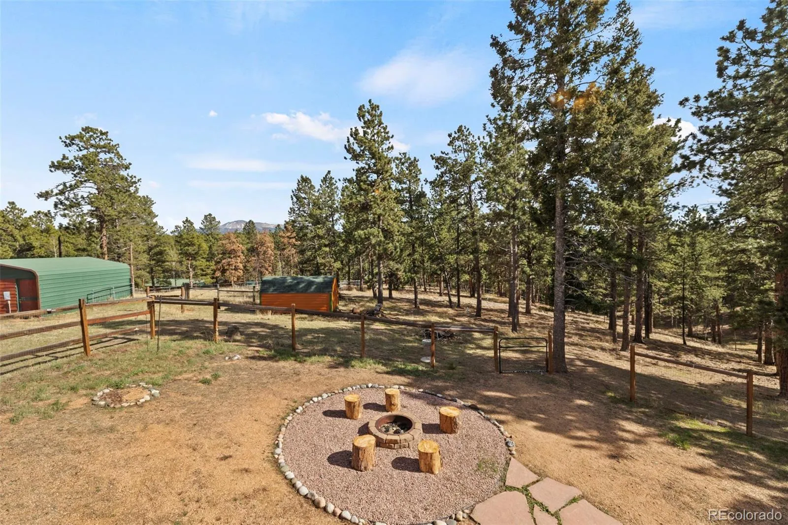 Set on 8.28 fully fenced acres in the Indian Creek area of Divide, this ranch-style home offers Pikes Peak views, usable land, and a mountain setting well suited for horses, animals, or anyone seeking room to spread out. Zoned R-1M and located on a county-maintained road with no HOA or covenants, the property blends privacy, function, and flexibility. A gated driveway leads to the home, where a composite deck and multiple outdoor seating areas create inviting places to take in the views. Fresh interior and exterior paint give the home an updated feel, while vaulted ceilings throughout the main level and abundant natural light enhance the spacious interior. The kitchen features spacious countertops, a breakfast bar, gas range, and generous cabinetry, with a separate dining area for everyday meals or gatherings. The primary suite includes a walk-in closet and a five-piece bath with soaking tub. Two additional bedrooms and a full bath offer flexible space for guests, office use, or everyday living. The unfinished walkout basement expands the possibilities with framing and plumbing already in place for future finishing, whether for added living space, a workshop, hobby area, or storage. Designed with function in mind, the property includes a 20 x 20 loafing shed with tack room, arena, corral, storage shed, garden shed, RV parking, cross fencing, and a strong household well, along with a large level area that offers potential for additional structures. Located about a mile from Pike National Forest and close to riding trails at Mueller State Park and Dome Rock, with nearby fishing, hiking, and mountain biking, this property offers space, views, and versatility in a true Colorado setting.
