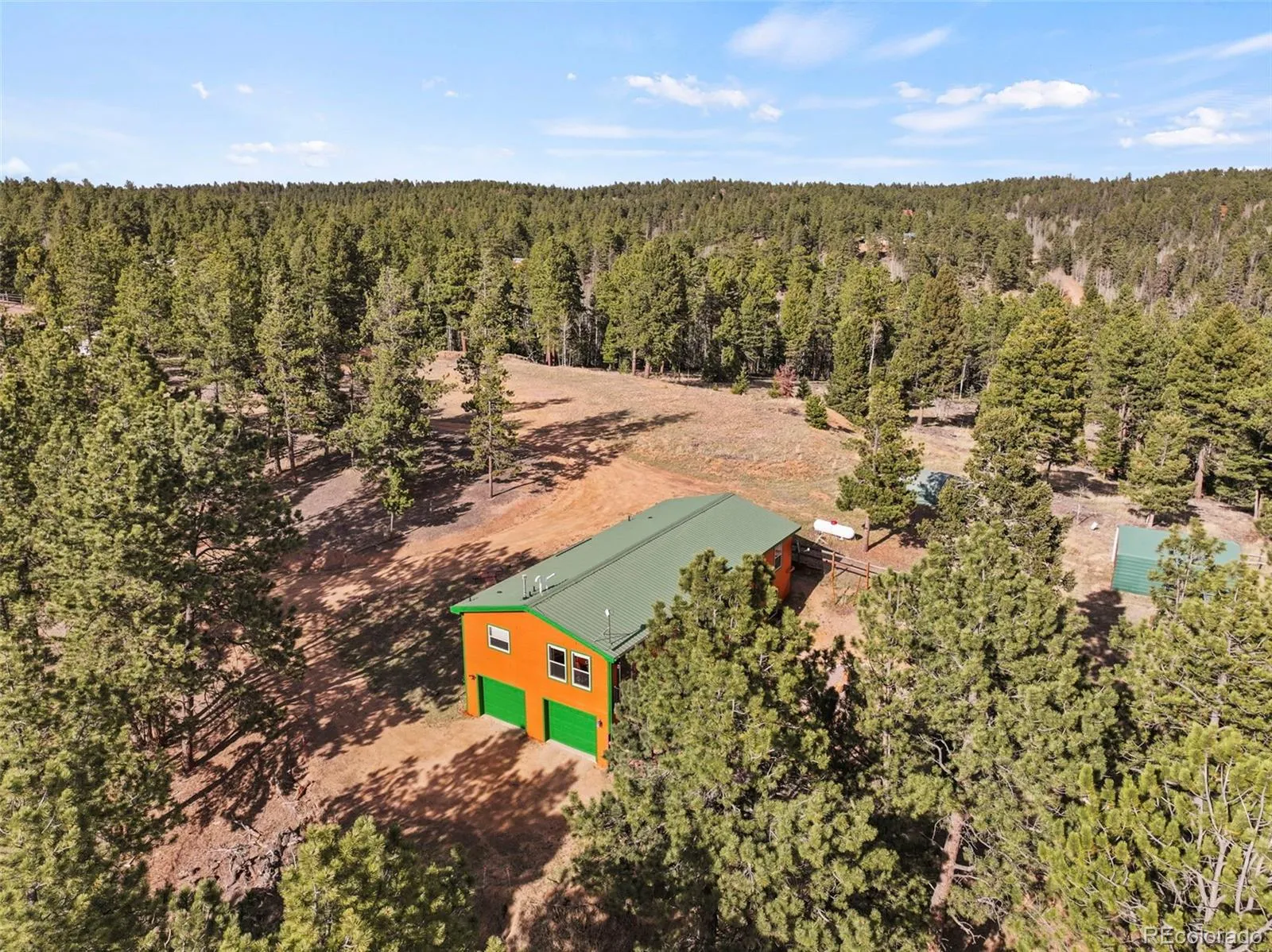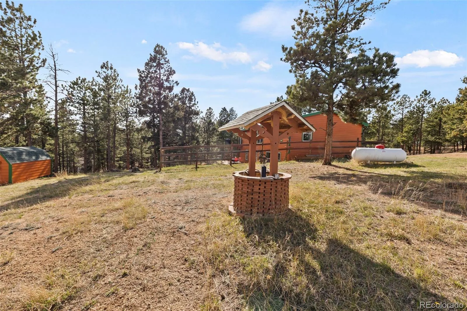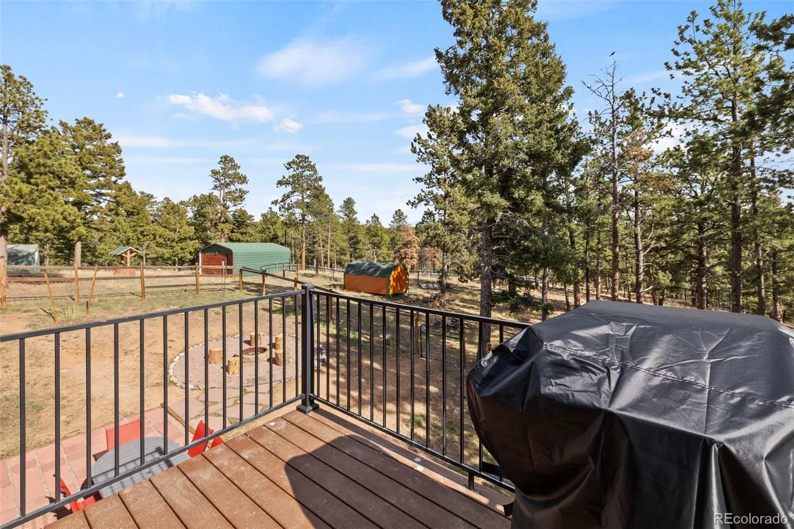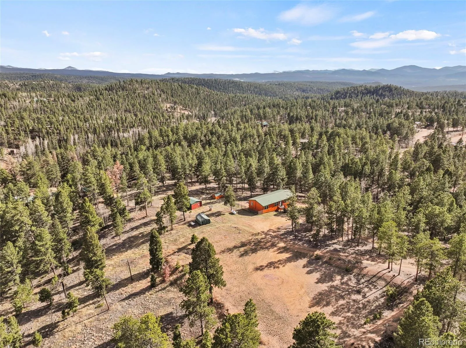 Set on 8.28 fully fenced acres in the Indian Creek area of Divide, this ranch-style home offers Pikes Peak views, usable land, and a mountain setting well suited for horses, animals, or anyone seeking room to spread out. Zoned R-1M and located on a county-maintained road with no HOA or covenants, the property blends privacy, function, and flexibility. A gated driveway leads to the home, where a composite deck and multiple outdoor seating areas create inviting places to take in the views. Fresh interior and exterior paint give the home an updated feel, while vaulted ceilings throughout the main level and abundant natural light enhance the spacious interior. The kitchen features spacious countertops, a breakfast bar, gas range, and generous cabinetry, with a separate dining area for everyday meals or gatherings. The primary suite includes a walk-in closet and a five-piece bath with soaking tub. Two additional bedrooms and a full bath offer flexible space for guests, office use, or everyday living. The unfinished walkout basement expands the possibilities with framing and plumbing already in place for future finishing, whether for added living space, a workshop, hobby area, or storage. Designed with function in mind, the property includes a 20 x 20 loafing shed with tack room, arena, corral, storage shed, garden shed, RV parking, cross fencing, and a strong household well, along with a large level area that offers potential for additional structures. Located about a mile from Pike National Forest and close to riding trails at Mueller State Park and Dome Rock, with nearby fishing, hiking, and mountain biking, this property offers space, views, and versatility in a true Colorado setting.