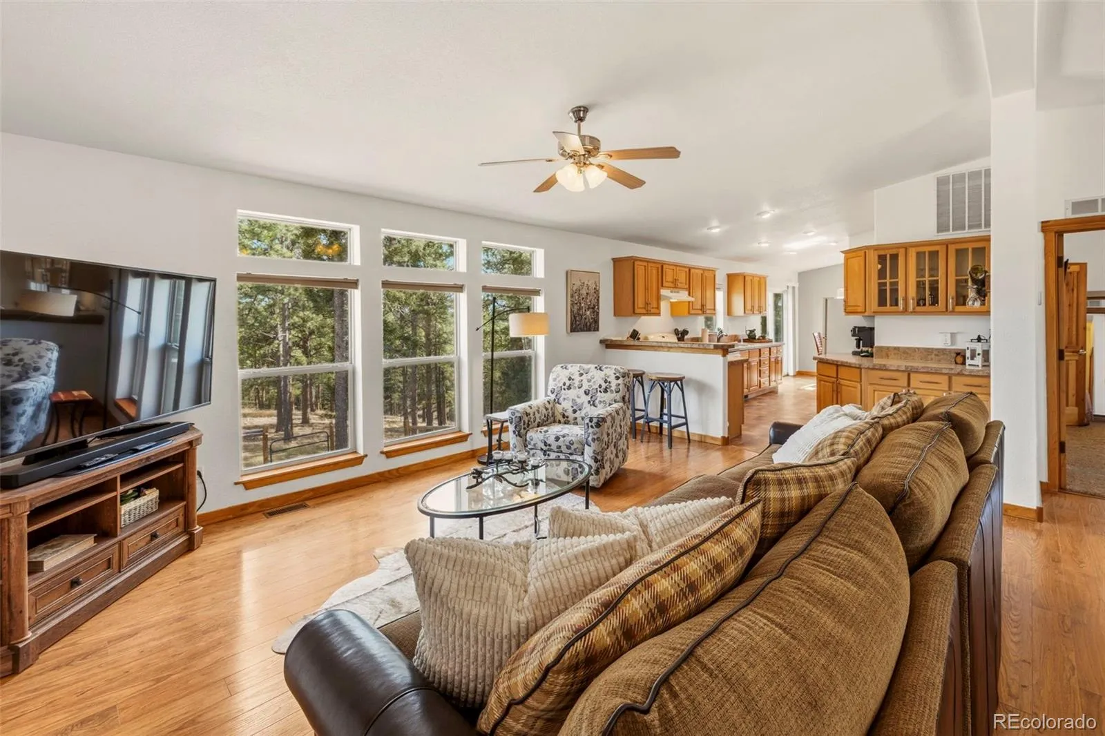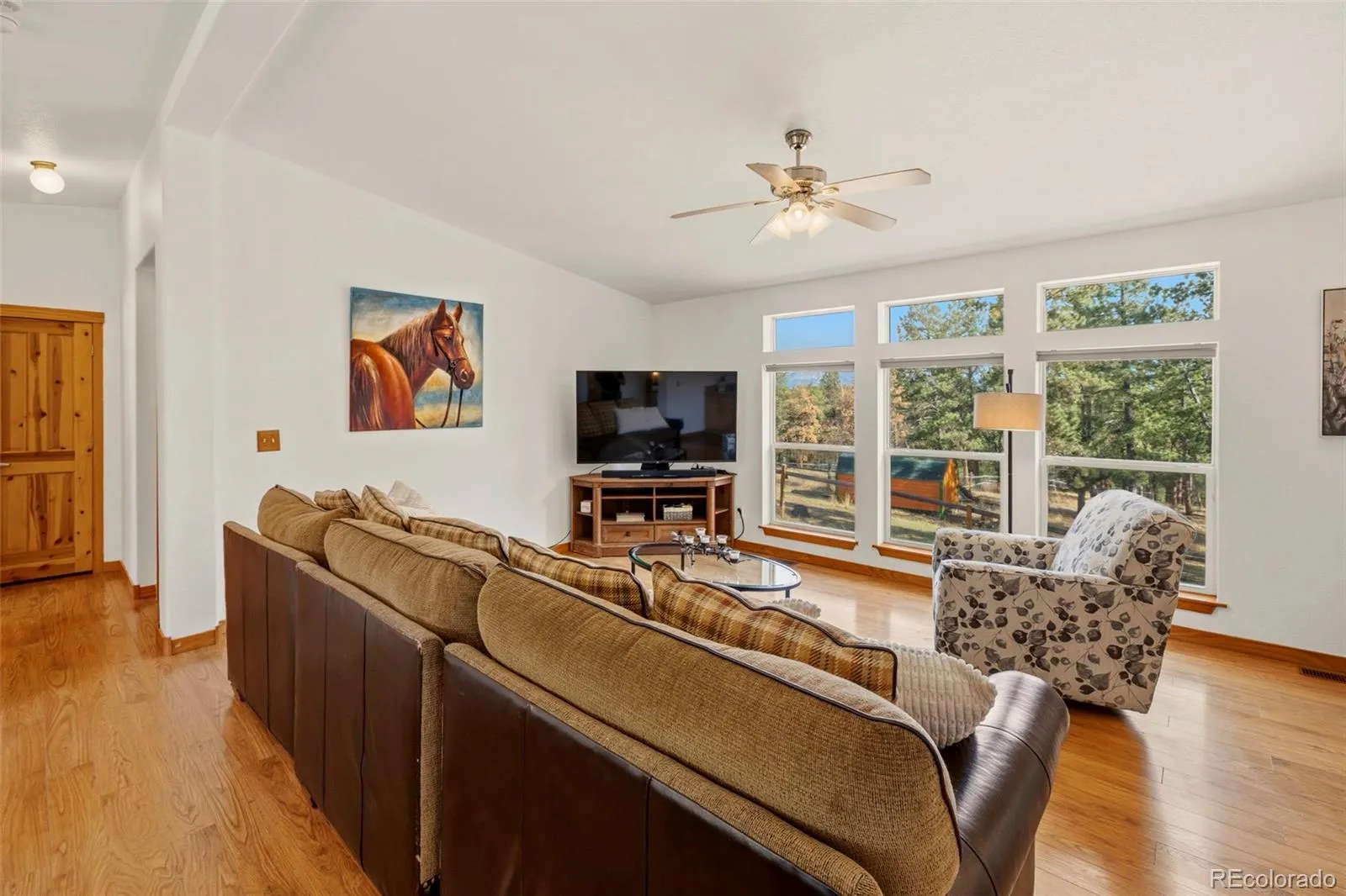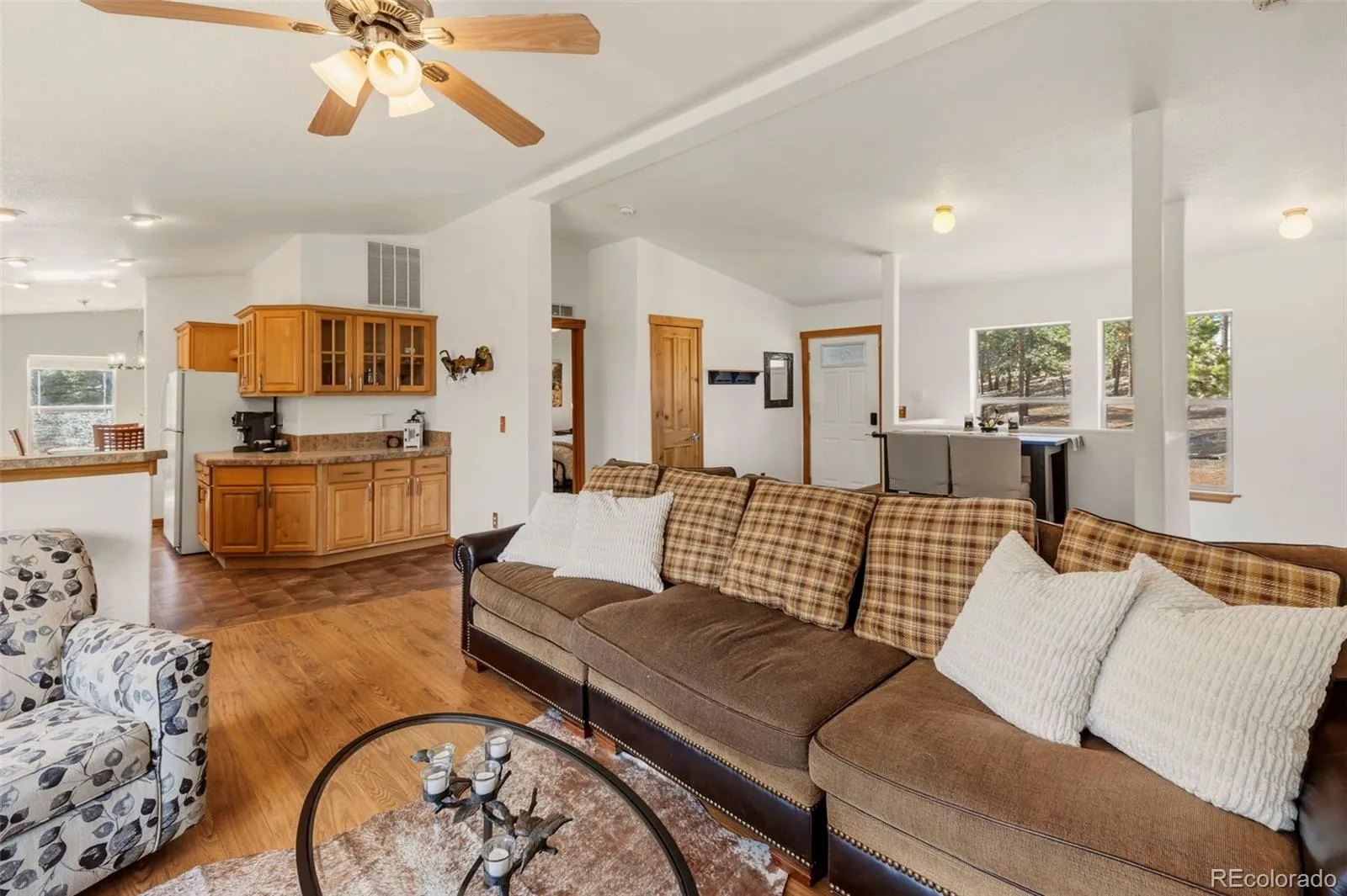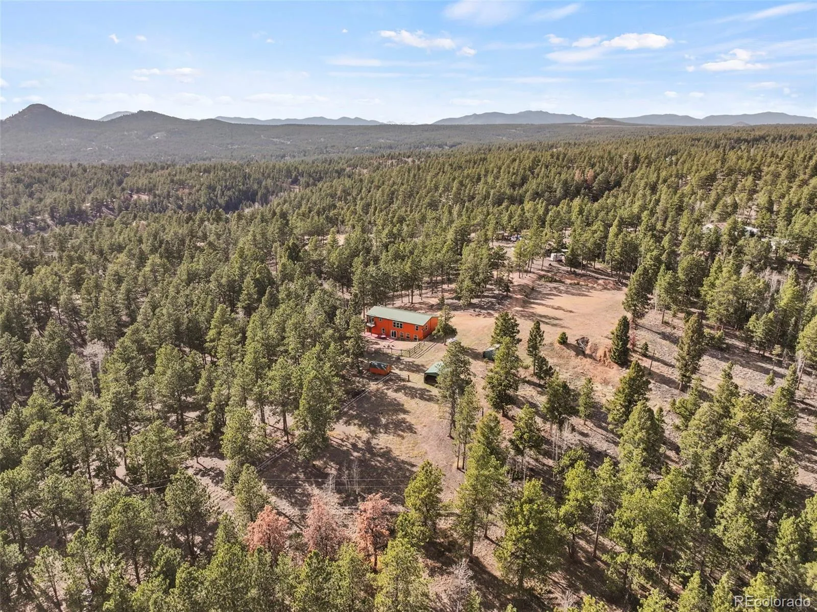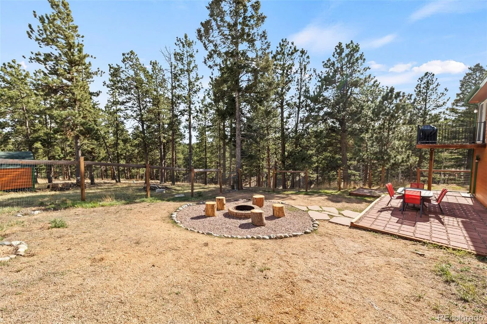 Set on 8.28 fully fenced acres in the Indian Creek area of Divide, this ranch-style home offers Pikes Peak views, usable land, and a mountain setting well suited for horses, animals, or anyone seeking room to spread out. Zoned R-1M and located on a county-maintained road with no HOA or covenants, the property blends privacy, function, and flexibility. A gated driveway leads to the home, where a composite deck and multiple outdoor seating areas create inviting places to take in the views. Fresh interior and exterior paint give the home an updated feel, while vaulted ceilings throughout the main level and abundant natural light enhance the spacious interior. The kitchen features spacious countertops, a breakfast bar, gas range, and generous cabinetry, with a separate dining area for everyday meals or gatherings. The primary suite includes a walk-in closet and a five-piece bath with soaking tub. Two additional bedrooms and a full bath offer flexible space for guests, office use, or everyday living. The unfinished walkout basement expands the possibilities with framing and plumbing already in place for future finishing, whether for added living space, a workshop, hobby area, or storage. Designed with function in mind, the property includes a 20 x 20 loafing shed with tack room, arena, corral, storage shed, garden shed, RV parking, cross fencing, and a strong household well, along with a large level area that offers potential for additional structures. Located about a mile from Pike National Forest and close to riding trails at Mueller State Park and Dome Rock, with nearby fishing, hiking, and mountain biking, this property offers space, views, and versatility in a true Colorado setting.