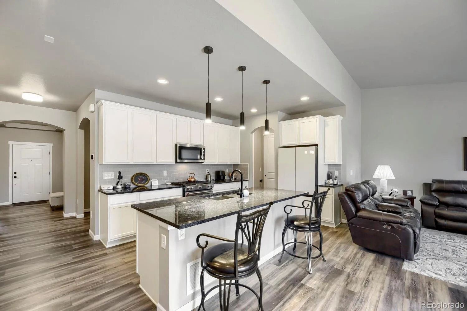 Welcome to Lincoln Creek Village in Parker—where comfort, convenience, and low-maintenance living come together in this beautifully designed ranch-style home. This inviting 2-bedroom, 2 full bath residence offers a thoughtfully laid-out open floor plan ideal for both everyday living and entertaining. The spacious primary suite is a true retreat, featuring a luxurious 5-piece ensuite bath and a large walk-in closet. A second bedroom and full bath provide flexibility for guests or additional living space. The well-appointed kitchen is the heart of the home, complete with a gas cooktop, granite countertops, a large center island with bar seating, and a walk-in pantry. Adjacent is a formal dining space perfect for gatherings, along with a conveniently located office for remote work or study. The expansive family room is warm and welcoming, highlighted by a cozy gas fireplace. Enjoy added convenience with an included washer and dryer in the dedicated laundry area. The full unfinished basement offers endless potential for future expansion or storage, while the attached 2-car garage adds practicality. Ideally situated just a short walk to charming downtown Parker, this home also provides easy access to shopping, dining, medical facilities, and E-470 for seamless commuting. A perfect blend of style, space, and location.