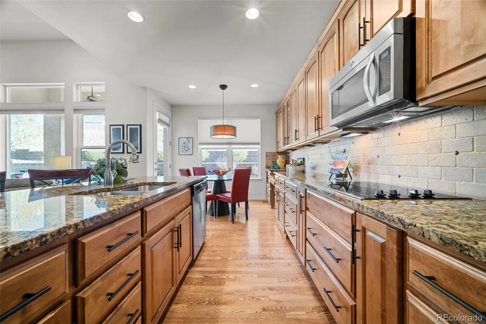 OPEN HOUSE 5/2/2026 – 11-2 – Experience Colorado living in this exceptional Remington-built ranch, nestled in coveted Wild Grass of Whisper Creek. Perfectly positioned, backing to open space, this residence offers a rare blend of privacy and effortless, maintenance-free living. The home’s stone-accented façade, professionally curated landscaping and inviting covered patios, set the tone for what lies within. Inside, an open-concept design unfolds with soaring ceilings, elegant architectural details and a seamless flow designed for both intimate living and grand entertaining. A chef-inspired kitchen—rich with detail and function—featuring 42” maple cabinetry with crown molding, granite countertops, double ovens and an huge island for great entertaining. Thoughtful touches including a walk-in pantry, high ceiling and a sunlit breakfast nook. Anchoring the home, the great room complete with a stacked stone fireplace wall with built-in shelving and art niche. A wall of windows frames the tiered walls and open space view. The primary suite offers a peaceful escape with a spa-inspired en-suite bath and a walk-in closet designed for two. Secondary bedroom provides flexibility for guests or a private office. Outside is your private sanctuary, with a multi-level stamped concrete patio, southern exposure and speakers that create the perfect setting for morning coffee, or quiet relaxation under Colorado evening skies. Mature landscaping and strategically placed evergreens enhance both beauty and privacy. The expansive lower level offers endless possibilities, already enhanced with a stylish ¾ bath and multiple egress windows. Completing the home is an oversized, finished 2-car garage. Set within one of West Arvada’s most desirable communities, this home offers scenic trails, parks, community pool and a lock-and-leave lifestyle – minutes from Olde Town Arvada, Golden, Boulder and Denver. This is more than a home—it’s a lifestyle defined by quality, comfort, and timeless design.