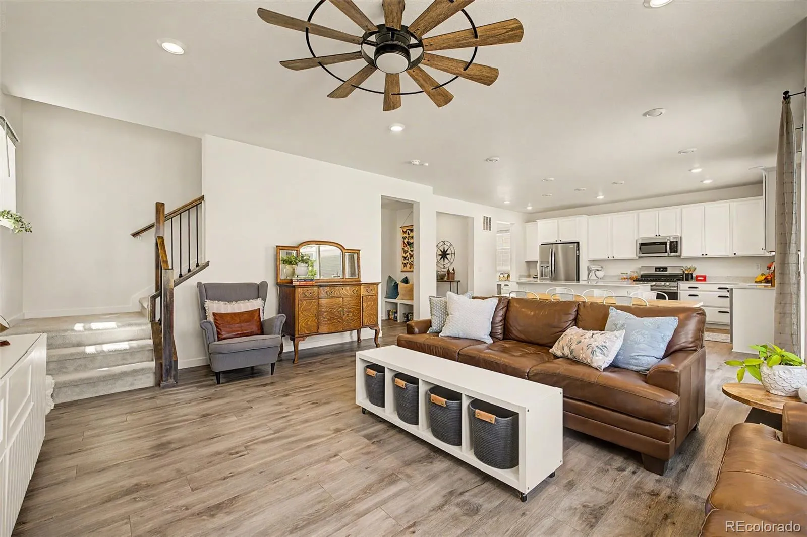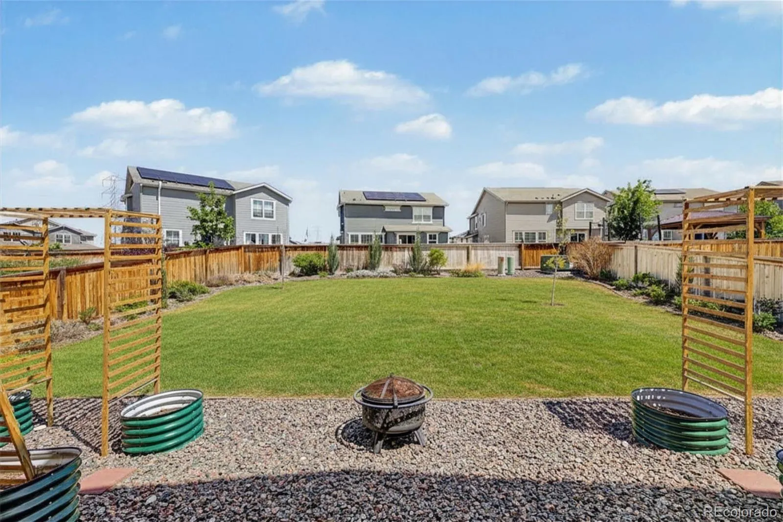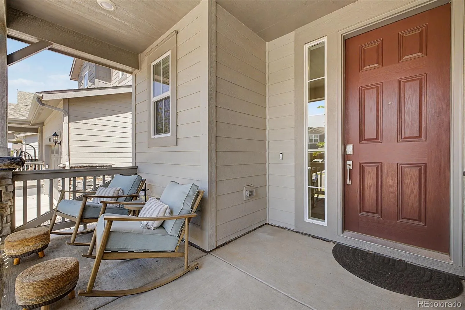 Stunning 2022-built two-story in sought-after Reunion Ridge, loaded w/ designer upgrades, smart-home tech & a beautifully landscaped yard built for entertaining. Step inside to durable LVP flooring across an open-concept main level where a chef-inspired kitchen flows into the dining & living room w/ stylish ceiling fan. Kitchen showcases a Frigidaire fridge, 5-burner gas stove, dishwasher, deep undermount sink, gooseneck faucet & large center island. A media room off the kitchen doubles as a home office, while a walk-in pantry, half bath off the entry, mudroom & coat closet w/ bench provide direct access to the garage & basement. Upstairs, plush carpet leads to a spacious loft & three bedrooms — all w/ ceiling fans — including a secondary bedroom w/ sweeping views of downtown Denver, the community park & Front Range mountains, perfect for catching 4th of July & NYE fireworks. The oversized primary suite offers an en suite 3/4 bath w/ window, double vanity, tile floors & walk-in closet. A full hall bath w/ double sinks, linen closet & laundry room w/ GE washer/dryer round out the upper level. The large, unfinished daylight basement w/ sump pump offers endless potential. Outside, the yard features Vego raised garden beds & planters (all included!), Skyrocket Juniper, Dwarf Korean Lilac, Popcorn Roses, Stella de Oro Day Lily, Lamb’s Ear, Blonde Ambition Grass, Lavender, Blue Salvia, Moonbeam Coreopsis, Winecup, Ice Plant, Dwarf Butterfly Bush, honey locust & Siberian maple trees. 2-car garage w/ EV charger hookup, 220V & sprinkler box. Leased Sunstrong solar feeds back to the main panel for lower bills — no battery needed. Includes Simplisafe alarm, smart locks, video doorbell & water leak sensor. Reunion amenities include a pool, clubhouse, fitness center, seasonal pond & three community parks w/ a playground visible from the front porch. Just a 20-min drive or bus ride to DIA, w/ quick access to E-470, I-76 & the Rocky Mountain Arsenal Wildlife Refuge.