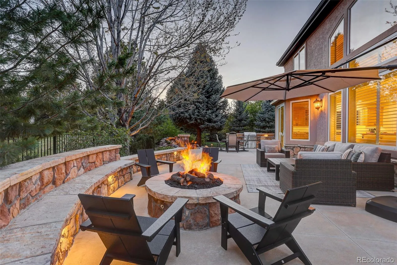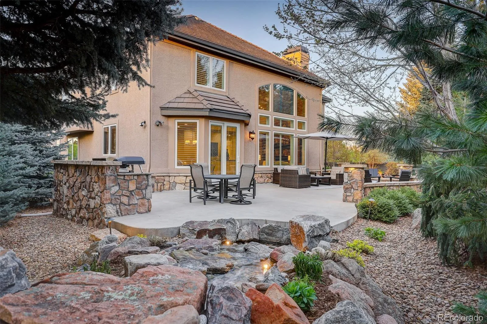 Tucked at the end of a quiet cul-de-sac within the gated community of Heritage Hills, this impeccably maintained residence offers a refined blend of architectural presence, comfort, and timeless design. A dramatic staircase and soaring entry introduce more than 5,200 finished square feet of light-filled living space thoughtfully designed for both elegant entertaining and everyday living. The main level features formal living and dining rooms, an inviting family room with a gas fireplace, and a private study. The kitchen is both functional and sophisticated, appointed with Viking appliances, expansive granite countertops, generous cabinetry, and a seamless connection to the surrounding living areas. The upper level is highlighted by a luxurious primary suite with a gas fireplace, walk-in closet, and spa-inspired bath featuring a soaking tub and walk-in shower. A private guest suite with a ¾ bath and two additional bedrooms connected by a Jack-and-Jill bath complete the level. The finished basement has been reimagined as an entertainer’s retreat with a quartz island, wet bar, built-in wine and beverage refrigerator, theater area with dimmable lighting, fitness room, gas fireplace, and an additional guest suite with a steam shower. Outdoors, the backyard unfolds into a serene, park-like setting framed by mature trees, offering exceptional privacy. Designed for intimate relaxation and elegant gatherings, it features a spacious patio, outdoor kitchen, fire pit, and tranquil water feature for year-round enjoyment. Additional highlights include a three-car garage with EV charging. Residents of Heritage Hills enjoy access to a private clubhouse, two pools, tennis and pickleball courts, playgrounds, sports fields, and miles of sidewalks, all conveniently located near I-25, C-470, Park Meadows, Bluffs Regional Park, Sky Ridge Medical Center, the Charles Schwab campus, and light rail. This is your opportunity to own a home in one of the area’s most distinguished communities.