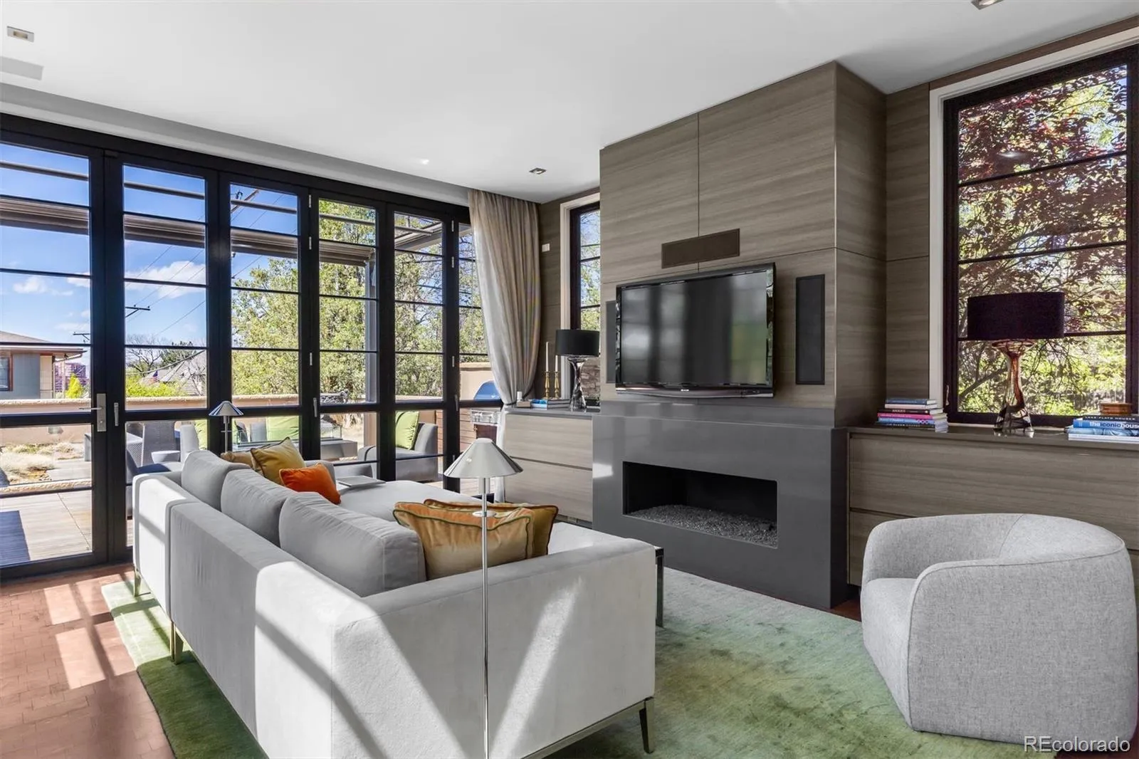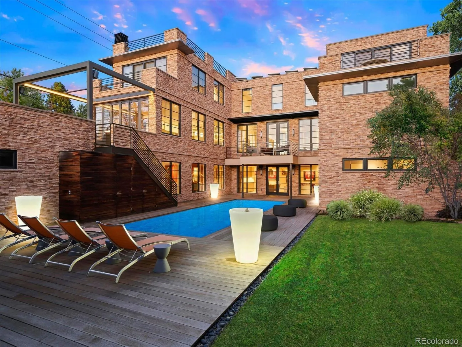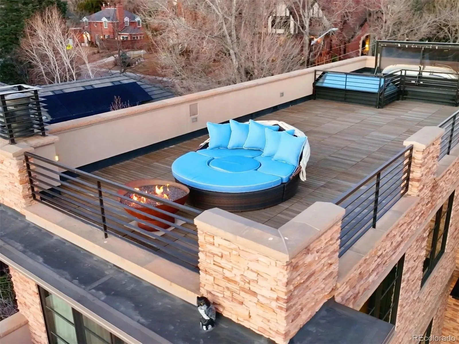 Perched on a premier hilltop site, this exceptional modern residence showcases breathtaking mountain views, an elegant Eldorado stone exterior, and cutting-edge design throughout. Built by BOA Construction with architecture by Design Associates, this custom home offers 5,599 SF of refined living space featuring 5 bedrooms, 3.5 baths, and seamless indoor-outdoor living. Walls of Marvin windows flood the home with natural light, highlighting stunning walnut block flooring, soaring vaulted ceilings, and designer finishes. The thoughtfully designed kitchen is a true centerpiece, featuring Caesarstone counters, top-tier Miele, Thermador, and Bosch appliances, induction cooking, double ovens, and sleek automated cabinetry. Entertain effortlessly with a full bar offering Sub-Zero wine and beverage refrigeration, plus expansive living and dining areas anchored by dramatic gas fireplaces. Luxury amenities include an elevator servicing all levels, high-velocity HVAC, spray foam insulation, and a fully integrated entertainment and Vantage lighting system. The walkout lower level is an entertainer’s dream with a game/media room, fitness studio, guest suites, and direct pool access. Retreat to the private primary suite with its own deck, spa-inspired bath with heated floors and skylit shower, and a boutique-style closet with custom island. A secured home office with built-ins and biometric access adds convenience and privacy. Outdoor living is unmatched with 5 view decks, 3 fire pits, rooftop lounge with panoramic Front Range and city views, and a resort-style pool with new heater and cover. Additional highlights include heated garages (attached & detached), electric gated parking court, solar panels (owned), smart security system, and premium Eldorado stone exterior. A rare opportunity to own a truly one-of-a-kind luxury home combining innovation, privacy, and spectacular Colorado scenery.