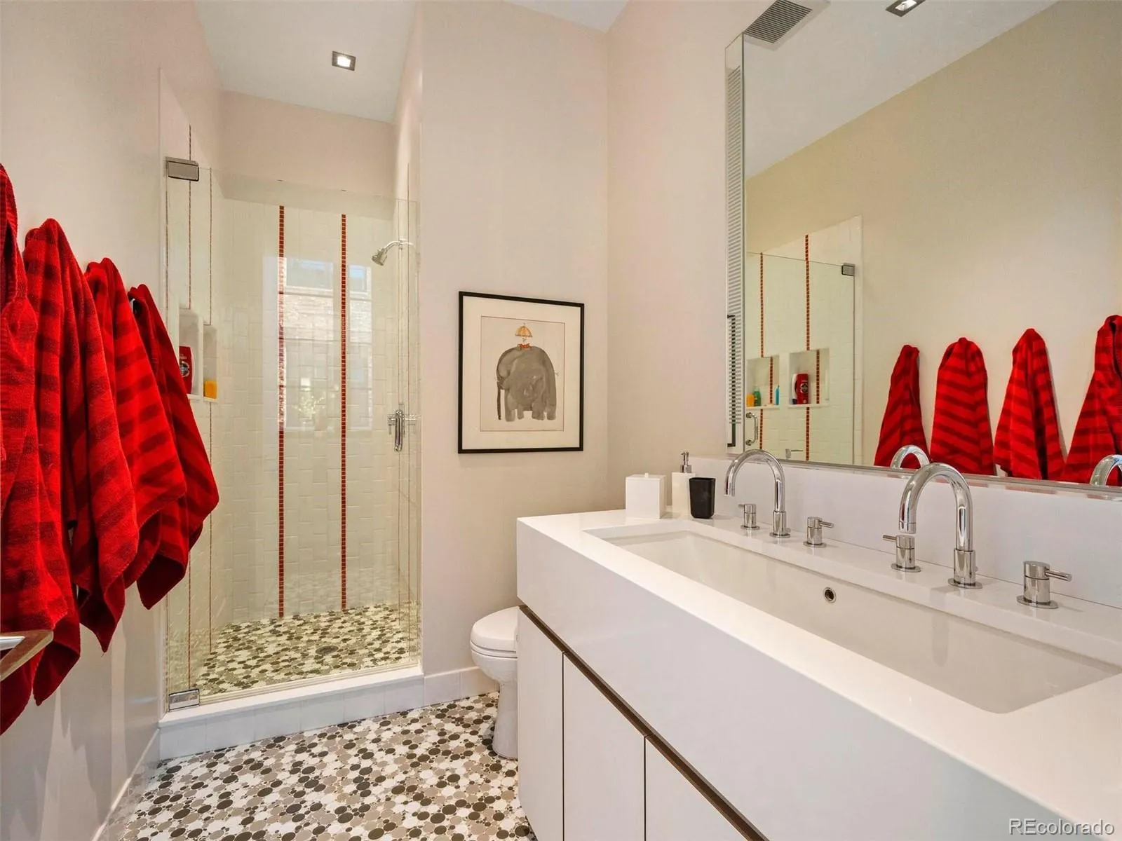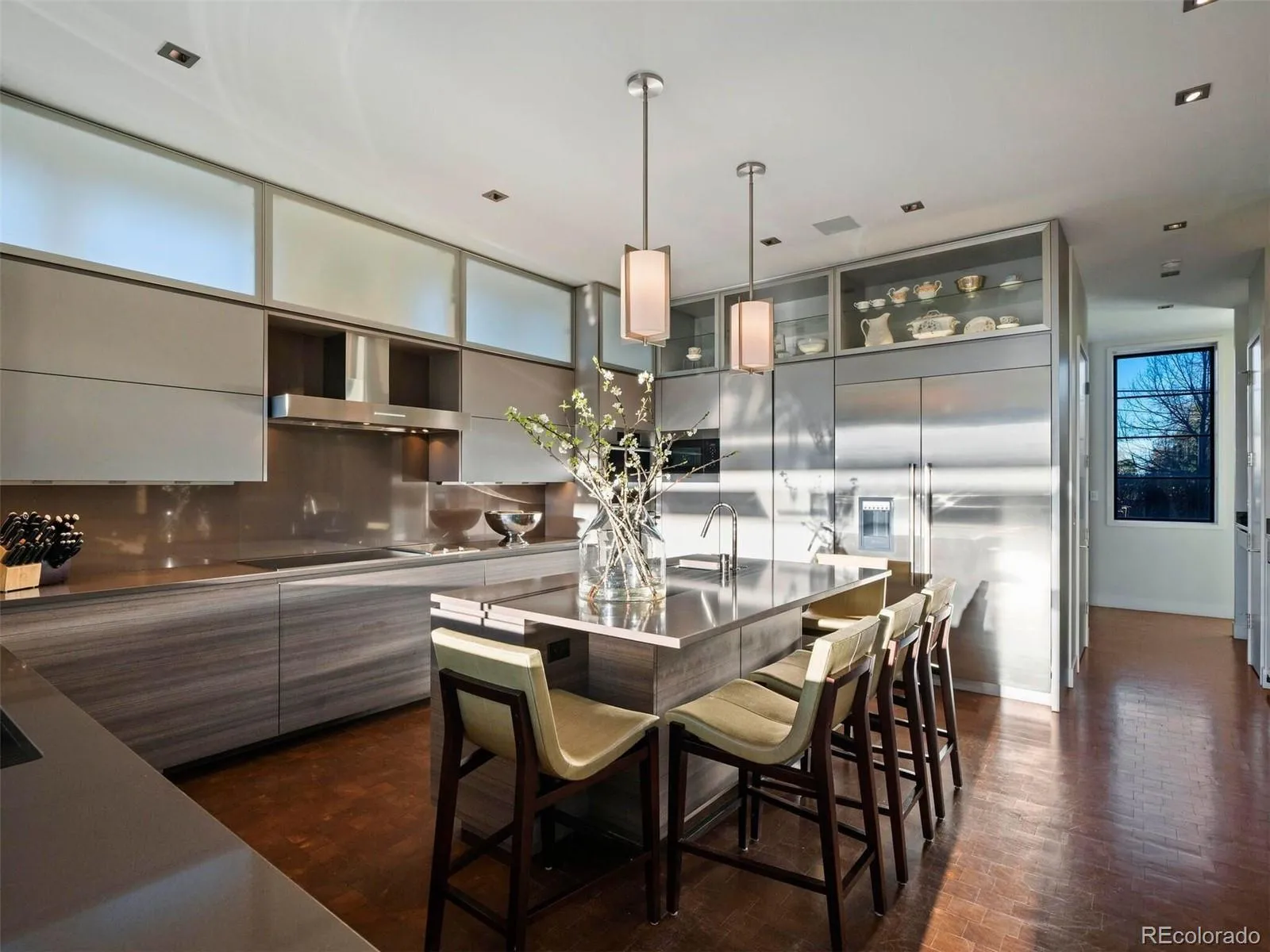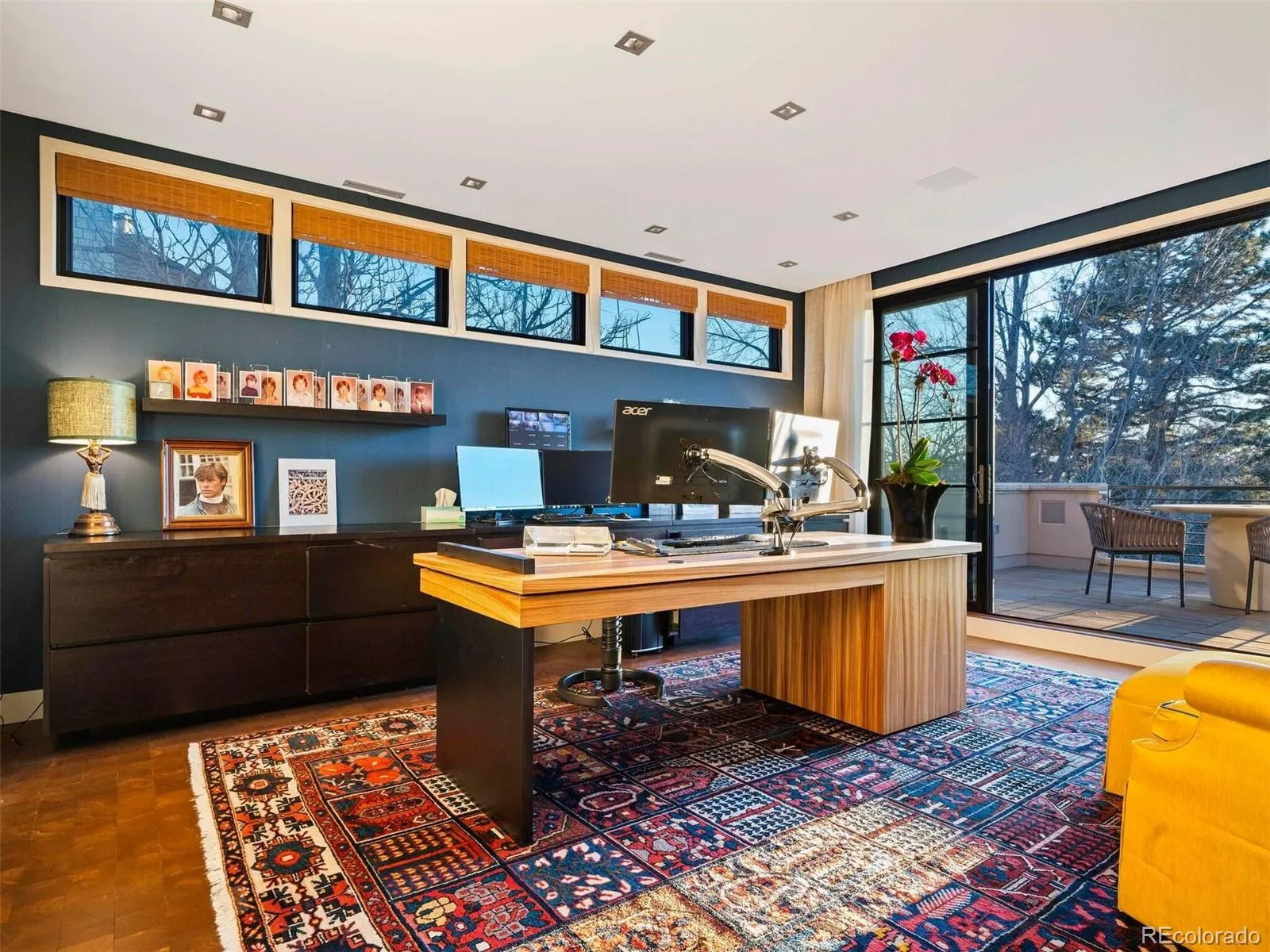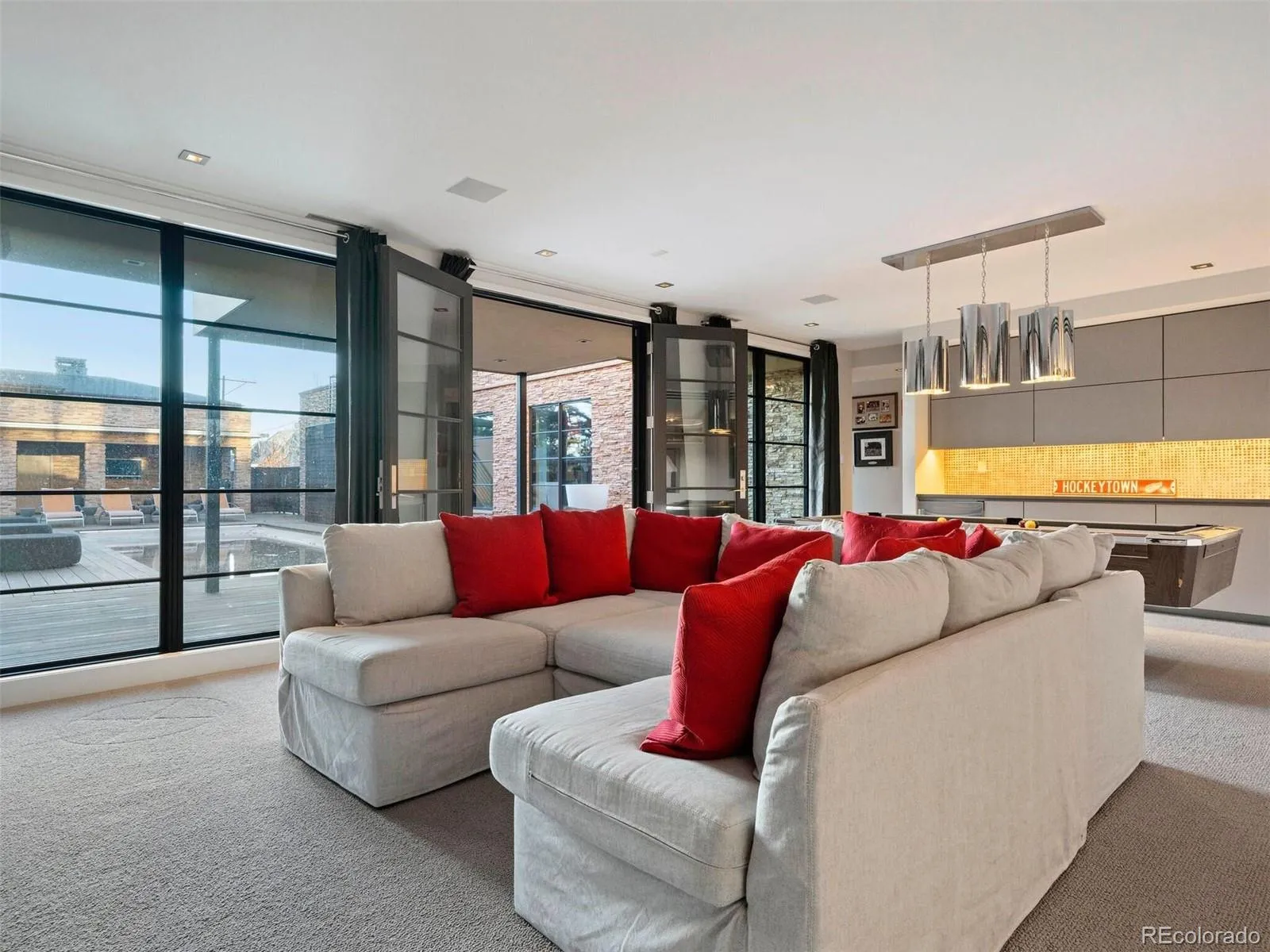 Perched on a premier hilltop site, this exceptional modern residence showcases breathtaking mountain views, an elegant Eldorado stone exterior, and cutting-edge design throughout. Built by BOA Construction with architecture by Design Associates, this custom home offers 5,599 SF of refined living space featuring 5 bedrooms, 3.5 baths, and seamless indoor-outdoor living. Walls of Marvin windows flood the home with natural light, highlighting stunning walnut block flooring, soaring vaulted ceilings, and designer finishes. The thoughtfully designed kitchen is a true centerpiece, featuring Caesarstone counters, top-tier Miele, Thermador, and Bosch appliances, induction cooking, double ovens, and sleek automated cabinetry. Entertain effortlessly with a full bar offering Sub-Zero wine and beverage refrigeration, plus expansive living and dining areas anchored by dramatic gas fireplaces. Luxury amenities include an elevator servicing all levels, high-velocity HVAC, spray foam insulation, and a fully integrated entertainment and Vantage lighting system. The walkout lower level is an entertainer’s dream with a game/media room, fitness studio, guest suites, and direct pool access. Retreat to the private primary suite with its own deck, spa-inspired bath with heated floors and skylit shower, and a boutique-style closet with custom island. A secured home office with built-ins and biometric access adds convenience and privacy. Outdoor living is unmatched with 5 view decks, 3 fire pits, rooftop lounge with panoramic Front Range and city views, and a resort-style pool with new heater and cover. Additional highlights include heated garages (attached & detached), electric gated parking court, solar panels (owned), smart security system, and premium Eldorado stone exterior. A rare opportunity to own a truly one-of-a-kind luxury home combining innovation, privacy, and spectacular Colorado scenery.