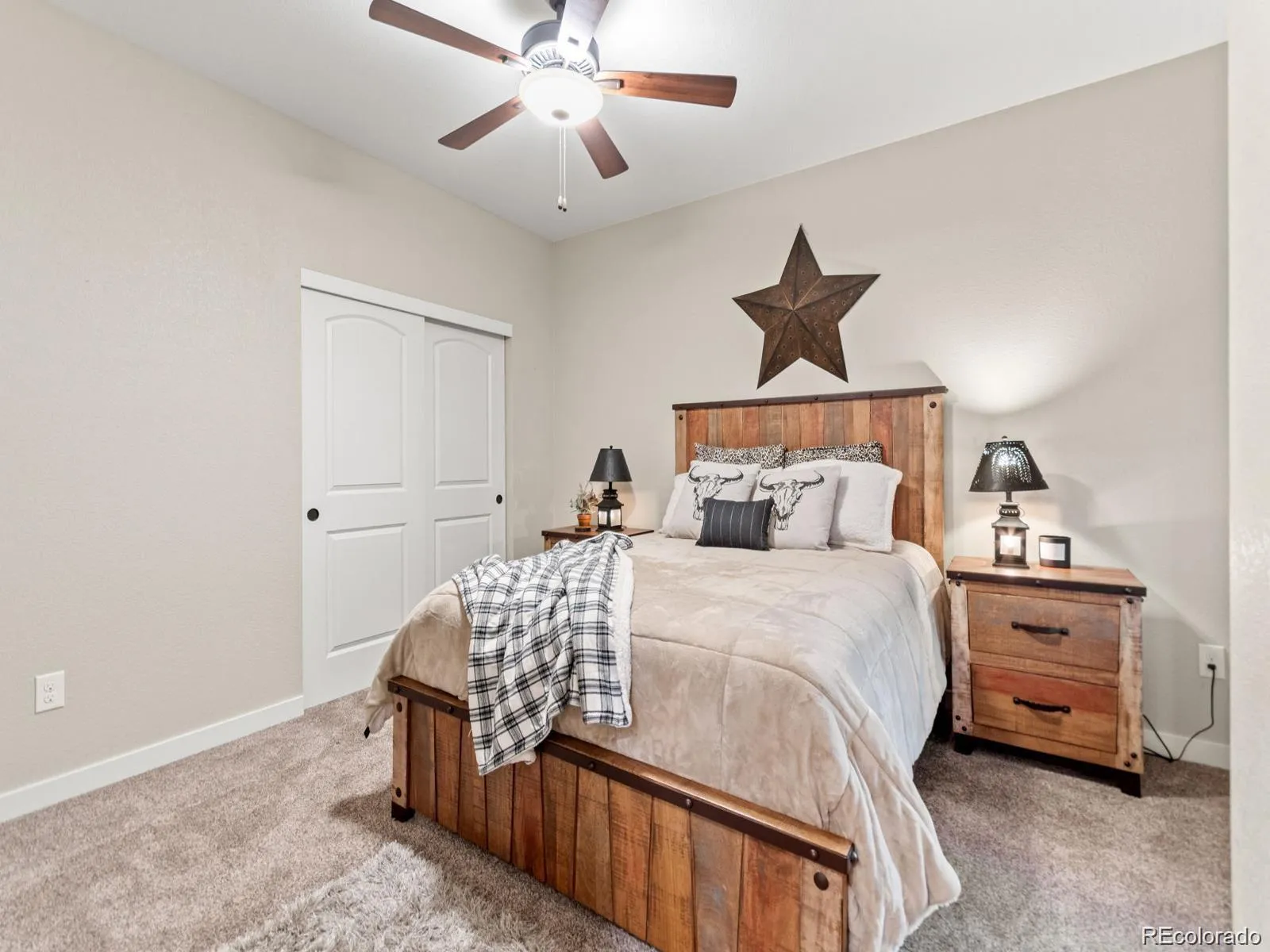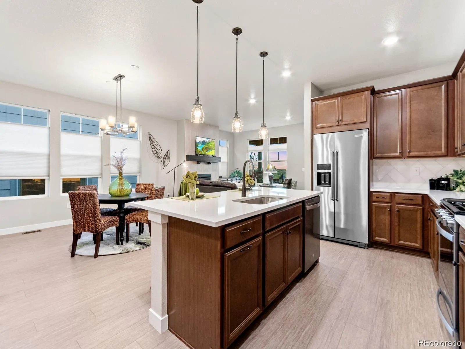 Rare Find in The Canyons! This immaculate, low-maintenance ranch-style home offers the perfect blend of comfort, luxury, and easy living. With three bedrooms and two bathrooms, the home features luxury vinyl plank flooring on the main living areas and upgraded carpet in the bedrooms. The open-concept layout is anchored by a stunning kitchen featuring quartz countertops and rich truffle cabinetry, along with a generous island—ideal for both entertaining and everyday living. An inviting gas fireplace in the great room is the perfect space for relaxing. The private primary suite showcases a spa-inspired bathroom with dual sinks, an oversized shower, and a large walk-in closet. Enjoy serene Colorado evenings on the covered front porch. The backyard is beautifully landscaped, featuring low-maintenance professional turf, a spacious patio, and a setting near the community lake. A large unfinished basement with rough in plumbing provides room to expand. Life in the Canyons provides a resort lifestyle with access to exceptional amenities, including a resort-style pool, state-of-the-art fitness center, the Exchange coffee house, and the Canyon House—featuring a full-service restaurant, bar, and vibrant community space. Miles of scenic trails, thoughtfully designed parks, and dynamic outdoor areas. Dropped below market!