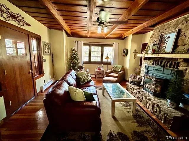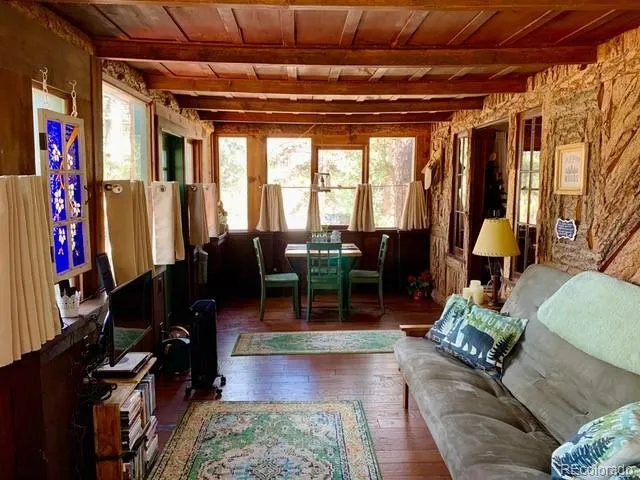 No need to journey through the wardrobe to find this magical 1929 Green Mountain Falls cabin that has been fully updated behind the walls and beneath the floors (electrical, water, plumbing, septic, etc) while keeping its original Pikes Peak Colorado mountain warmth. Narnia on Pikes Peak has served as a successful and award winning year round short term vacation rental since 2019. From the moment you walk through the front door into a welcoming 24’ x 10’ sunroom with its own pellet stove, you will feel the care that has been taken to maintain this charming property. From the sunroom, you will step through the original exterior door into the living room where you are greeted by the 1929 stone fireplace (updated with a gas insert) and original woodwork and windows. The downstairs bedroom and primary bath all carry the carefully maintained history of its original build. From the fully updated eat-in kitchen — with its own new gas fireplace, journey up the bookend stairway to the lovely attic bedroom and office space. Of note: furnishings in Narnia have been carefully curated and may be negotiated at the time of sale. Every system has been updated or replaced..new septic, electrical and plumbing.
