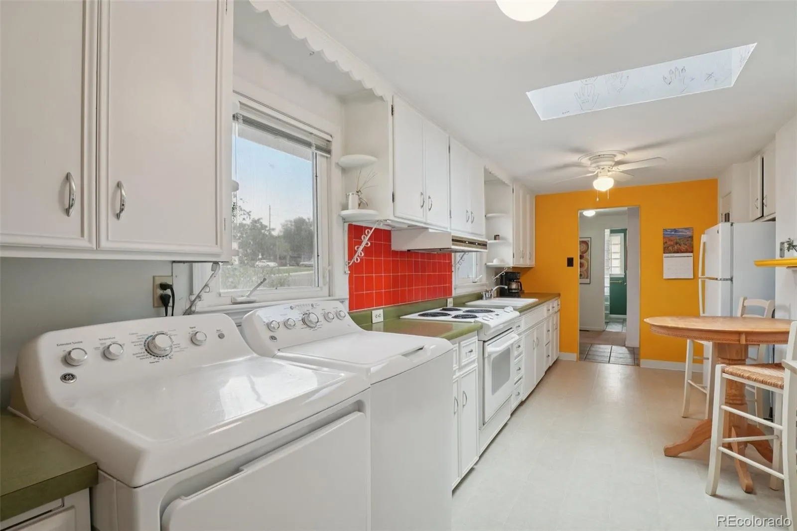 Full of antique charm and thoughtful updates, 1110 S Quitman Street offers 999 sq ft of well-designed living space on a spacious lot. This 2-bedroom, 1-bath home blends vintage character with modern livability, featuring original arched doorways, coved ceilings, and hardwood floors that beautifully reflect its 1950s roots.Natural light fills the eat-in kitchen, where a large skylight brightens the space and vintage cabinetry adds nostalgic appeal. The living and dining areas flow seamlessly together, while a hallway lined with built-in drawers and cabinets provides smart, functional storage. Both bedrooms are comfortable and inviting, with one showcasing a built-in vanity-an iconic touch of mid-century design.Step outside to your own private retreat, complete with fresh landscaping and mature trees. The detached workshop offers the perfect space for tools, hobbies, or creative projects, while the attached tandem garage includes a built-in workbench and access to a hidden concrete pad for additional off-alley parking.Located just blocks from Garfield Lake Park, you’ll enjoy easy access to trails, playgrounds, and open green space, all while being close to Denver’s dining, shopping, and everyday conveniences.With its timeless style, functional layout, and peaceful setting, this lovingly maintained home is a rare opportunity in a desirable Denver location.