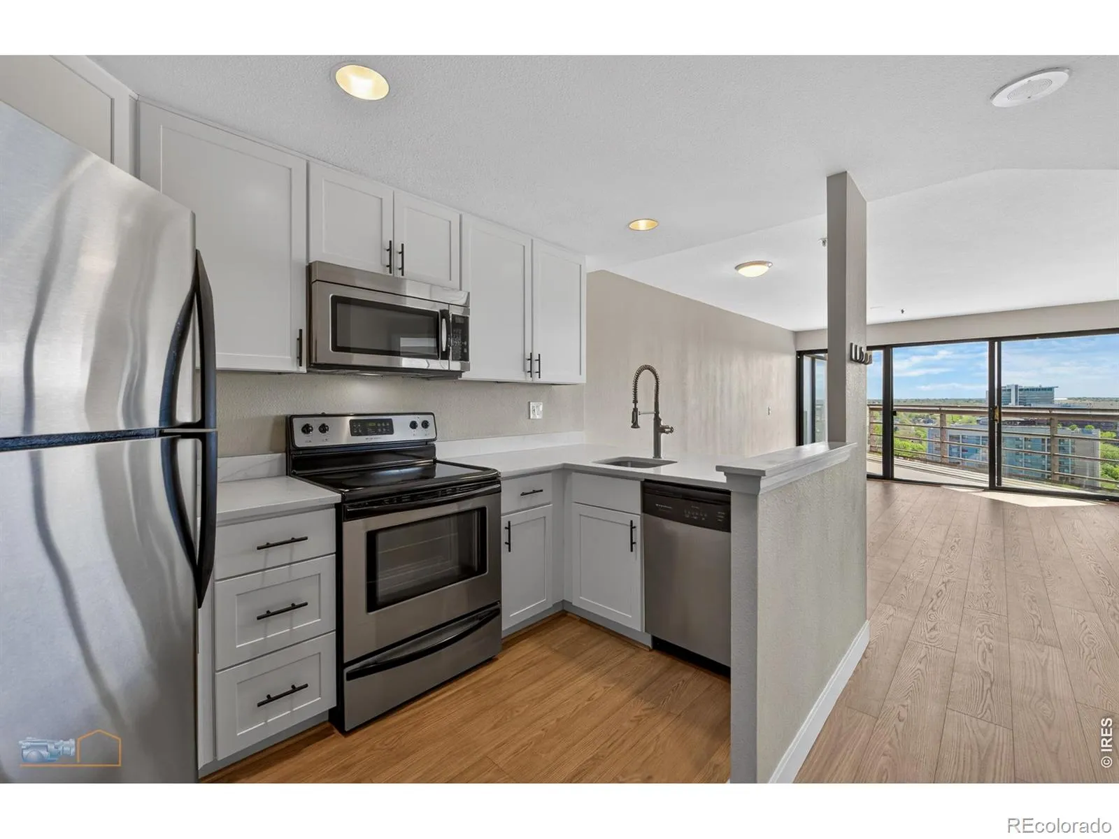 FABULOUS LOCATION IN UPTOWN! With views of the City of Denver from the balcony, this one bedroom/one bathroom condo is not only move in ready but has everything you need for city living! Kitchen is well appointed with new quartz countertops, new cabinets and stainless steel appliances. New luxury vinyl has been installed in all living areas with carpet in the bedroom. Bathroom has new quartz countertops and tile flooring. Unit has clothes washer and clothes dryer. Located in a secure building with on site management, this building has amazing amenities with fitness center, heated outdoor pool with gas BBQ grills, newly remodeled lounge/event space area with kitchen, business center, meeting area, dedicated dog park area, dog wash facility and secure package room. One parking space underground is included and even a dedicated storage space. Walkability is fantastic with restaurants like Coperta and Steubens nearby as well as Safeway and Benedict Fountain Park. This one will check off all the boxes for your buyer in a central location in Denver!