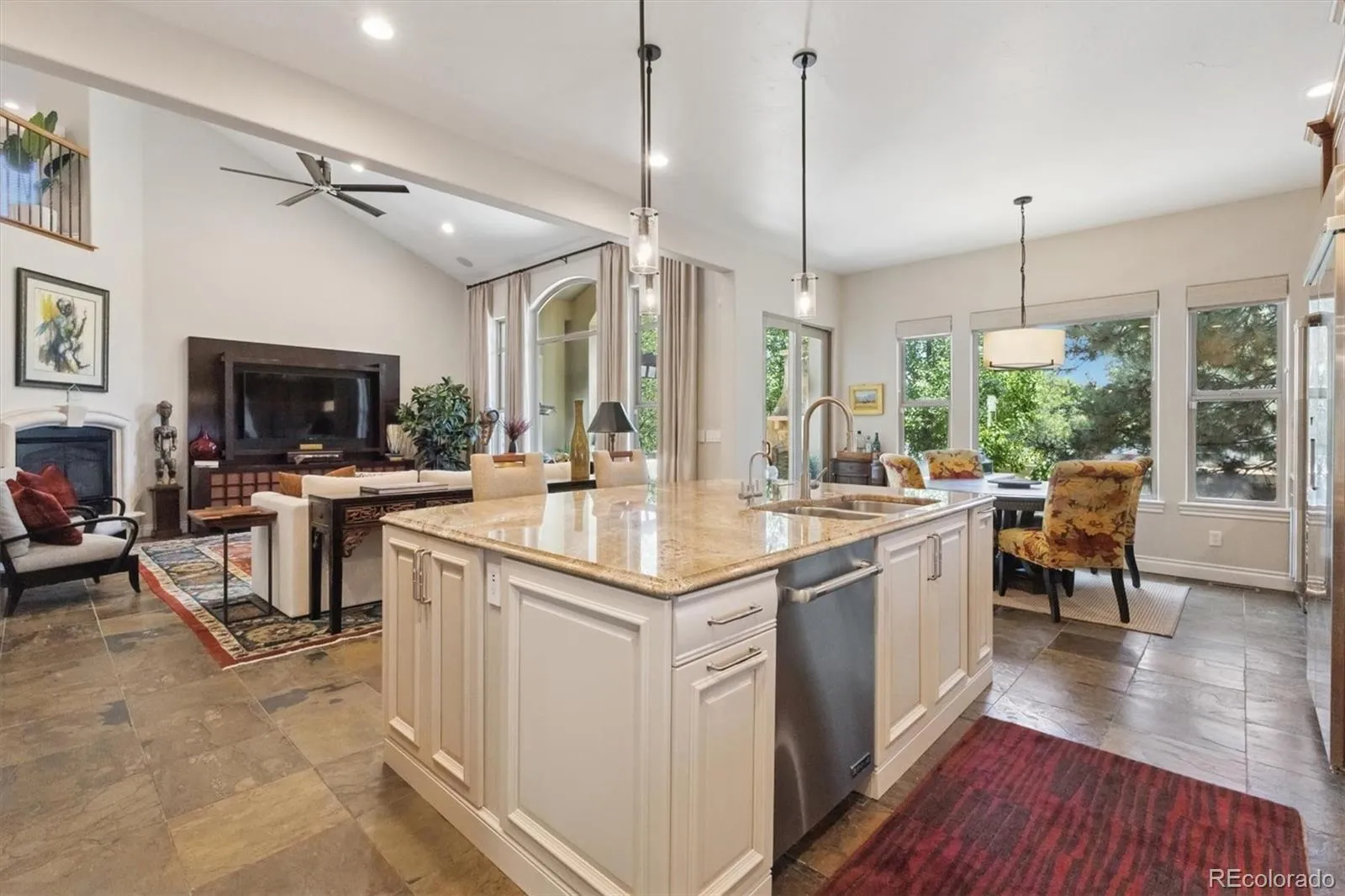 Experience the best of low-maintenance luxury living in this stunning patio home, ideally located just a short golf cart ride from the prestigious Columbine Country Club. Enjoy the convenience of being within walking distance to downtown Littleton, where charming shops, local restaurants, and a vibrant community atmosphere await. For outdoor enthusiasts, the nearby Platte River Trail offers miles of scenic paths for walking, running, or biking—bringing nature right to your doorstep. Built by Sheffield Homes, this beautifully designed residence features an open-concept floor plan that blends comfort and style. Vaulted ceilings and quality finishes create a warm, inviting ambiance throughout. The main floor offers a spacious primary suite, private study, convenient laundry room, and an expansive great room that flows seamlessly into the chef’s kitchen—perfect for both entertaining and everyday living.