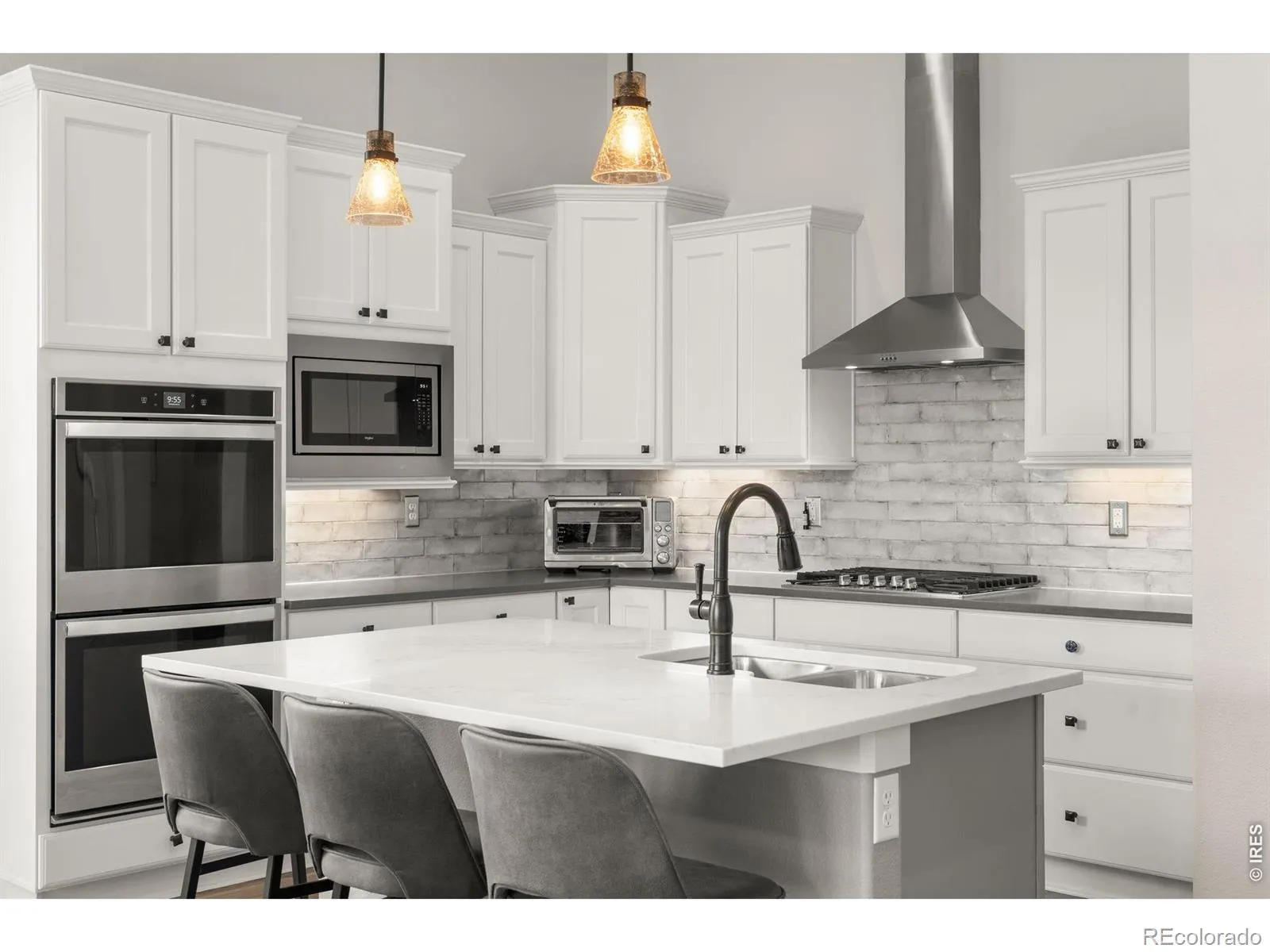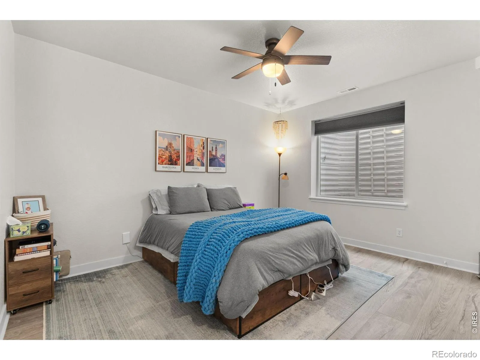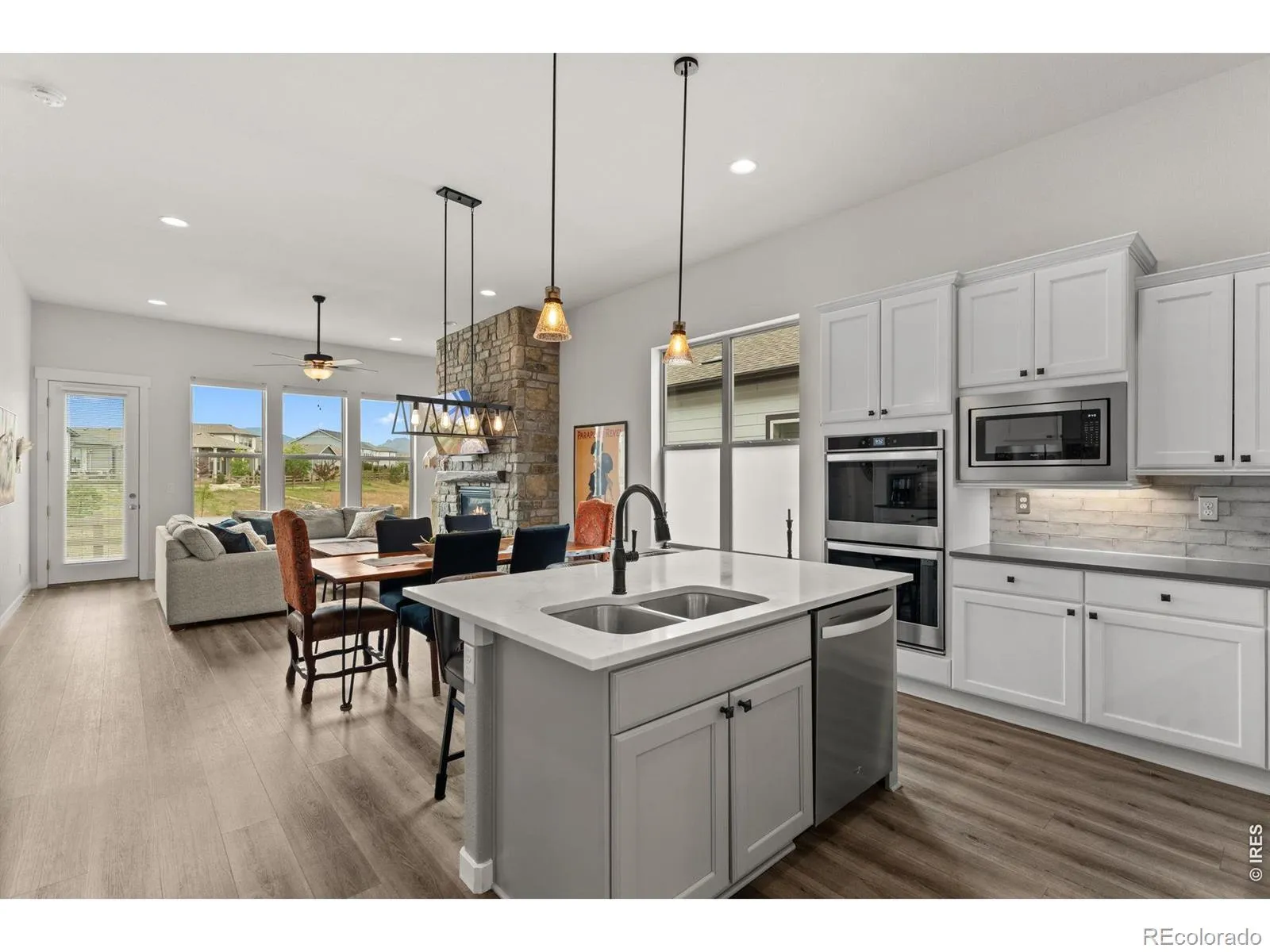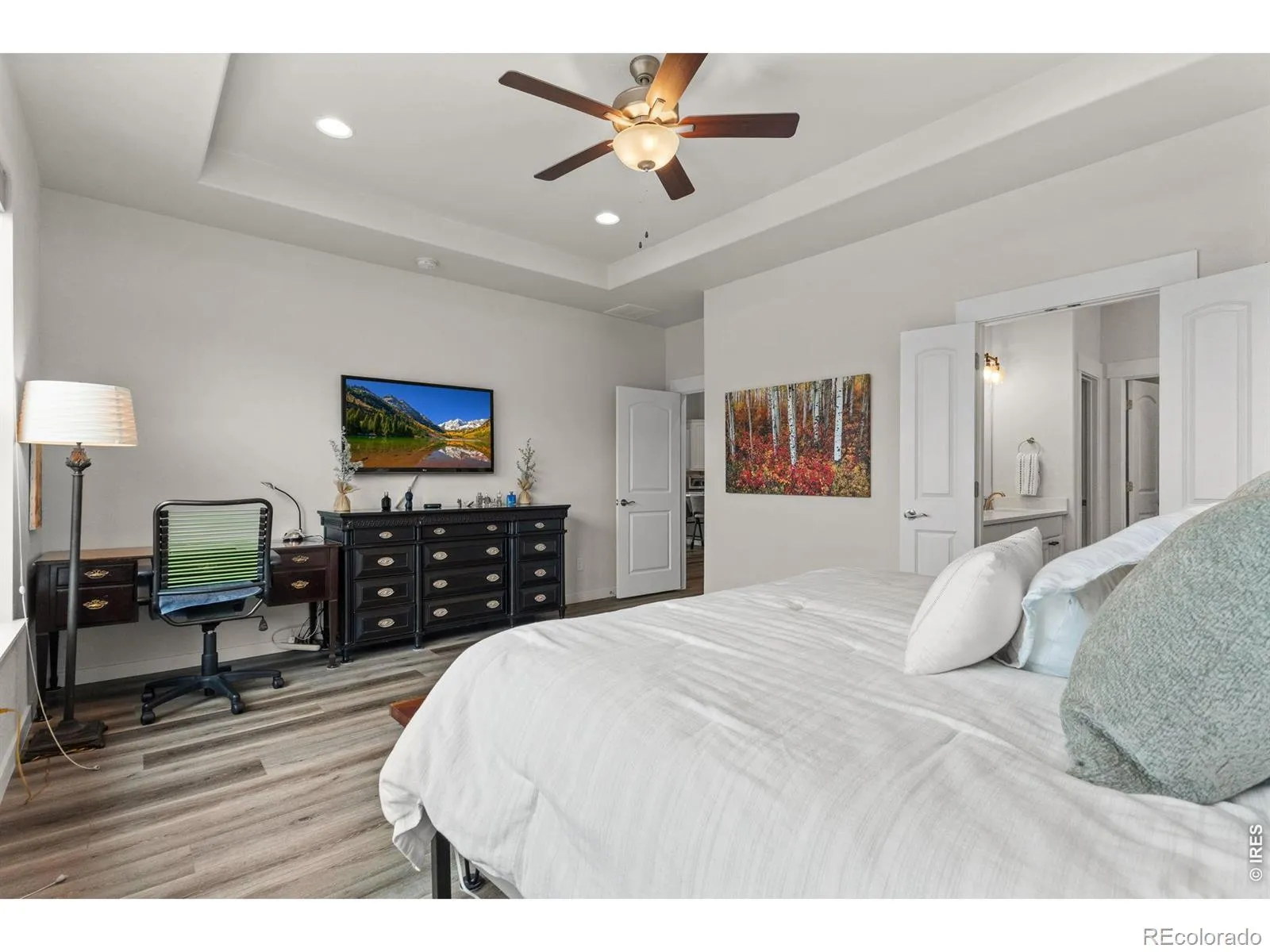 Colorado living is at its finest here in the Enclave at Mariana Butte. This highly desirable and beautiful area is nestled in the perfect location at the bottom of the foothills, bordering Boedecker lake and within walking distance to hiking, biking, trails, parks, and golfing! This 5-bedroom, 4-bathroom home is full of upgrades from the builder, and the over 3,531 square feet of space is as functional as it is elevated and comfortable. Enjoy mountain views over open space from oversized windows in the living room and primary suite, or immerse yourself even further into nature on the oversized back patio. On the main level you will find your generously sized Primary suite, with a spacious walk in closet and soaking tub. Also on the main floor is the laundry room and two other bedrooms and bathrooms. In the finished basement you will find two other bedrooms with oversized closets and another beautifully designed full bathroom. Built-in theater equipment is a dream for lovers of entertainment, and can be left with the home or removed if desired. Even with so much finished living space, there is still ample unfinished storage left! Come tour this West Loveland gem for yourself, you won’t want to miss it!