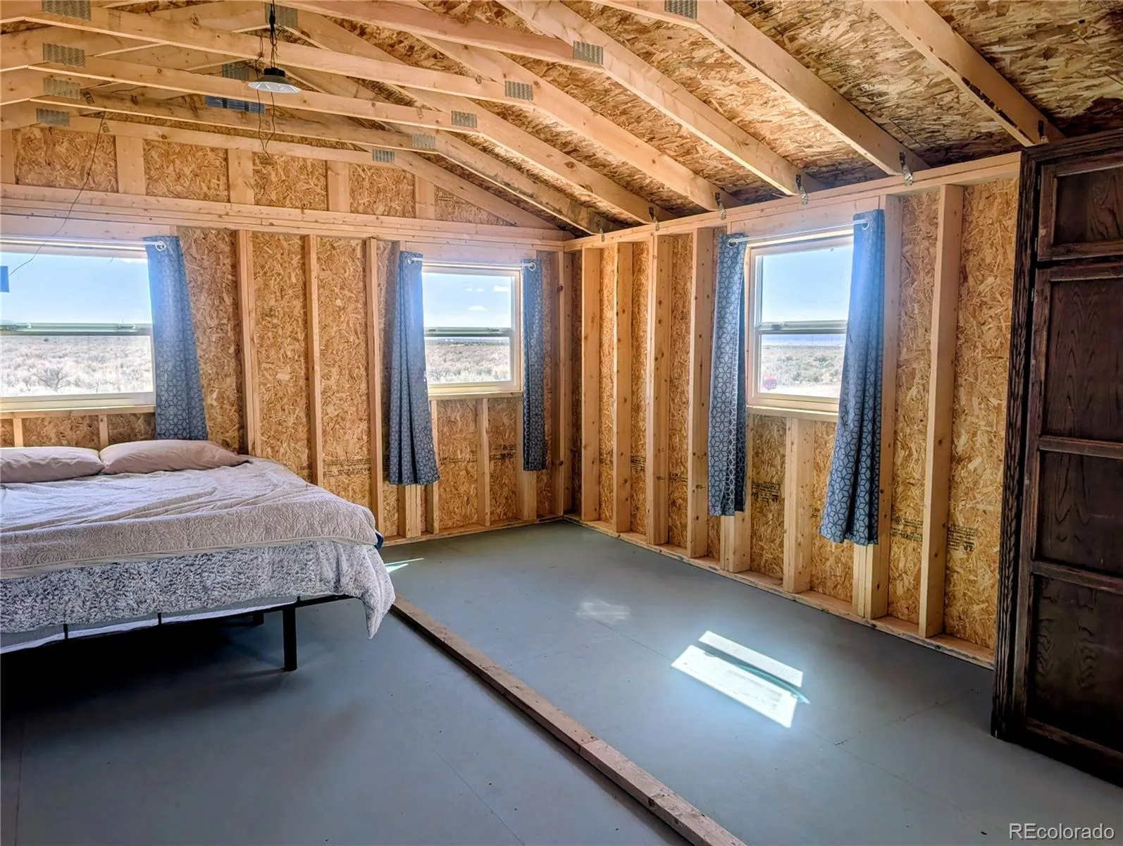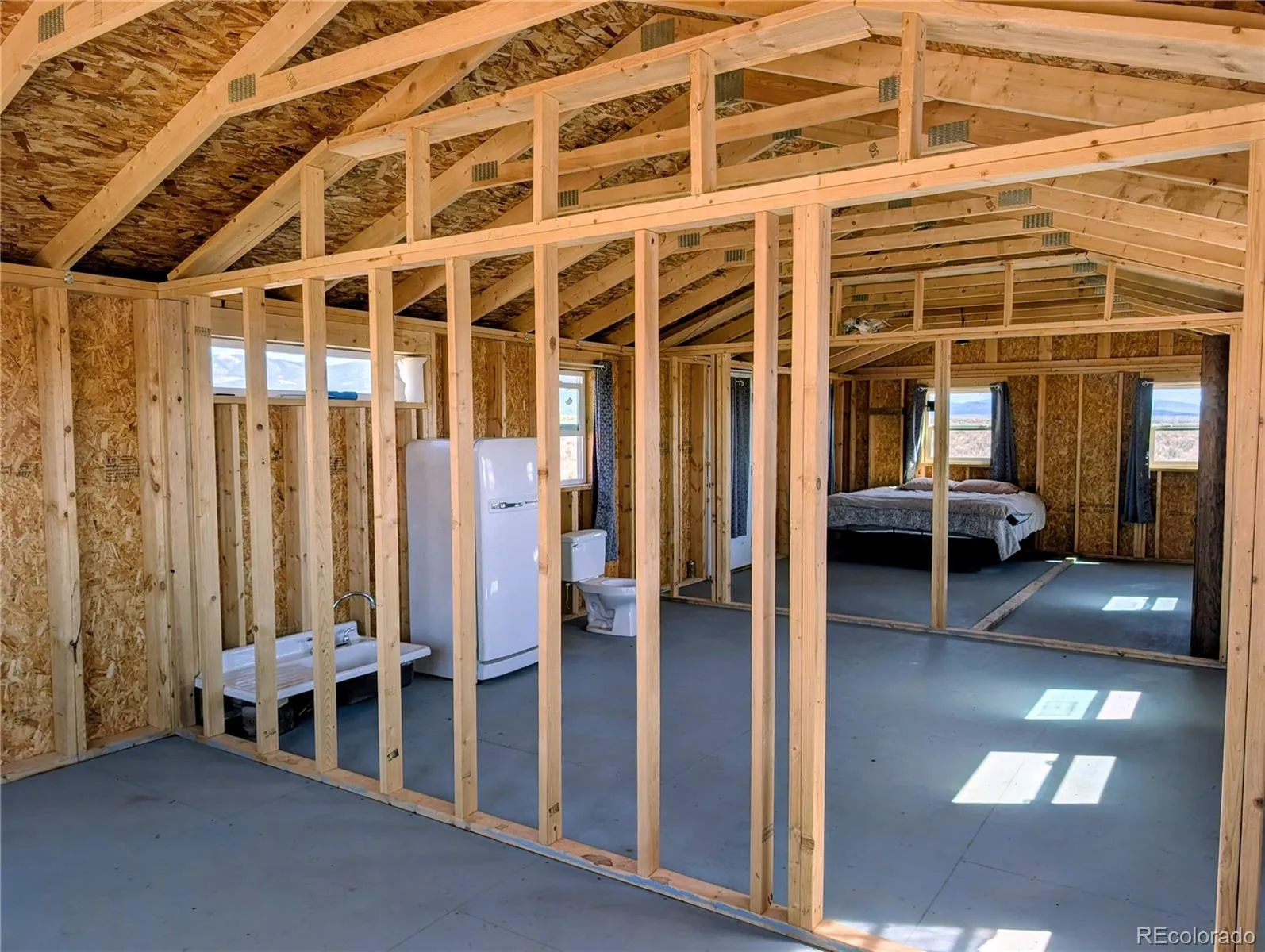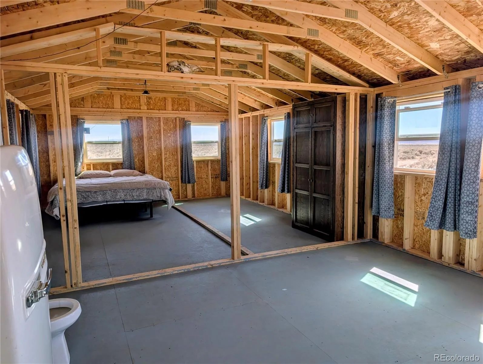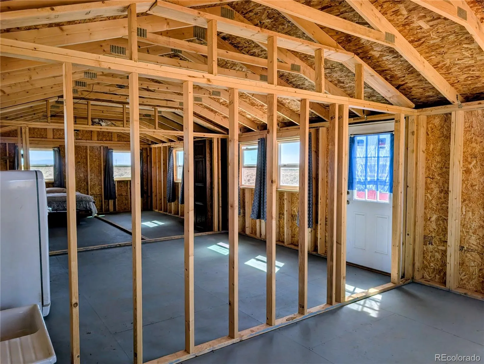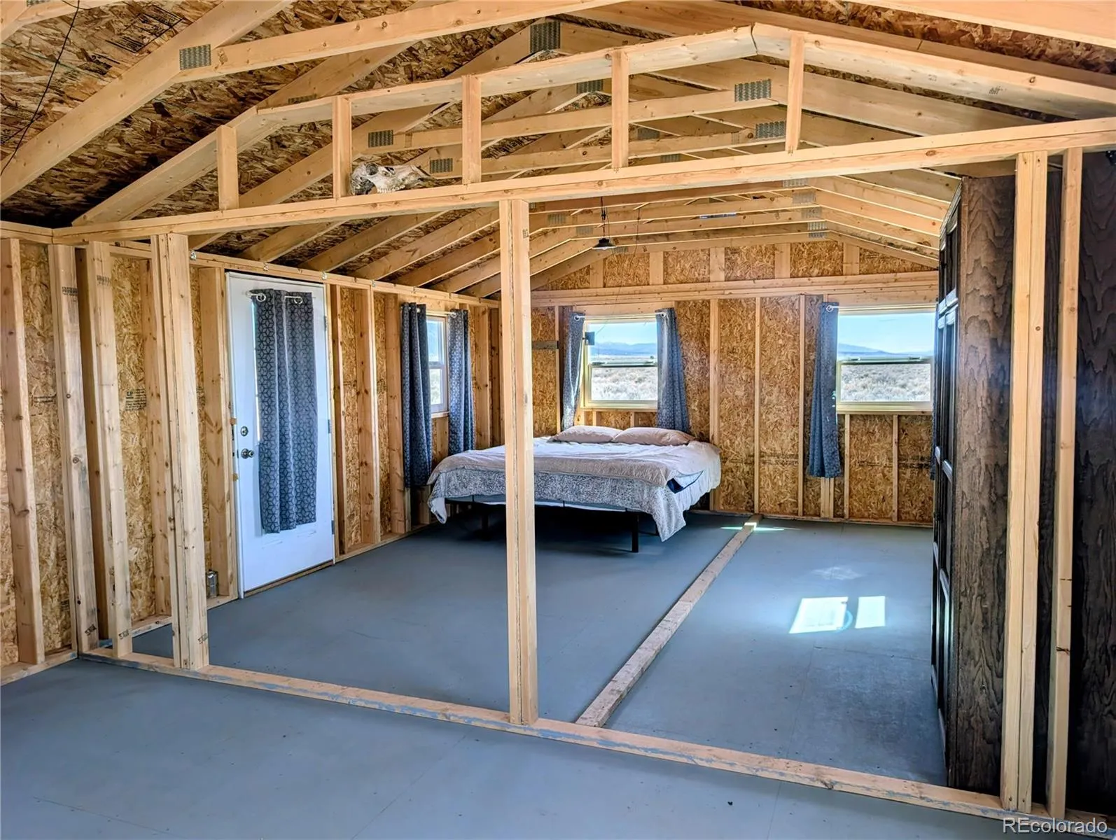 Set in the wide-open beauty of the Sangre de Cristo Ranches of Fort Garland, this 10+ acre property offers a thoughtfully improved basecamp for your Colorado getaway or full-time residence! The property features a new 640 sq ft home with a durable metal roof and a blank canvas to finish the interior to your exact taste and needs! Inside, the space is prepped for efficient use with framing in place for pocket doors and a sliding barn door—ideal for maximizing space while adding character. Recent upgrades include a septic system installed in 2024 and a solid structural foundation with concrete pillars set 3 feet below ground, reinforced with rebar and straps for added durability. The main structure measures 16′ x 40′ x 7′ and is finished in a distinctive “Salty Dog Blue” for a clean, modern look. Two additional 8′ x 7.5′ sheds (each ~60 sq ft) provide extra storage or workspace options. A 275-gallon water tank is located in the front yard (non-potable, suitable for animals) and can be pumped in and out as needed, offering a practical solution for off-grid living. For water, bury a cistern or apply for a well permit, which includes household, plus up to 3000 sq ft of irrigation for garden and lawn irrigation. Solar would likely be the best option for this location. Located minutes from Fort Garland, you can find gas, diners, a post office, and more! Even closer is Mountain Home Reservoir, a quiet, high-altitude lake, originally built for irrigation; it’s now a State Wildlife Area popular for fishing, boating, camping, and wildlife viewing. Surrounded by pinyon-juniper hills and views of the Sangre de Cristo Mountains, the reservoir offers a peaceful, off-the-grid feel and year-round outdoor recreation. The Sangre De Cristo Ranches is not an HOA and offers 4,000+ acres of greenbelt for recreation and nature. This property is ready for your vision—whether that’s a peaceful retreat, recreational escape, or future fully developed homestead. Call today for a tour!