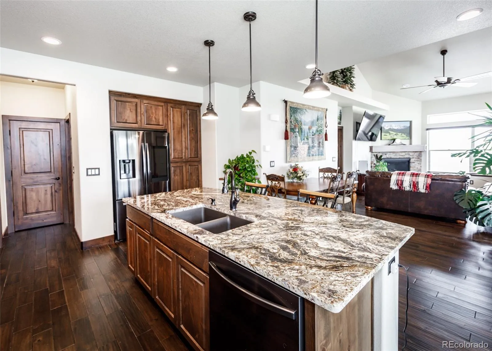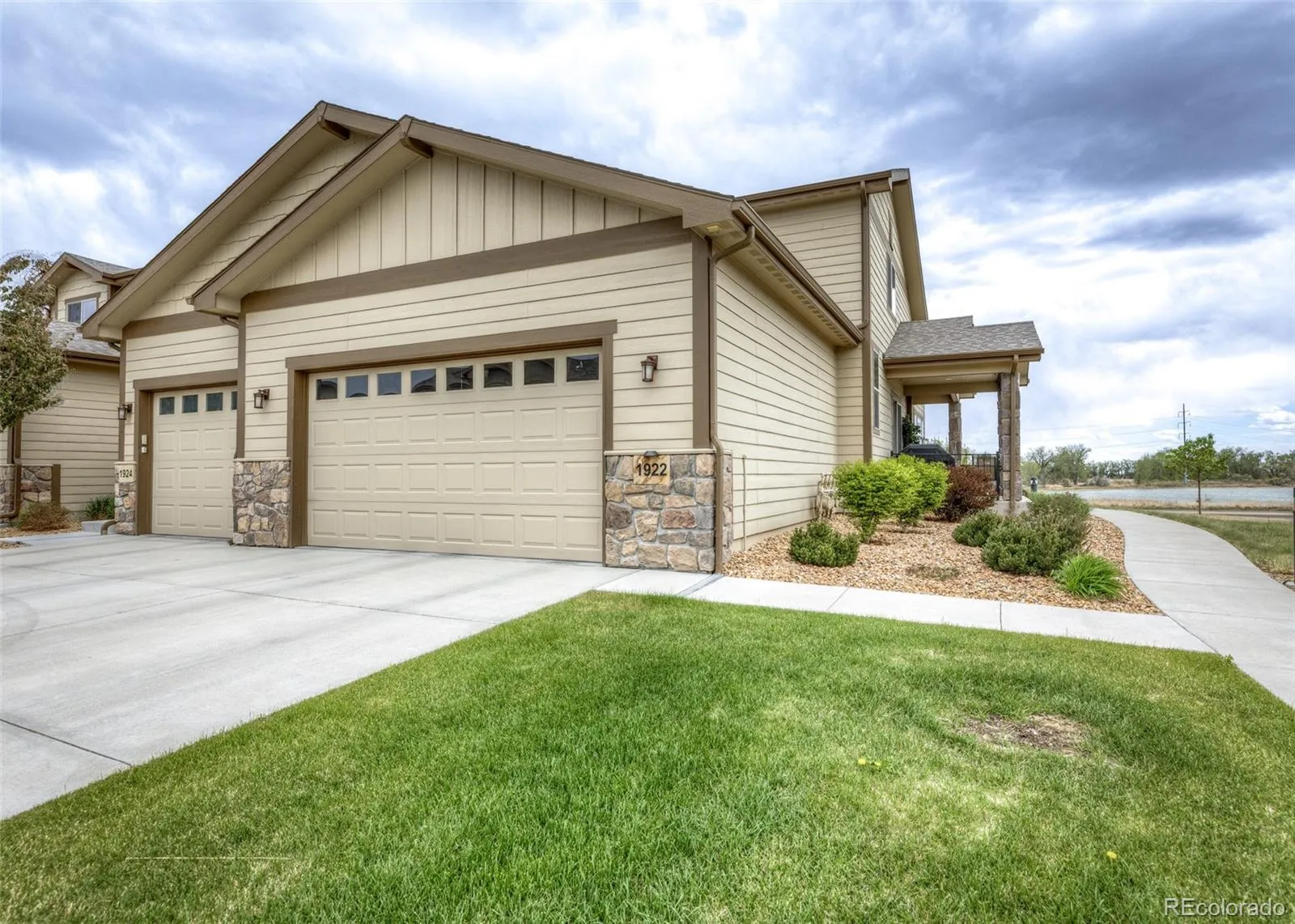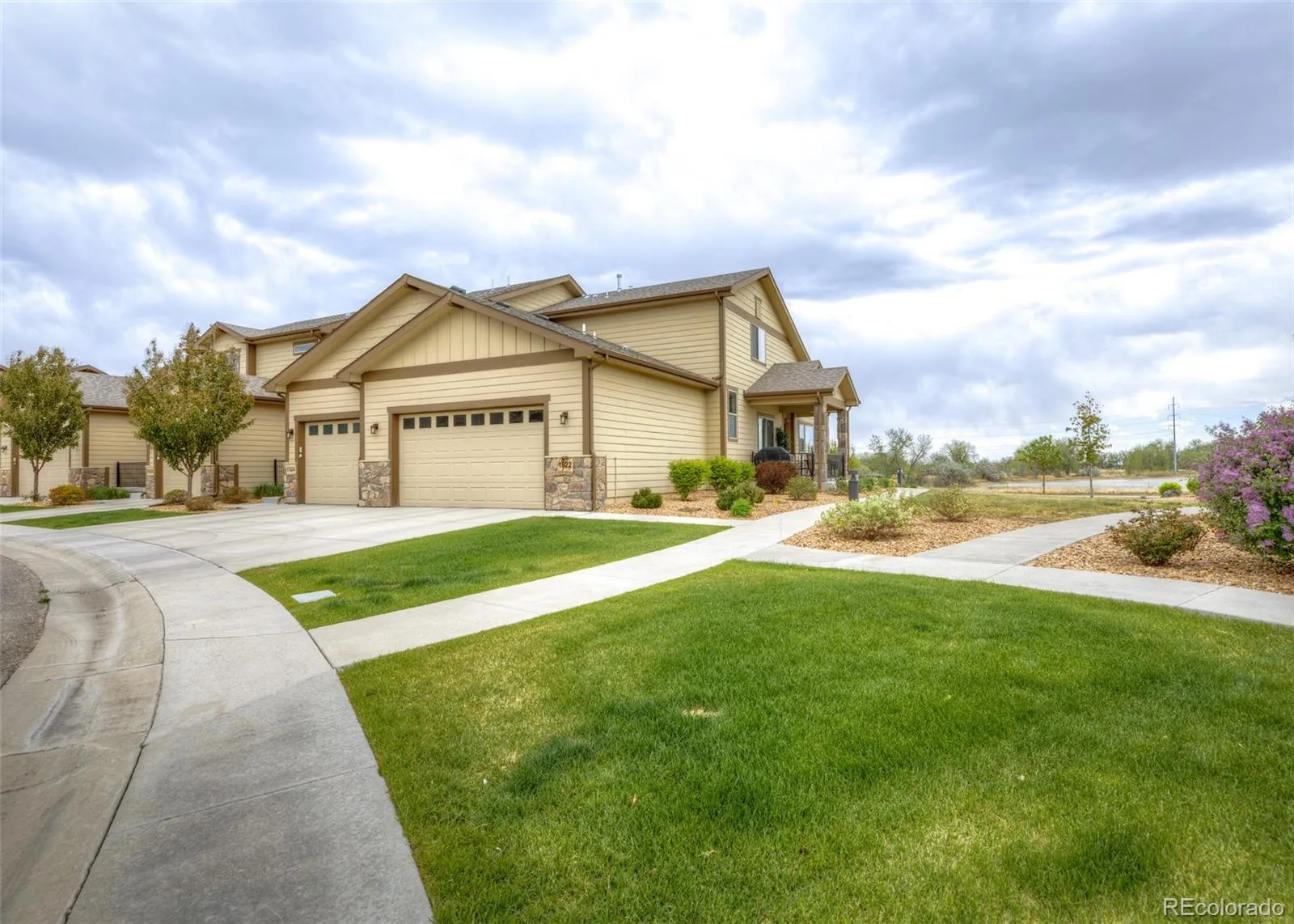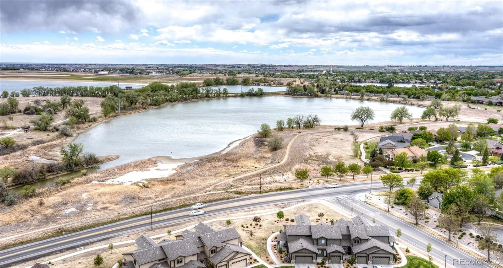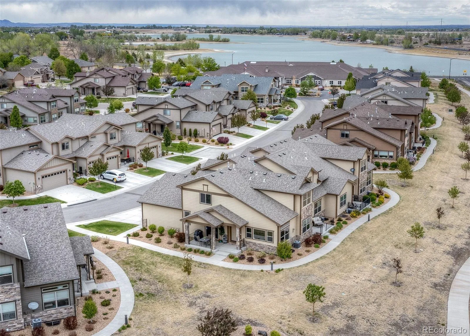 Beautifully upgraded 2-story home in the highly desirable Seven Lakes community, offering stunning lake views and thoughtful custom finishes throughout. Built in 2021, this 2 bed, 2.5 bath home features 1,873 finished sq ft with an additional unfinished basement ready for future expansion. Step inside to wood flooring in the entry and main living spaces, vaulted ceilings, and abundant natural light from expansive windows showcasing serene lake views. The living room includes a gas fireplace with stone surround, in-ceiling lighting, decorative ledges, and mounted TV (included). The main-level primary suite offers plush upgraded carpet, high ceilings, ceiling fan, and lake views, along with a luxurious attached bath featuring tile floors, double vanity with granite counters, tile backsplash, built-in storage, walk-in closet, and a spa-like walk-in shower with floor-to-ceiling tile, river rock flooring, and built-in bench. The kitchen is designed for both style and function with a large center island, granite countertops, wood cabinetry with crown molding and soft-close features, black stainless appliances, gas range, tile backsplash, and a smart touchscreen refrigerator. The adjacent dining area fits a large table and opens to a covered front patio. Additional main-level features include a half bath with granite counters, laundry room with built-in cabinets (washer & dryer included), and access to the oversized finished 2-car garage. Upstairs offers a versatile loft with lake views, plus a second primary suite with walk-in closet and private bath featuring double vanity and tiled tub/shower. The unfinished basement includes egress windows, bathroom rough-in, radon mitigation system, and sump pump with French drain. Located in a walkable community near lakes, trails, and amenities—this home combines modern upgrades, comfort, and scenic living.