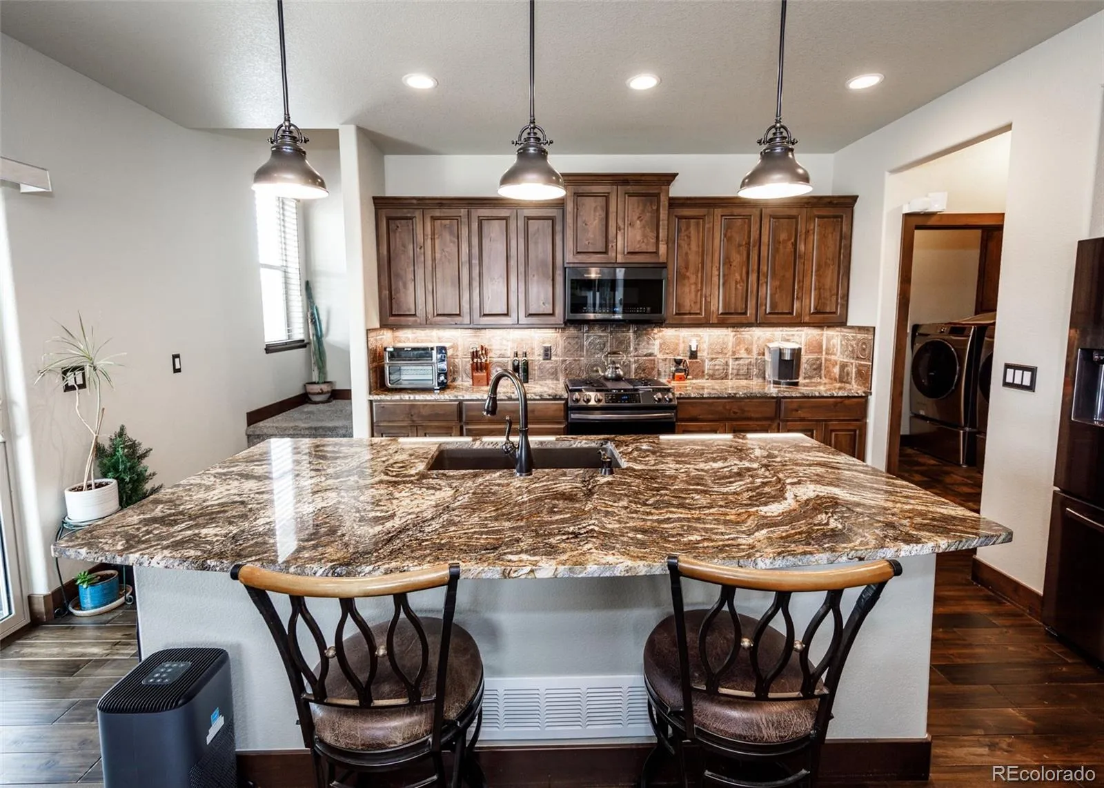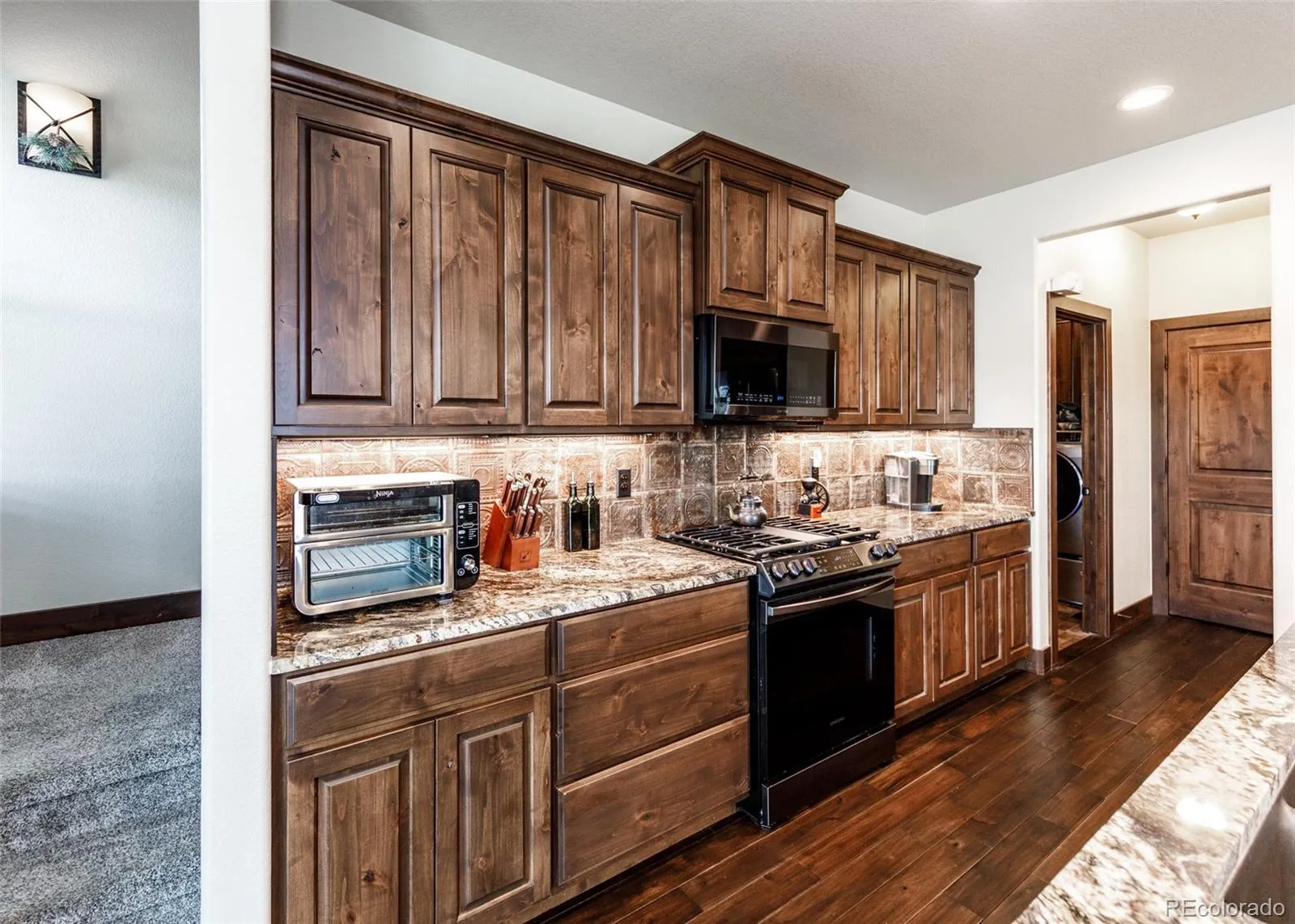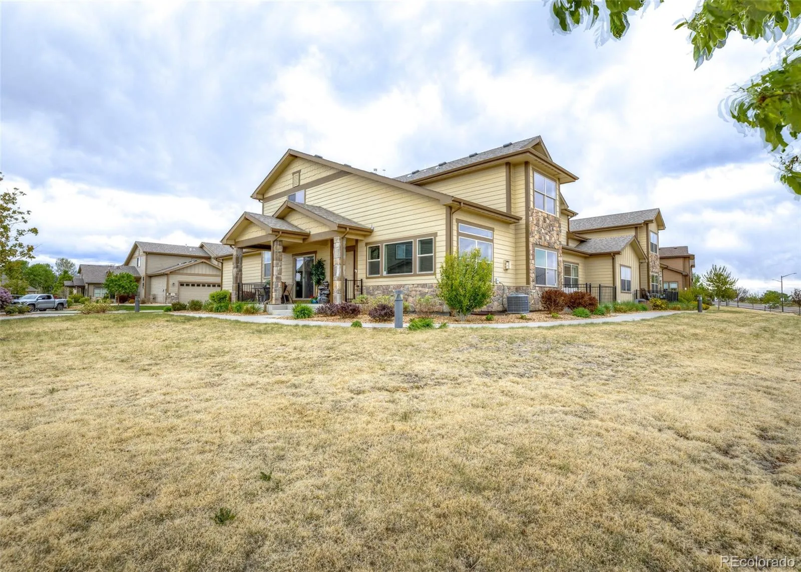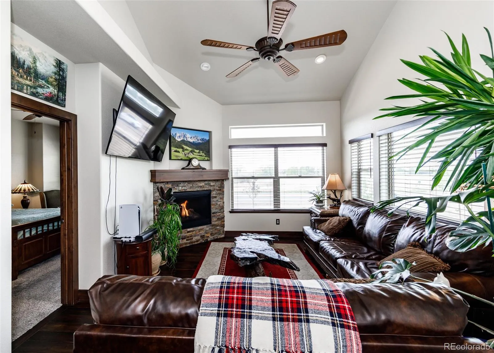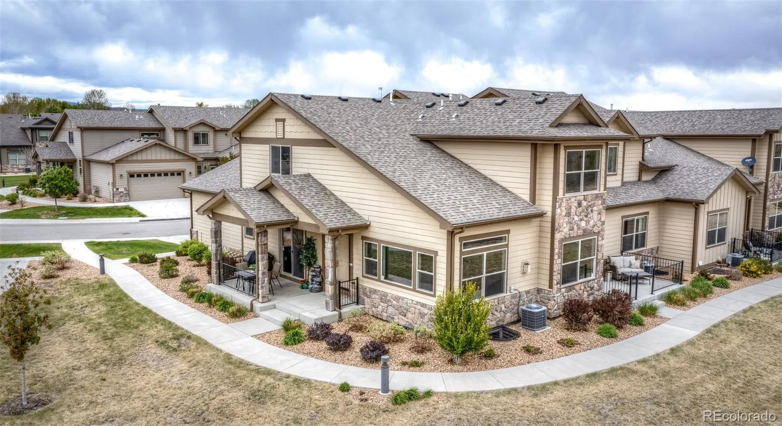 Beautifully upgraded 2-story home in the highly desirable Seven Lakes community, offering stunning lake views and thoughtful custom finishes throughout. Built in 2021, this 2 bed, 2.5 bath home features 1,873 finished sq ft with an additional unfinished basement ready for future expansion. Step inside to wood flooring in the entry and main living spaces, vaulted ceilings, and abundant natural light from expansive windows showcasing serene lake views. The living room includes a gas fireplace with stone surround, in-ceiling lighting, decorative ledges, and mounted TV (included). The main-level primary suite offers plush upgraded carpet, high ceilings, ceiling fan, and lake views, along with a luxurious attached bath featuring tile floors, double vanity with granite counters, tile backsplash, built-in storage, walk-in closet, and a spa-like walk-in shower with floor-to-ceiling tile, river rock flooring, and built-in bench. The kitchen is designed for both style and function with a large center island, granite countertops, wood cabinetry with crown molding and soft-close features, black stainless appliances, gas range, tile backsplash, and a smart touchscreen refrigerator. The adjacent dining area fits a large table and opens to a covered front patio. Additional main-level features include a half bath with granite counters, laundry room with built-in cabinets (washer & dryer included), and access to the oversized finished 2-car garage. Upstairs offers a versatile loft with lake views, plus a second primary suite with walk-in closet and private bath featuring double vanity and tiled tub/shower. The unfinished basement includes egress windows, bathroom rough-in, radon mitigation system, and sump pump with French drain. Located in a walkable community near lakes, trails, and amenities—this home combines modern upgrades, comfort, and scenic living.