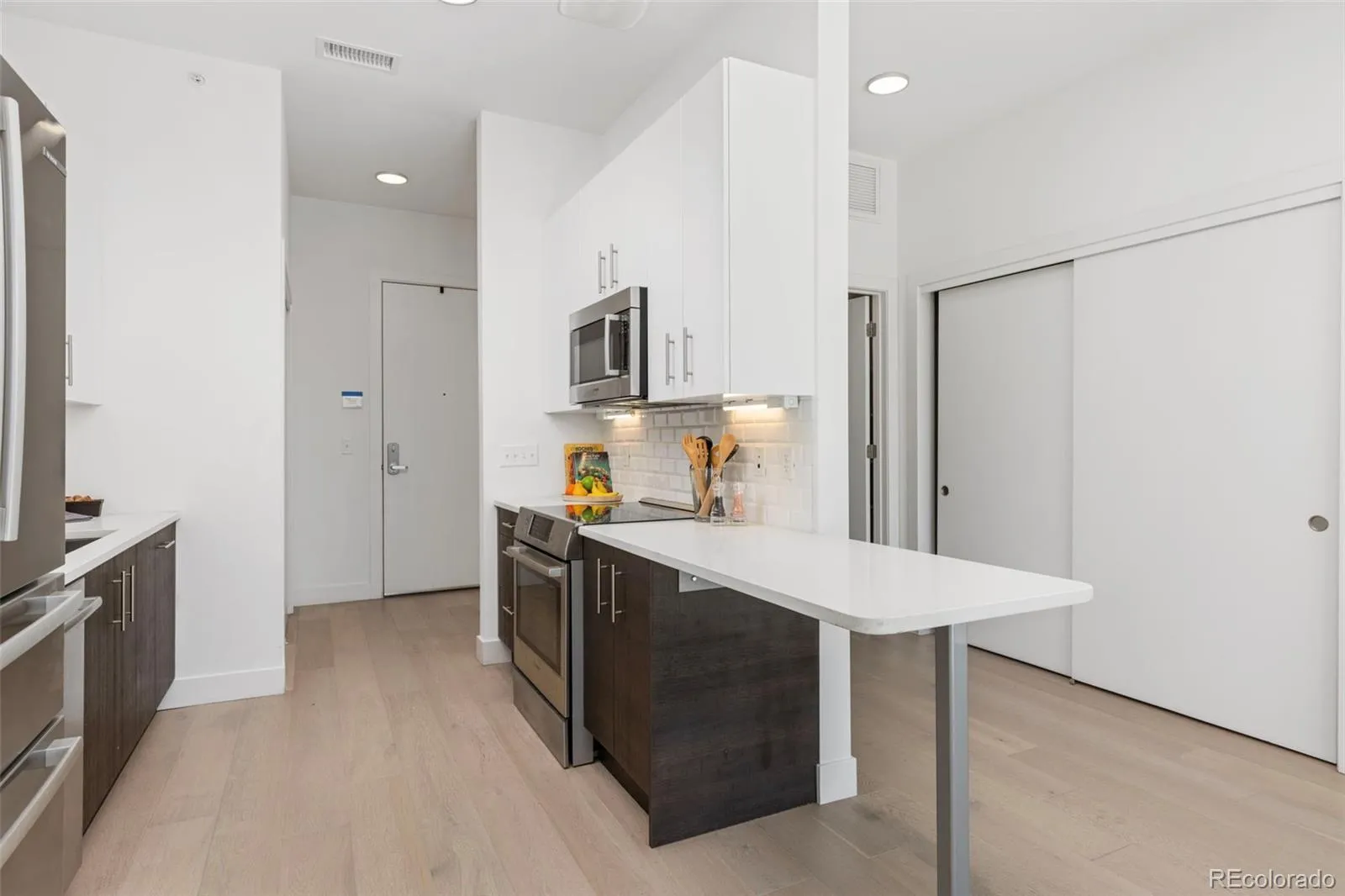 Welcome to the perfect bright, sun-filled open space in the heart of it all! This gorgeous top floor unit is South facing and has a large balcony for entertaining and relaxing. Situated in S*Park, Denver’s LEED Platinum-certified community in the RiNo Arts District. The wonderful Studio has been well maintained and is move-in ready. The vaulted ceilings and contemporary fixtures with hardwood floors are sleek, charming and inviting. The kitchen is bright with stainless appliances, quartz countertops and subway tiles. There are built-ins, an eat-in area and space for a living room and bedroom around the corner. There is in-unit laundry, a large closet, and a beautiful sleek bathroom. The unit also comes with a storage locker in the parking garage for extra space. Community amenities include gardens, park, solar energy, car-share, parking garage space for a fee, and bike storage. S*Park is within walking distance to restaurants, breweries, shopping, and the 38th & Blake light rail.