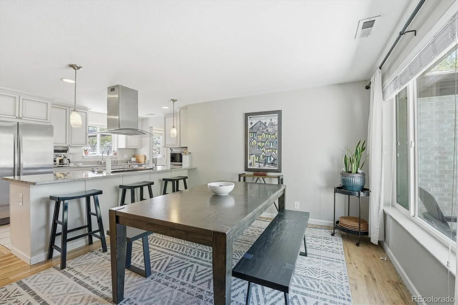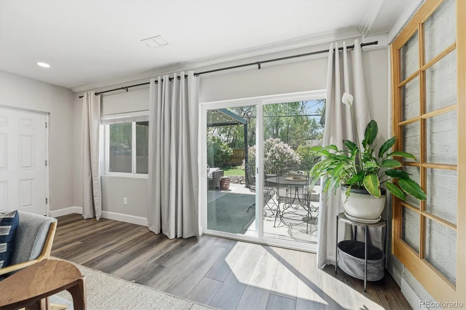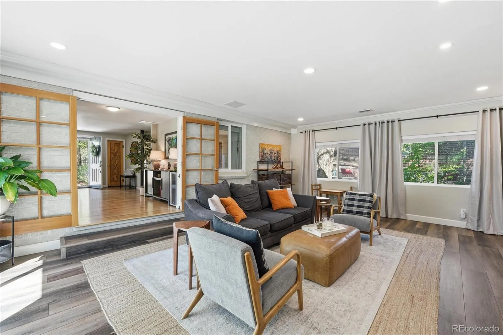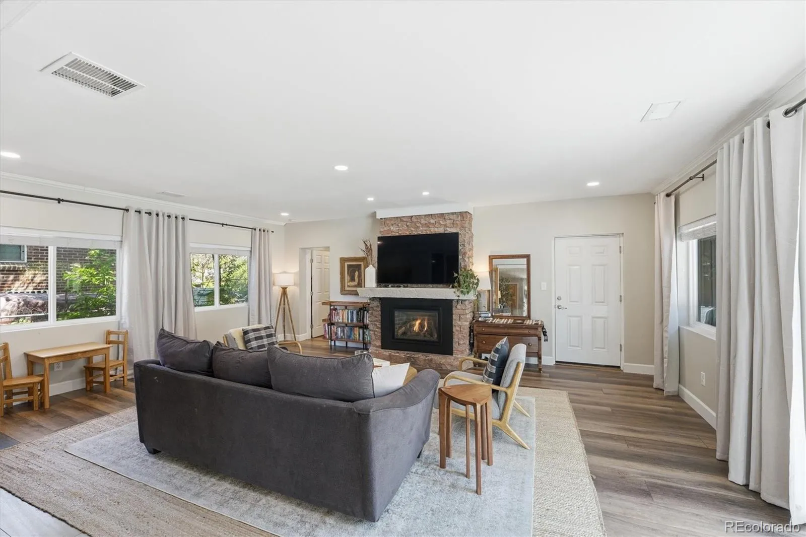 Discover this beautifully remodeled 1 story brick home, with 4 beds & 2 baths (all on the main level) – a rare find that blends historic charm with modern elegance. Nestled on a picturesque corner lot on a tree-lined street, this property offers a peaceful retreat surrounded by captivating classic homes. This home radiates warmth & character, featuring gleaming hardwood floors, updated electric, custom paint, designer window treatments/lighting and a stylish gas fireplace that enhances the expansive inviting family room. Large updated windows flood the interior with natural light, showcasing the home’s refined finishes & thoughtful open concept design. The remodeled kitchen centerpiece highlights sleek countertops, stylish cabinetry, high-end stainless appliances, a gas range with hood, breakfast bar seating and a bright dining area-perfect for everyday living & entertaining. The beautifully updated baths feature high-end touches. Functionality meets convenience with a main level laundry, a mudroom area from garage & a cellar-style basement that provides valuable additional space-ideal for storage, hobbies, or future potential! Step outside to your private backyard oasis- an expansive, tranquil setting with mature landscaping, gardens, flowers, a large patio, pergola(w/open-close louvered roof) & ample space for entertaining or relaxing beneath the trees. The heated attached 2car garage & extra off-street parking add exceptional parking options- including room for an RV or boat (with a dedicated outlet). Enjoy this unbeatable location-just steps to shops, coffee, restaurants, nightlife, great nearby parks, tennis & schools. GREAT easy access to Sloan’s Lake, Edgewater Public Market, the Tennyson Street Cultural District, Berkeley, Highlands, LoHi, Downtown Denver, Golden, trails, shopping & The Mountains. The best of Colorado living. More than a home- it’s a lifestyle. A standout opportunity combining timeless charm, thoughtful upgrades, and an exceptional location.
