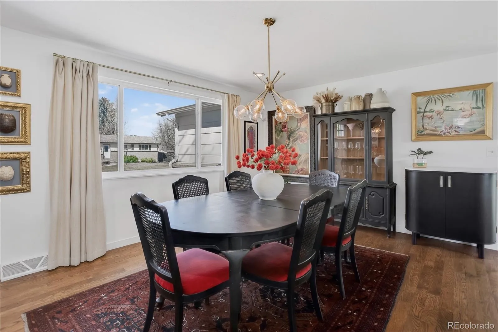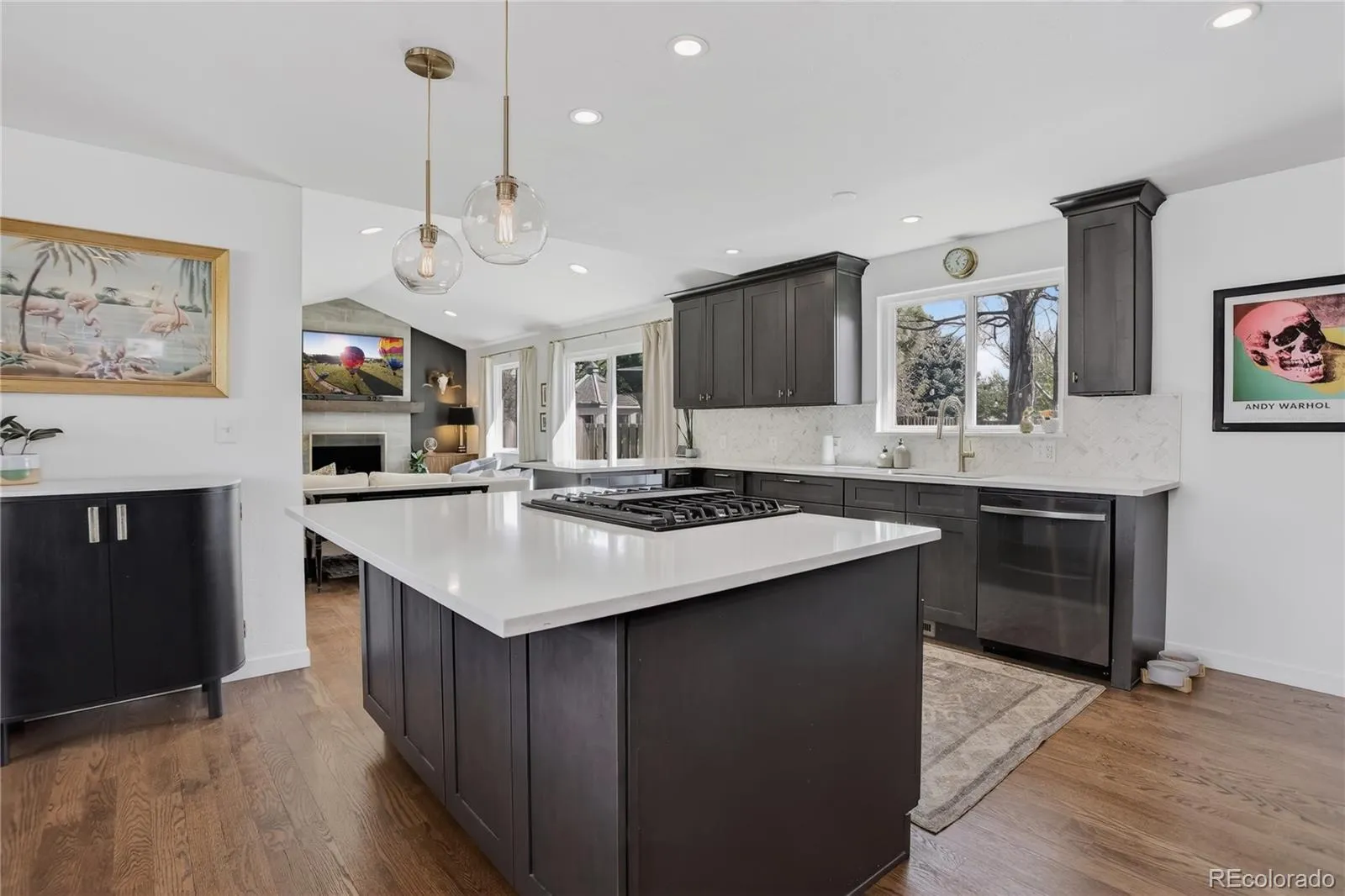 This updated 4-bedroom (1 non-conforming), 3-bath residence offers an exceptional blend of refined design, modern comfort, and effortless indoor-outdoor living. Thoughtfully curated throughout, the home pairs sophisticated finishes with a warm, inviting atmosphere ideal for both everyday living and stylish entertaining. At the heart of the home, the open-concept gourmet kitchen is designed to impress with quartz countertops, stainless steel appliances, solid hardwood floors, and an expansive island that anchors the space beautifully. The large dining area is the perfect space for entertaining large dinner parties, and the cozy living room is the perfect space to relax after enjoying a fabulous meal. The gas fireplace adds so much ambiance on those chilly Colorado evenings. The large sliding glass door in the living room leads you to the beautifully landscaped and private backyard with a patio for outdoor dining and entertaining. The fencing was recently installed in addition to a new sprinkler system. You will notice how much natural light streams into the home. All new windows were installed in 2020 keeping the home warm in the winter and cool in the summer. The large primary bedroom has an attached updated 3/4 bathroom. An updated full bathroom in the hallway is shared by the other two bedrooms. As you make your way to the basement you will appreciate how much living space this home has. A recreation room with a built-in bar, large wall for a movie screen/TV, space for a large pool table, a non-conforming bedroom and 3/4 bathroom adds so much valuable living space. The laundry room does come with washer/dryer and a storage cabinet. The storage/utility room is large enough to store boxes, furniture, and seasonal items. Located in a quiet neighborhood with predominantly cul de sacs, close to major roads/highways, parks, open space, trails, restaurants and shopping makes this location very desirable. Don’t wait, call Kathryn today at 720-987-8660.