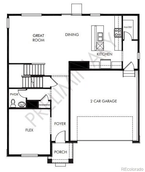 The Chatfield is a spacious two-story home featuring a versatile flex space, open-concept kitchen and great room, and four bedrooms including a serene primary suite. With 2.5 baths and a two-bay garage, this design blends style and functionality for modern living.