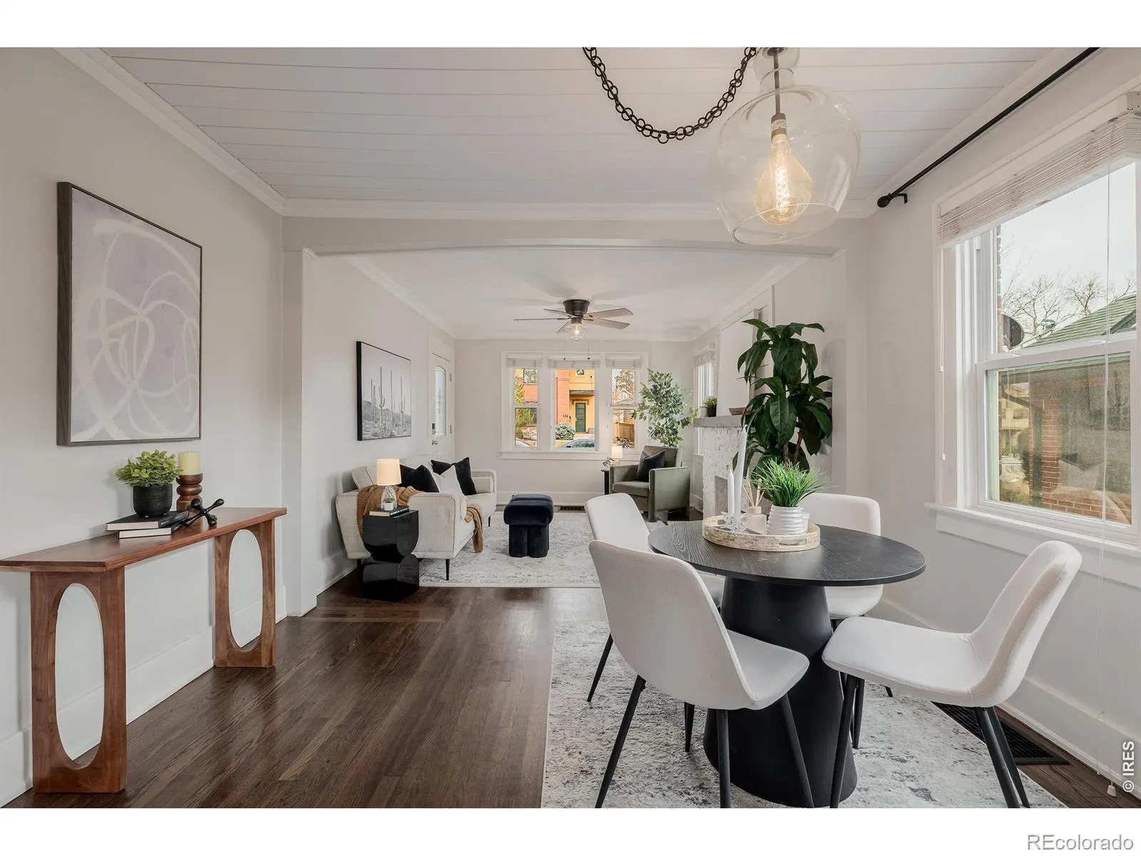 Welcome to 235 S Humboldt St, a thoughtfully updated Denver gem that blends warm charm with modern comfort. With 1,570 finished square feet, this inviting brick home lives far larger than expected, offering light-filled spaces, beautiful flow, and intentional design throughout. A white pitcketted fenced, grassy front yard and welcoming porch set the tone, opening into an open layout featuring neutral paint, warm floors, elegant crown moulding, and a cozy fireplace anchoring the living space. The immaculate kitchen showcases white cabinetry, quartz counters, farmhouse sink, stainless steel appliances, subway tile backsplash, and a breakfast bar, perfect for everyday living and entertaining. Just off the kitchen, a bright enclosed sunroom provides a cheerful year-round retreat, ideal for morning coffee, working from home, or unwinding with a book. The main floor bathroom has been tastefully refreshed, new lighting adds warmth and style, fresh interior paint creates a clean cohesive feel, and the shiplap accent above the dining area delivers a designer touch. The fully renovated basement has been transformed into a stunning primary suite, featuring a brand-new bathroom, custom walk-in closet, finished laundry room, soft carpeting, added egress window, and flexible living space. This level offers comfort, privacy, and functionality rarely found in homes of this size. Outside, enjoy a peaceful large fenced backyard with paved patio, shade trees, and grassy space for entertaining, grilling, or tossing the ball to your dog. A detached rear-access garage provides secure parking and excellent storage. Perfectly located near Denver’s best dining, parks, shops, and city conveniences, every detail of this home has been thoughtfully improved. 235 S Humboldt isn’t just a house; it’s a lifestyle, and it’s ready for its next chapter.