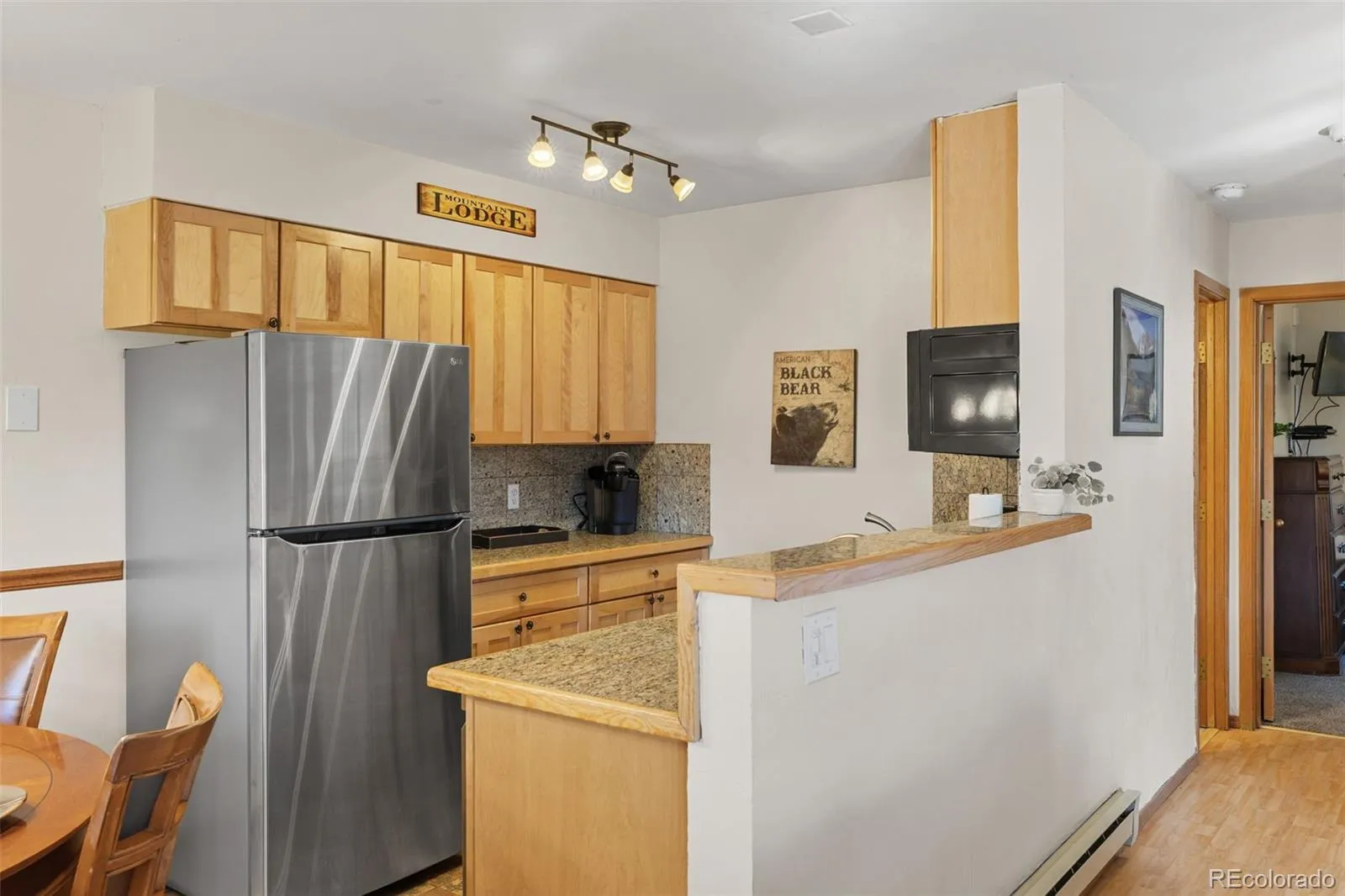 Walk right out onto Four O’Clock Trail, atop Breckenridge ski run, with easy access to Snowflake Lift and gondola connection. This 1-bed, 1-bath, 663 sq ft Tyra Summit condo with over 120 sq ft of outdoor living space, offers true ski-in/ski-out access. Unlike most complexes in Breckenridge, the front door is accessed directly from the sidewalk with only a few steps via the private deck. Summer trail becomes scenic hike right outside, offering year-round access. Mountain views from living, dining, and couch; bedroom lets you watch skiers on Four O’Clock. Located in Zone 1 with short-term rental licenses available.