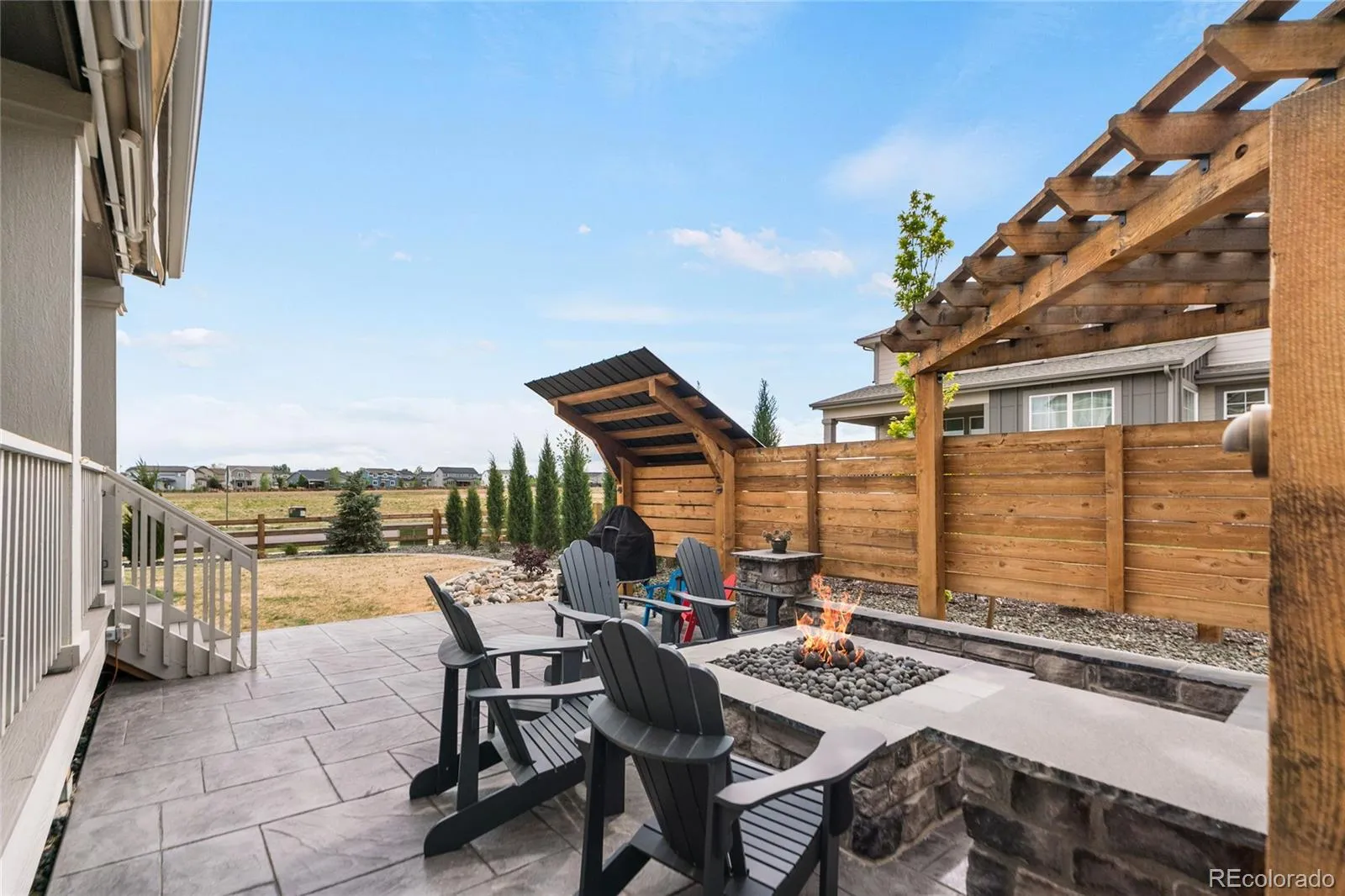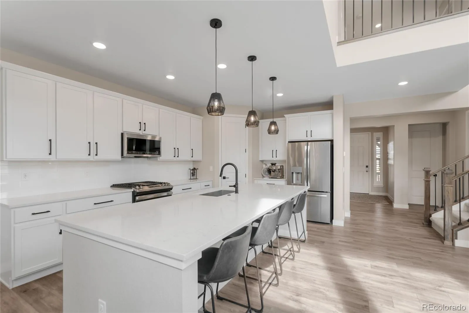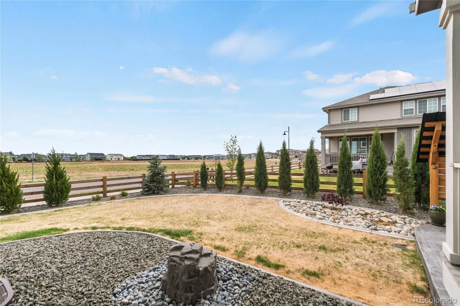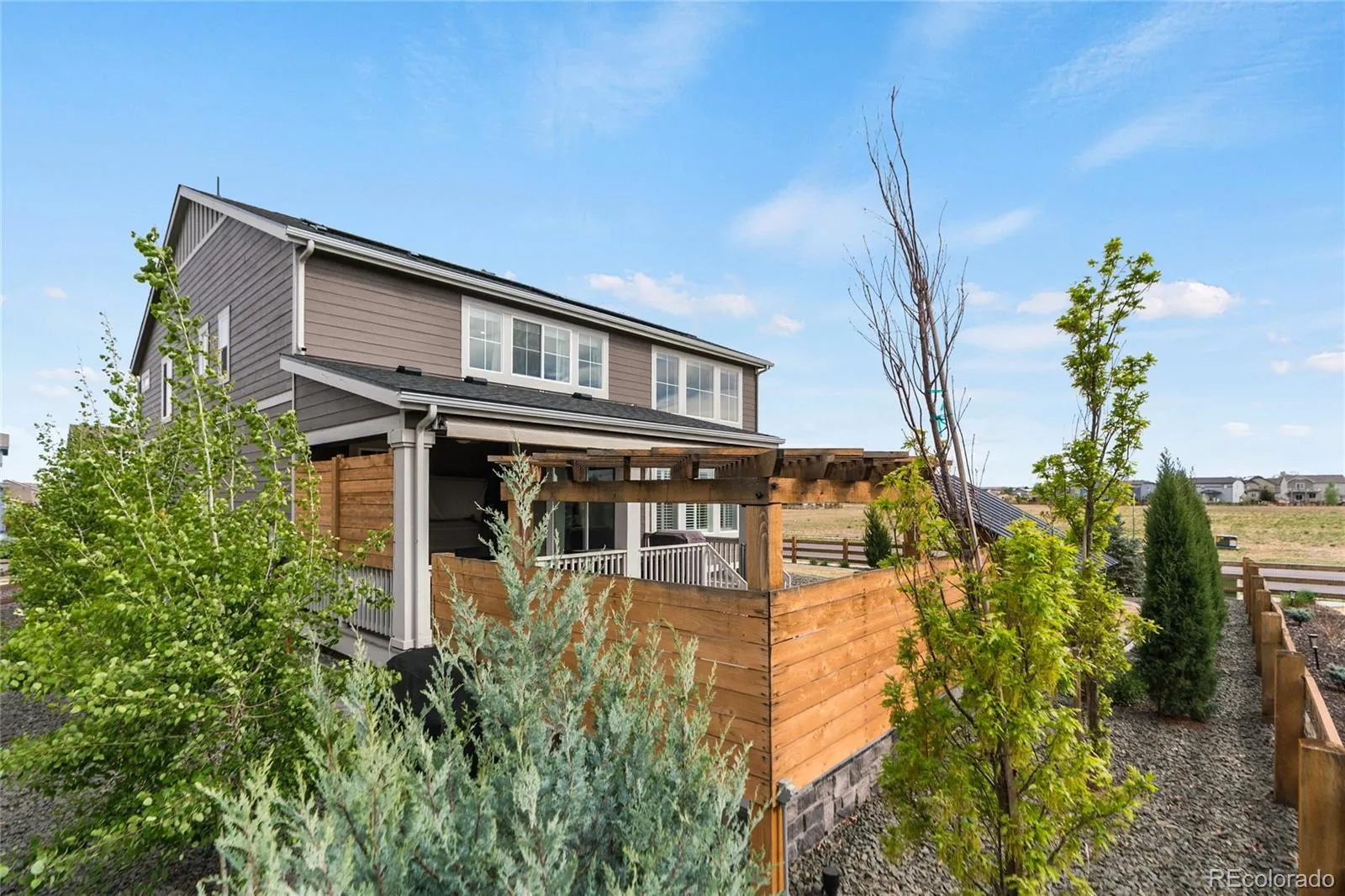 This more up-to-date, beautifully designed home offers an array of upgrades and boasts an open concept. The luxury vinyl flooring is resilient and timeless. It provides the perfect blend of modern elegance, with everyday livability and functionality. The high ceilings enhance the home’s expansive feel. The upper windows in the great room have automatic shades. The open floor plan connects the dining and living spaces effortlessly. You’ll have a main floor bedroom that includes a murphy bed, perfect for guests or an office, with an adjacent bathroom. The gourmet kitchen has a large pantry for all your sweet and savory snacks, an extended island, sleek quartz countertops, a self-cleaning oven and ample cabinet space. Adjacent to the kitchen is a spacious mudroom, offering plenty of storage for coats, shoes and everyday essentials. From the mudroom, enter your 3-car garage. The upstairs primary suite serves as your private retreat, combining luxury and comfort, including a spacious bathroom, separate sinks and 2 walk-in closets. Additionally, you have a versatile loft that can be tailored to your needs, whether you’d like a media area, office or play space. The thoughtful layout is smart and functional. It also includes ceiling fans, an attic fan, a smart water shutoff valve and EV Charger. Do you love the outdoors? The backyard offers a terrific area for parties. The yard is the perfect size to maintain, providing grass for the kids and pets, plus an expanded deck, patio and firepit. It was built with thoughtful consideration for enjoying Colorado’s warm summer nights.