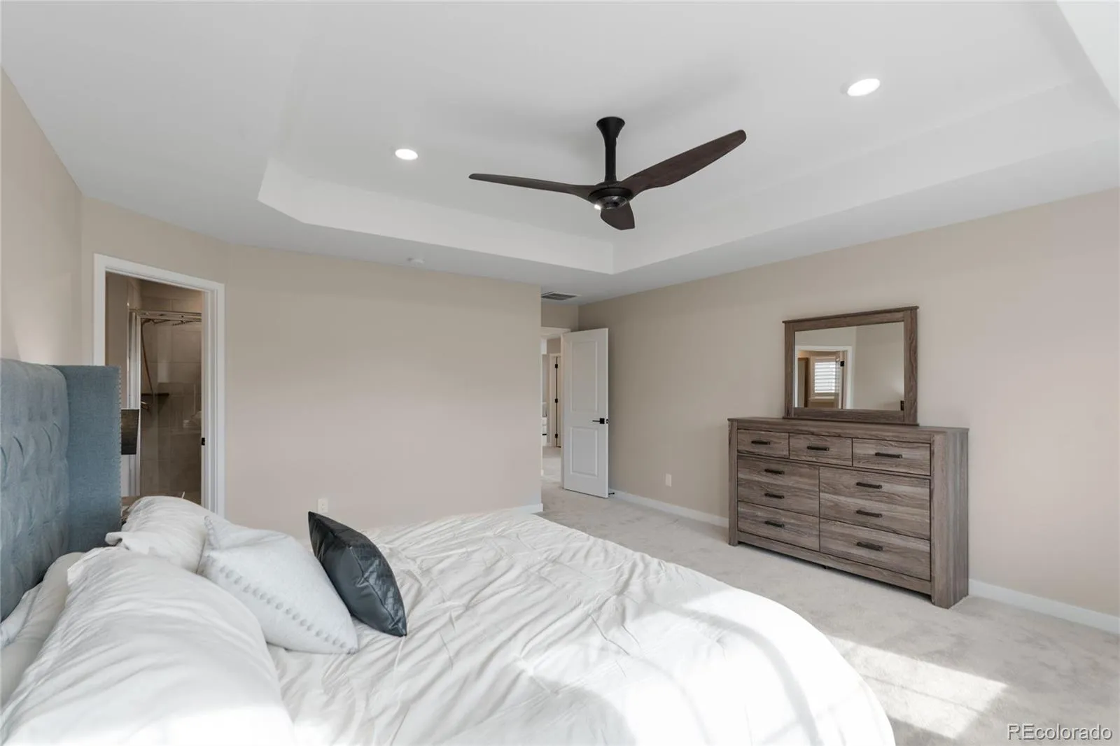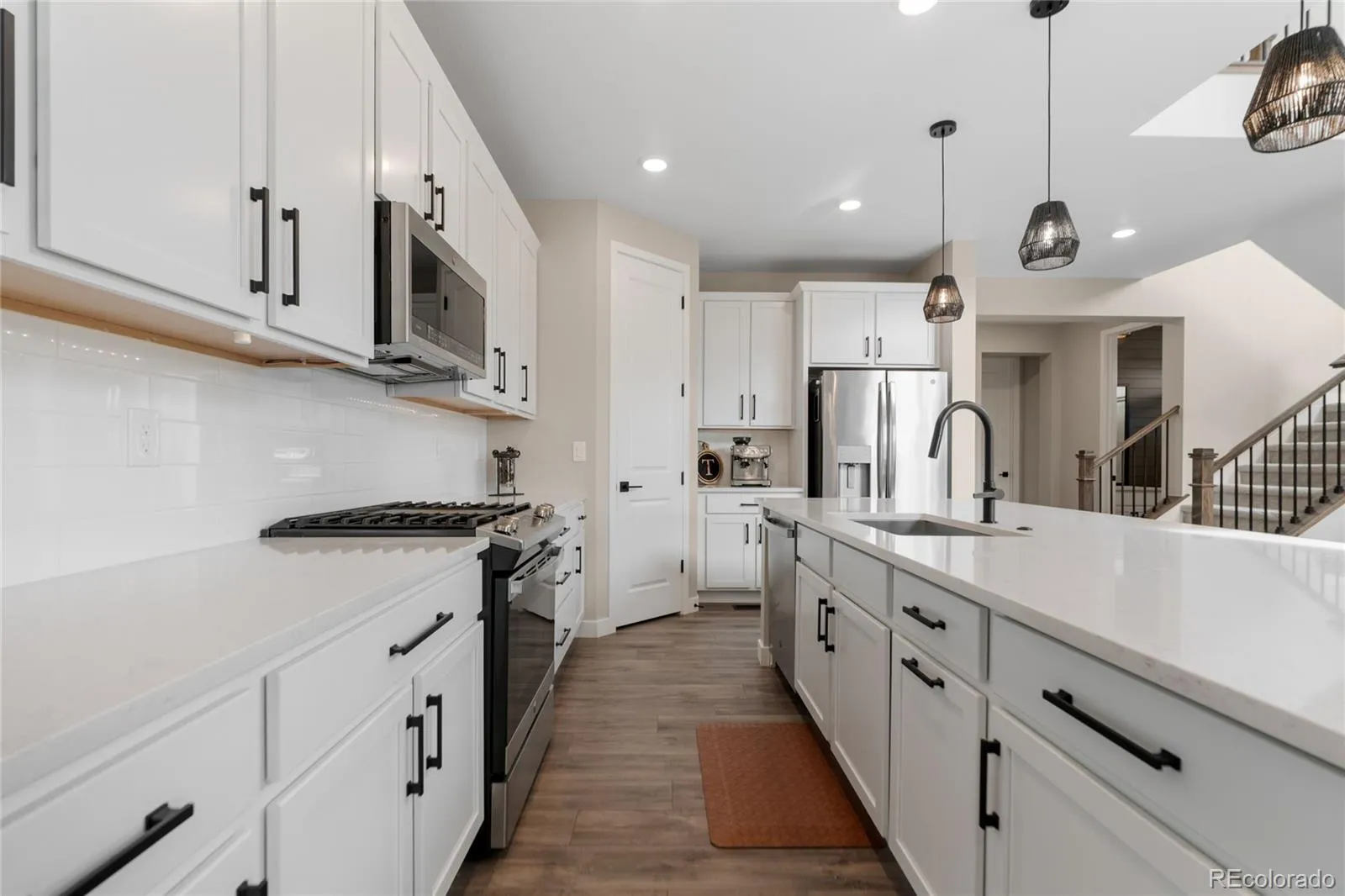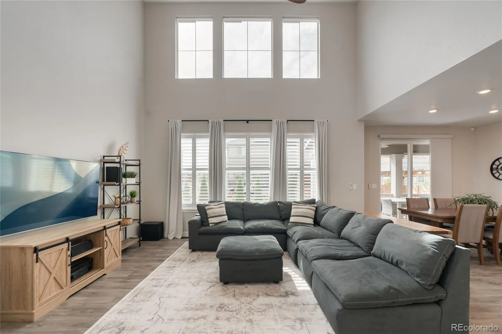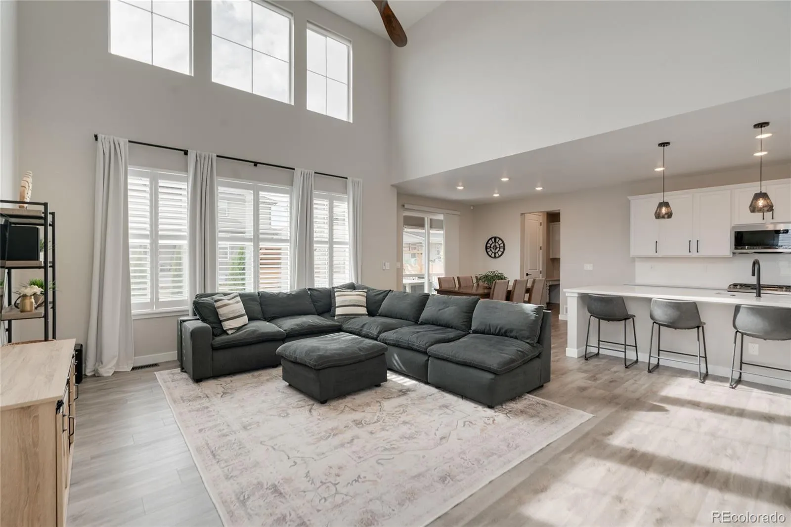 This more up-to-date, beautifully designed home offers an array of upgrades and boasts an open concept. The luxury vinyl flooring is resilient and timeless. It provides the perfect blend of modern elegance, with everyday livability and functionality. The high ceilings enhance the home’s expansive feel. The upper windows in the great room have automatic shades. The open floor plan connects the dining and living spaces effortlessly. You’ll have a main floor bedroom that includes a murphy bed, perfect for guests or an office, with an adjacent bathroom. The gourmet kitchen has a large pantry for all your sweet and savory snacks, an extended island, sleek quartz countertops, a self-cleaning oven and ample cabinet space. Adjacent to the kitchen is a spacious mudroom, offering plenty of storage for coats, shoes and everyday essentials. From the mudroom, enter your 3-car garage. The upstairs primary suite serves as your private retreat, combining luxury and comfort, including a spacious bathroom, separate sinks and 2 walk-in closets. Additionally, you have a versatile loft that can be tailored to your needs, whether you’d like a media area, office or play space. The thoughtful layout is smart and functional. It also includes ceiling fans, an attic fan, a smart water shutoff valve and EV Charger. Do you love the outdoors? The backyard offers a terrific area for parties. The yard is the perfect size to maintain, providing grass for the kids and pets, plus an expanded deck, patio and firepit. It was built with thoughtful consideration for enjoying Colorado’s warm summer nights.