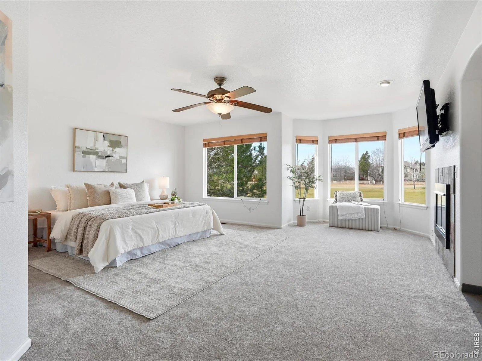 Welcome to 13955 Dogleg Lane, a beautifully refreshed golf-course home in the heart of the Broadlands, where lifestyle, views, and space come together in a truly special setting. This 5-bedroom, 4-bath residence backs to the 8th fairway of the Broadlands Golf Course and overlooks a serene pond, offering peaceful views and rare privacy. The pond attracts local wildlife including turtles, fish, ducks, geese, and the occasional Great Blue Heron, adding to the home’s tranquil outdoor setting. Inside, the home feels light, clean, and move-in ready with brand-new carpet and fresh interior paint throughout, complemented by timeless finishes and an easy, flowing floorplan. The main level features warm wood floors, spacious living and dining areas, and a well-appointed kitchen anchored by a Viking range and cooktop, stainless steel appliances, and ample cabinetry-ideal for both everyday living and entertaining. Large windows throughout frame beautiful golf course and water views, bringing the outdoors in. Upstairs, the generous primary suite offers a relaxing retreat with an en-suite bath and tranquil outlooks, while additional bedrooms provide flexibility for guests, home offices, or multi-generational living. A finished basement adds even more space for recreation, media, or hobbies. Garage is equipped with an EV charger. Step outside to the recently painted back deck, where mornings begin with coffee overlooking the pond and evenings unwind with spectacular sunset views across the fairway-an ideal Colorado backdrop. Located in the highly desirable Broadlands community, residents enjoy a championship golf course, clubhouse, pools, fitness facilities, miles of trails, parks, and nearby schools and shopping. The home is also less than a five-minute walk to the neighborhood pool and conveniently located between Denver and Boulder.