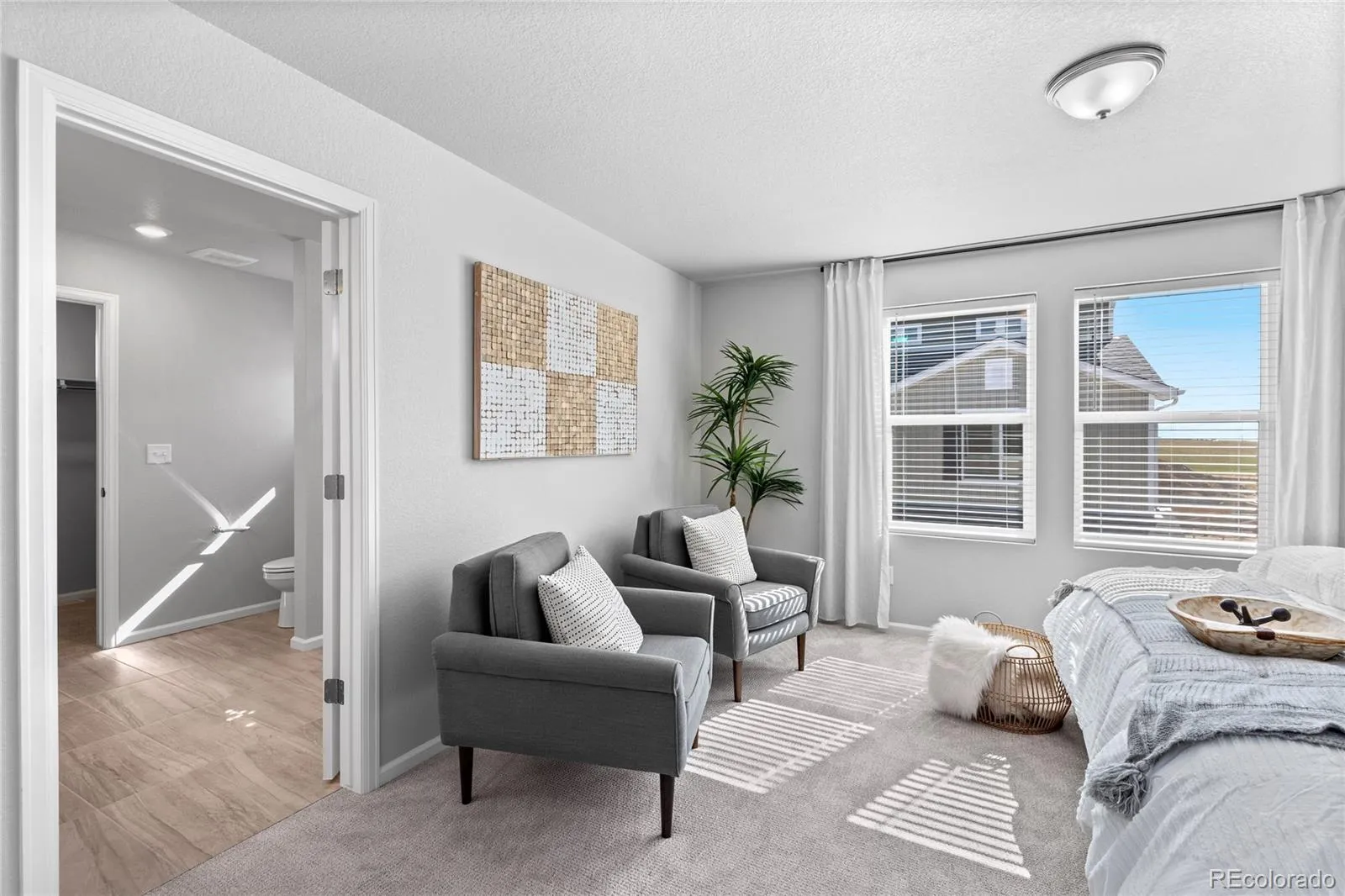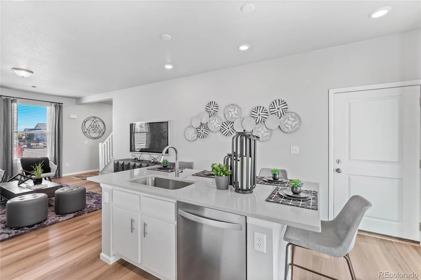 The Shire, Modern Living in Thompson River Ranch: The Shire floorplan blends style with innovation in a home crafted for flexibility, affordability, and efficiency. This single-family, 2-story layout spans 1,460 sq. ft. and offers 3 beds, 2.5 baths, and an oversized 2-car insulated garage with storage space. Energy efficiency is at the forefront with 2×6 exterior walls and low-E double pane windows for superior insulation, an advanced Rheia HVAC, LED lighting, and a 96% high-efficiency furnace. All adding up to lower utility bills, backed by our Energy Smart Guarantee. This home is set on a private cul-de-sac with plenty of curb appeal featuring a multi-dimensional exterior, charming front porch, back patio, and 5′ privacy fencing. The interior is bright with oversized windows and 9′ ceilings on the main floor. Enjoy designer LVP flooring, Shaw carpeting, Whirlpool appliances, Delta faucets, and Sherwin-Williams paint throughout. The kitchen is complete with a dining island, designer countertops with backsplash, and a stainless-steel sink. The spacious upstairs primary suite boasts a large walk-in closet, double vanity sink, and spa shower with floor-to-ceiling tile and an exterior window. Enjoy resort-style amenities at Thompson River Ranch-two pools, fitness center, trails, parks, and a disc golf course-all near top-rated schools. Actual home may differ from artist’s renderings or photography shown.